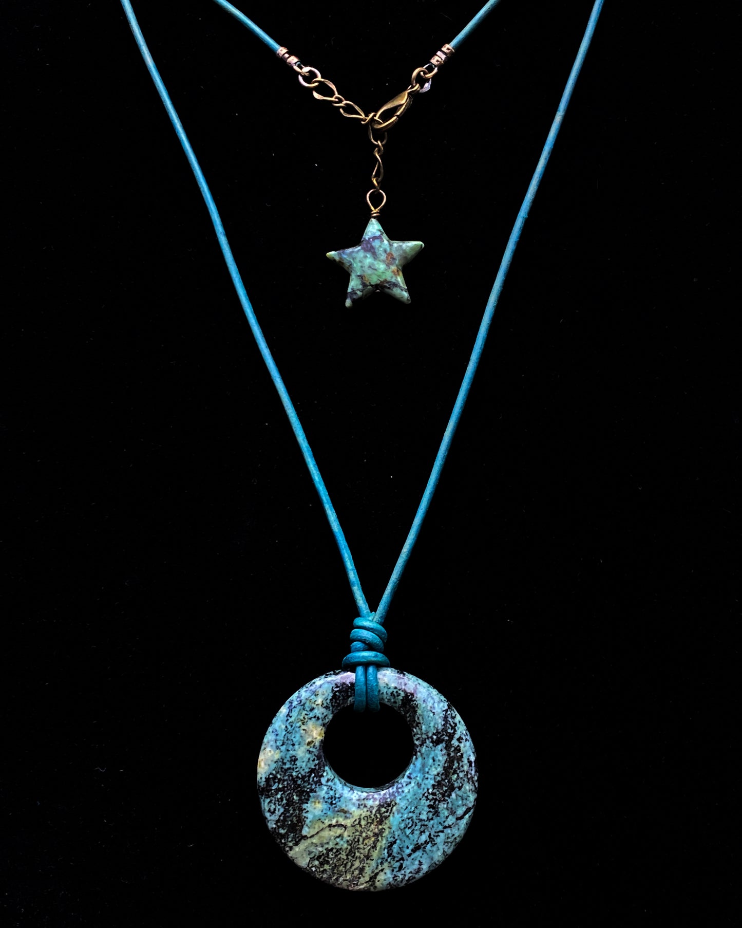 wear long or wrap around to create a layered look. Two necklaces in one!