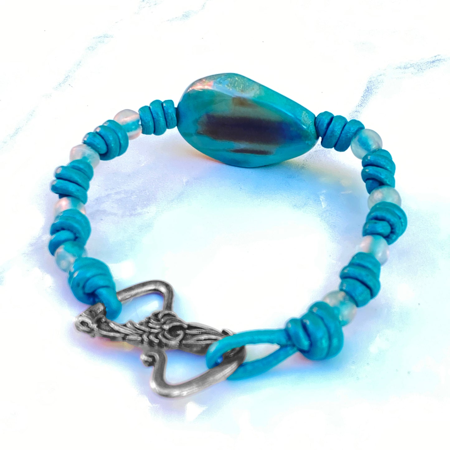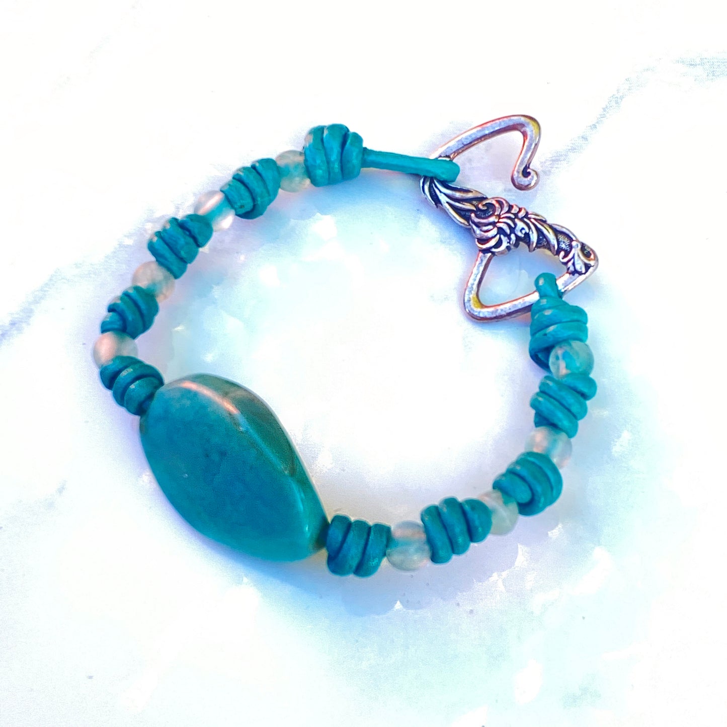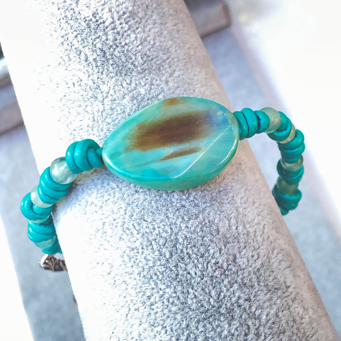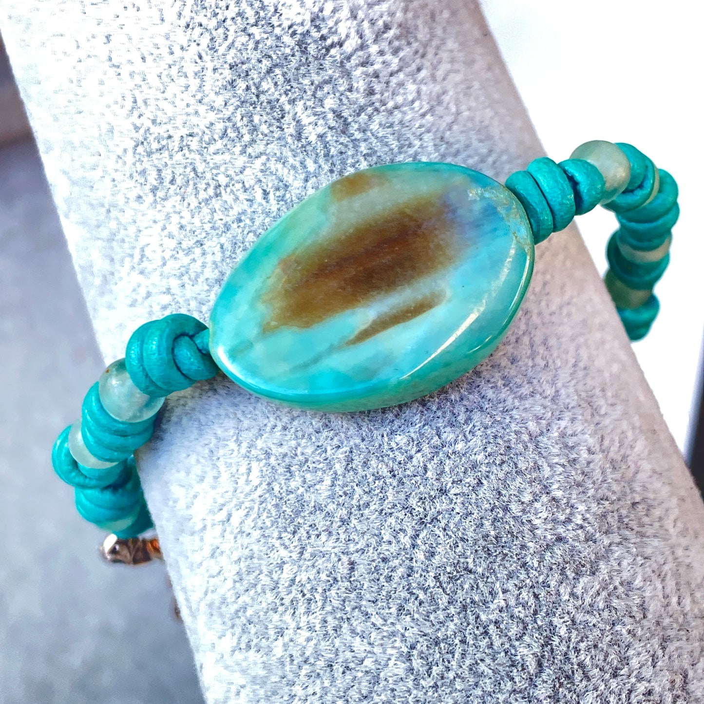Our gemstone and leather pieces are all original designs by Lisa Beth and LDE Affinity Jewelry. They are hand crafted with passion and love in our Southern California studio. The beads are strung on Leather that is precision cut from the center of the hide and is the finest quality made in the USA.