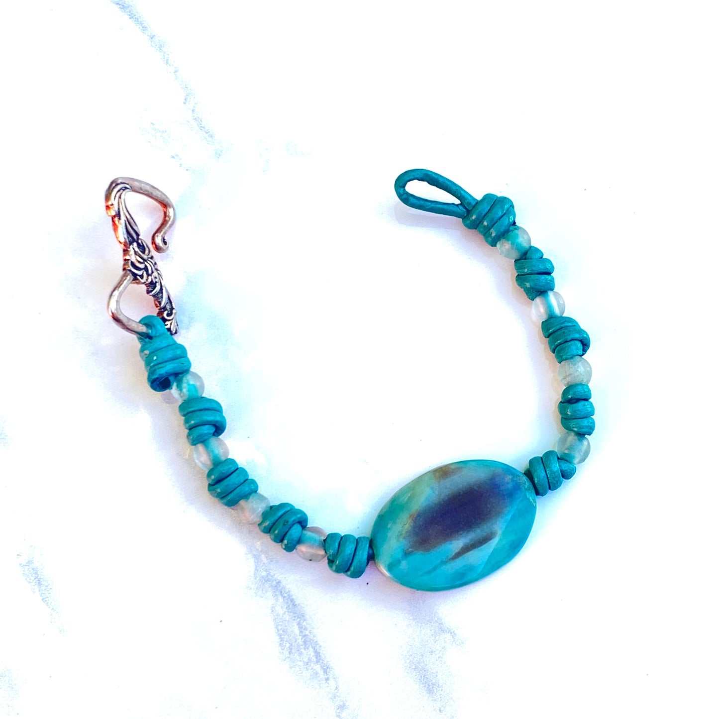 Agate and Fluorite gemstones on hand knotted Leather Bracelet