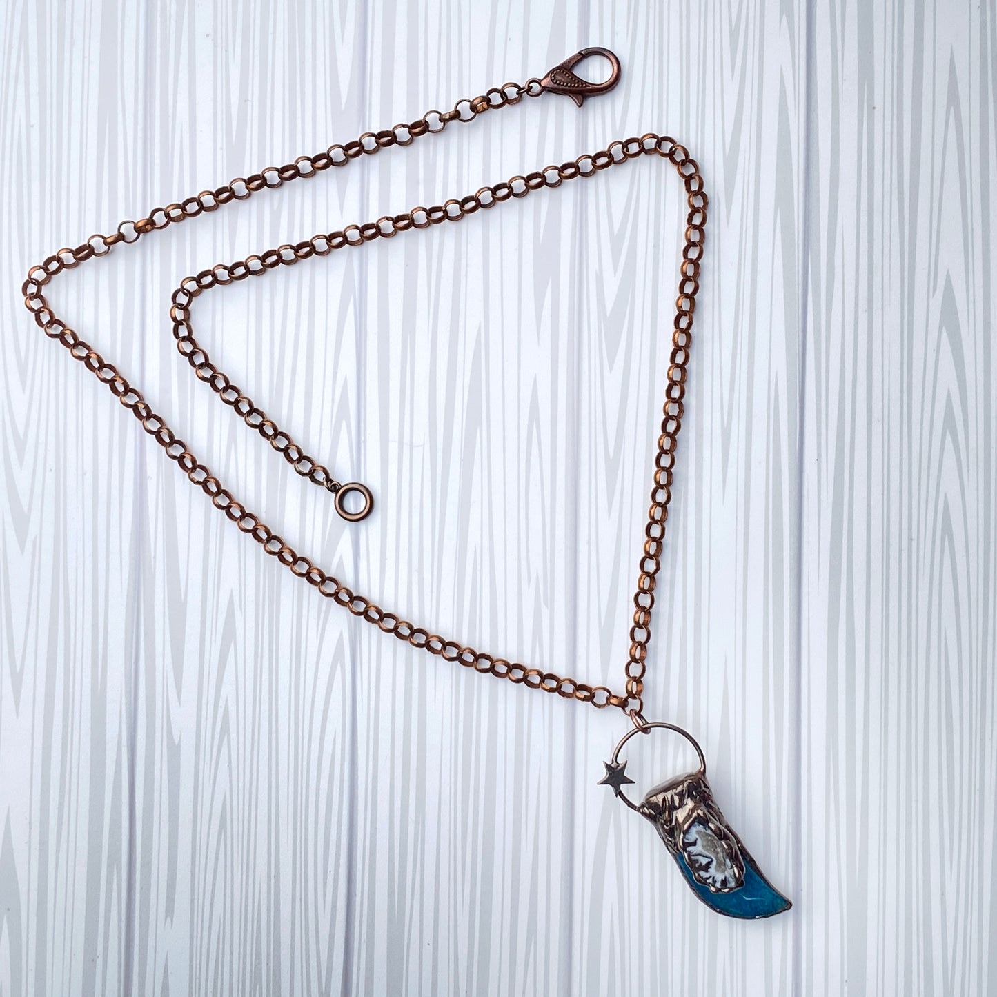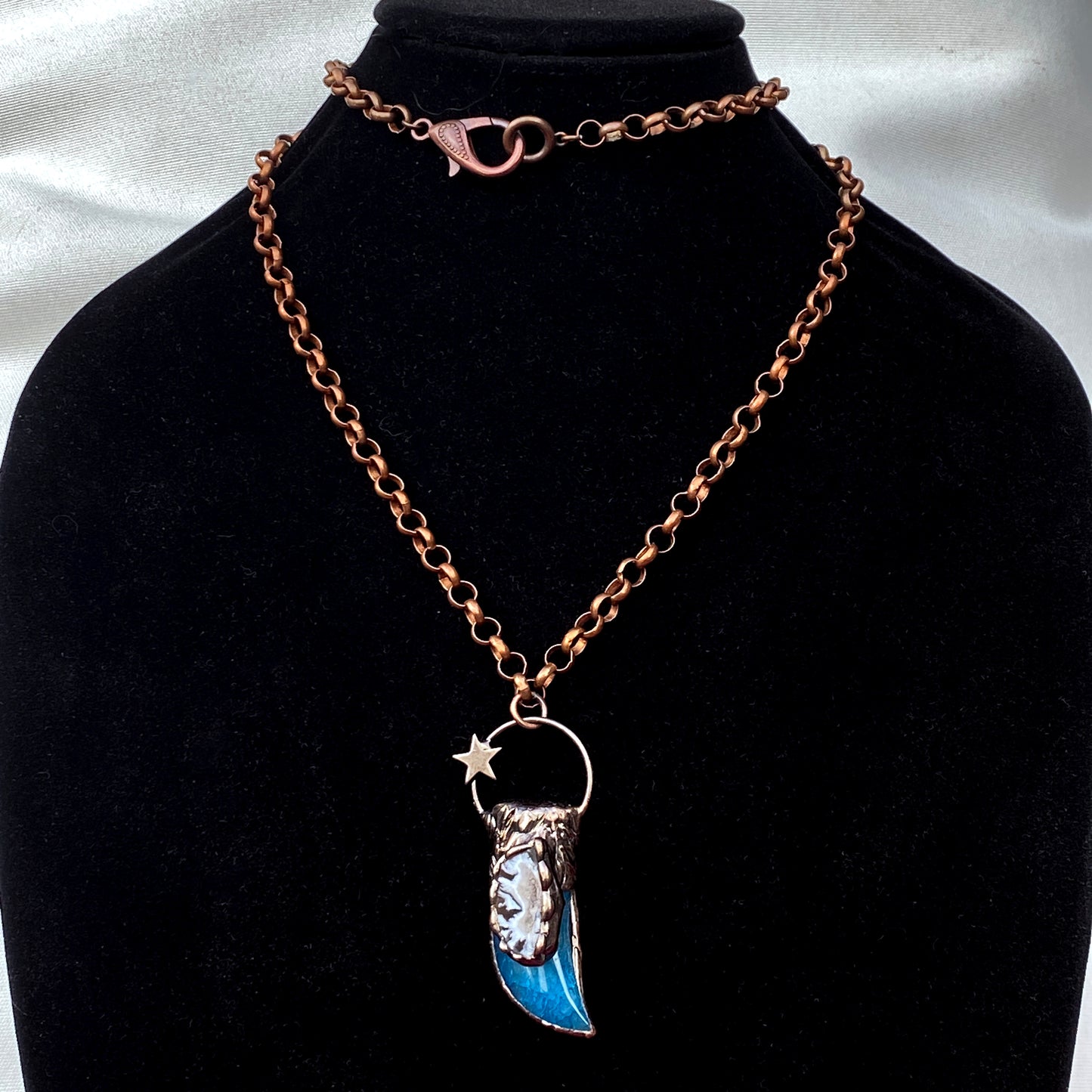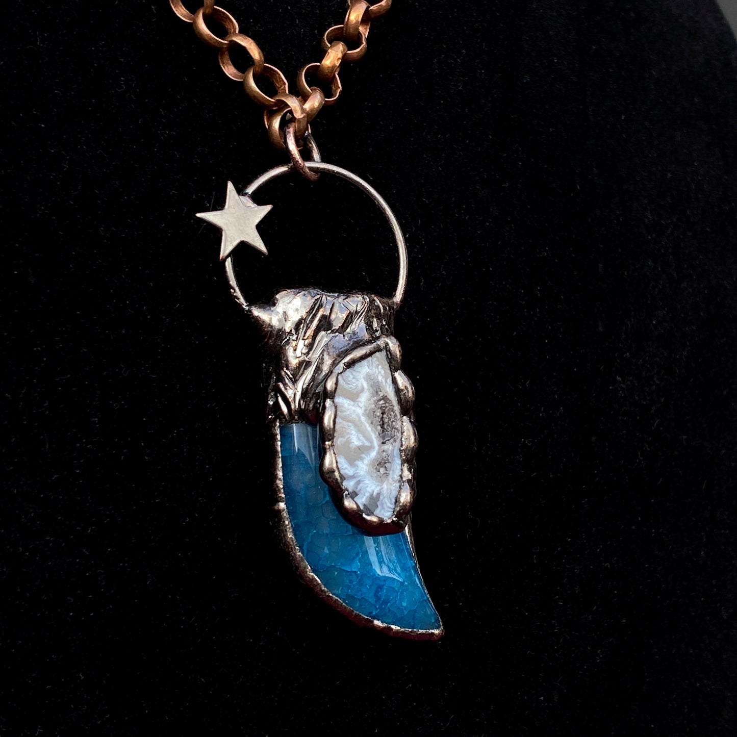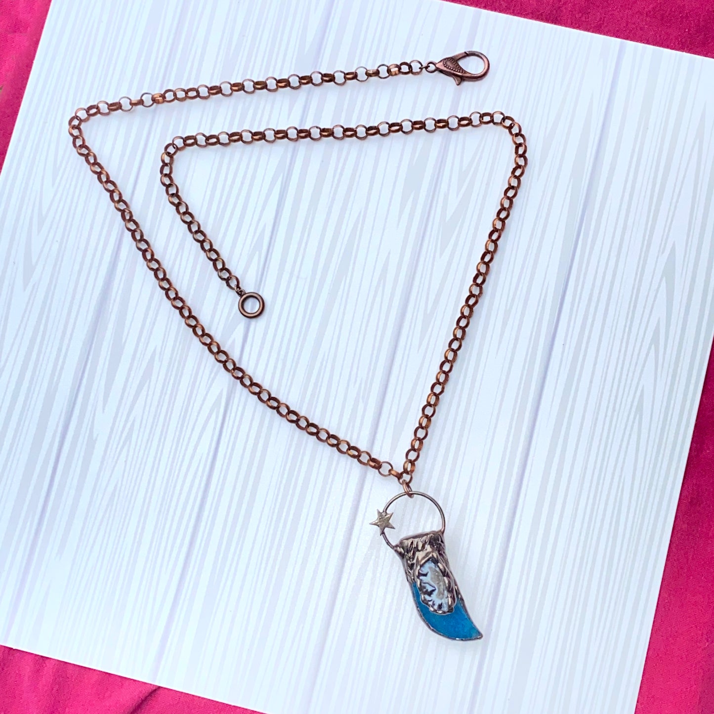 Agate Gemstone Horn and Star Wrap Around Copper plated Necklace