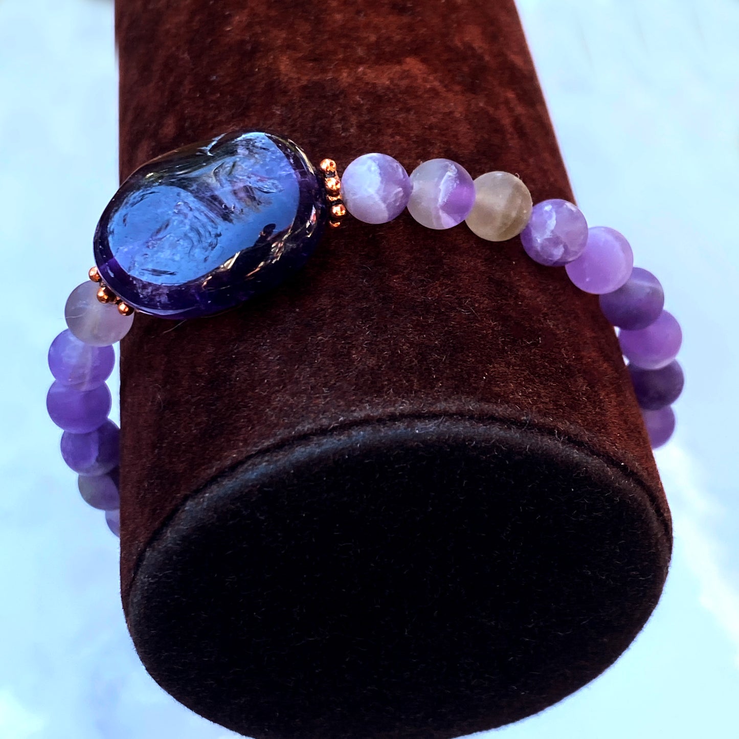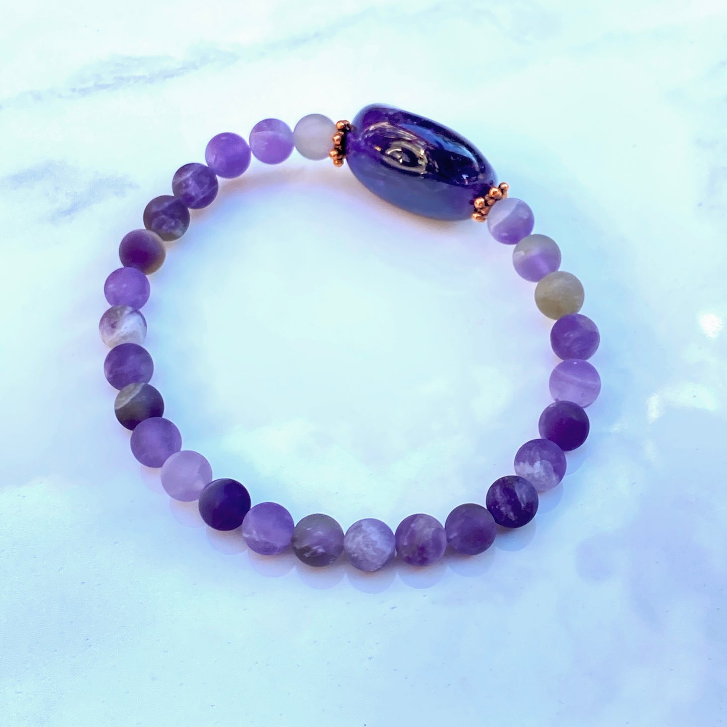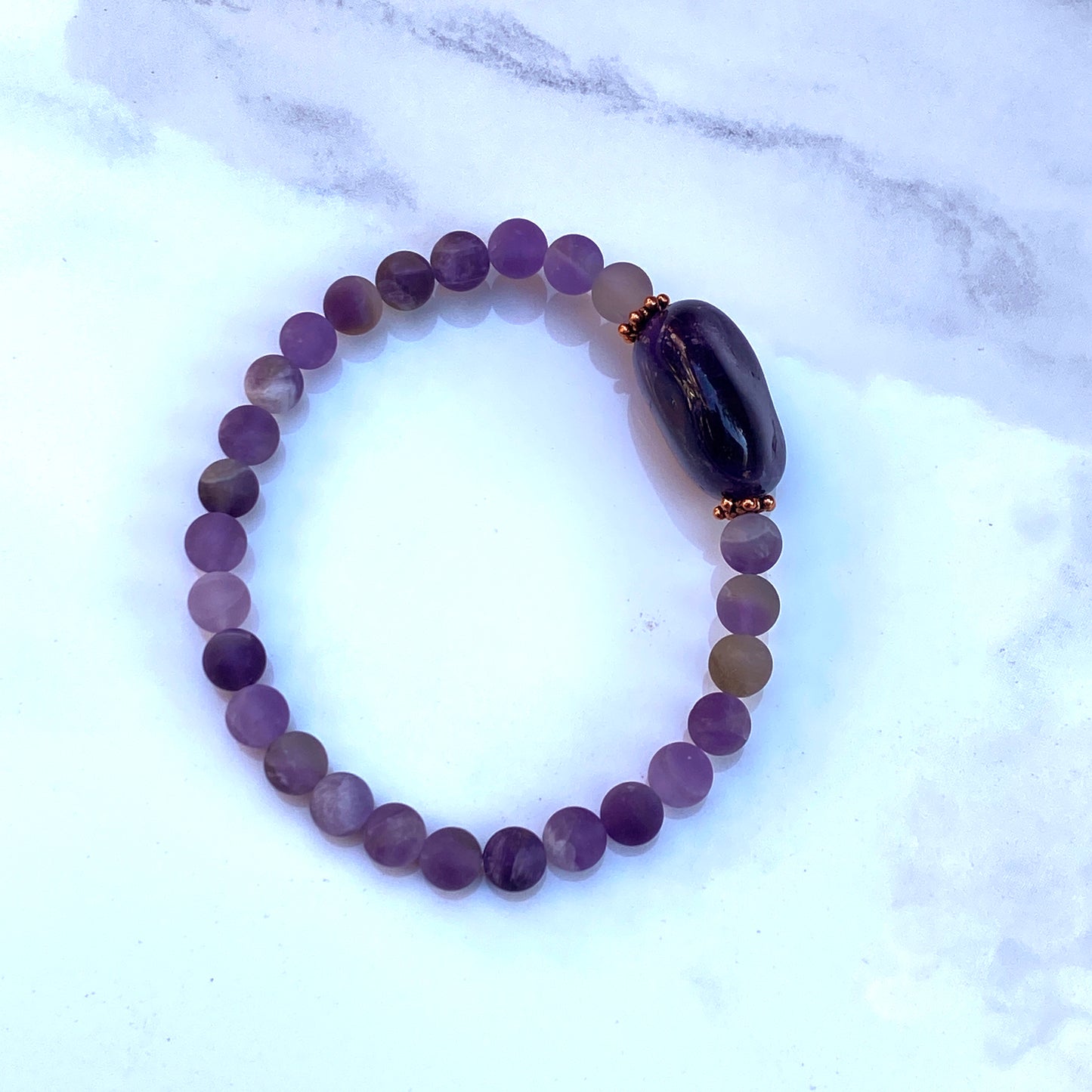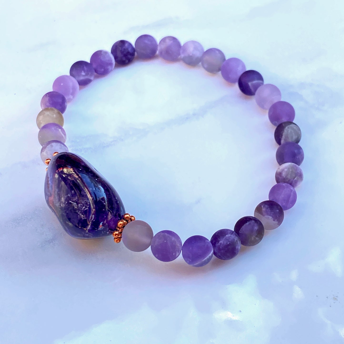 Amethyst gemstone and copper crystal beaded stretch bracelet