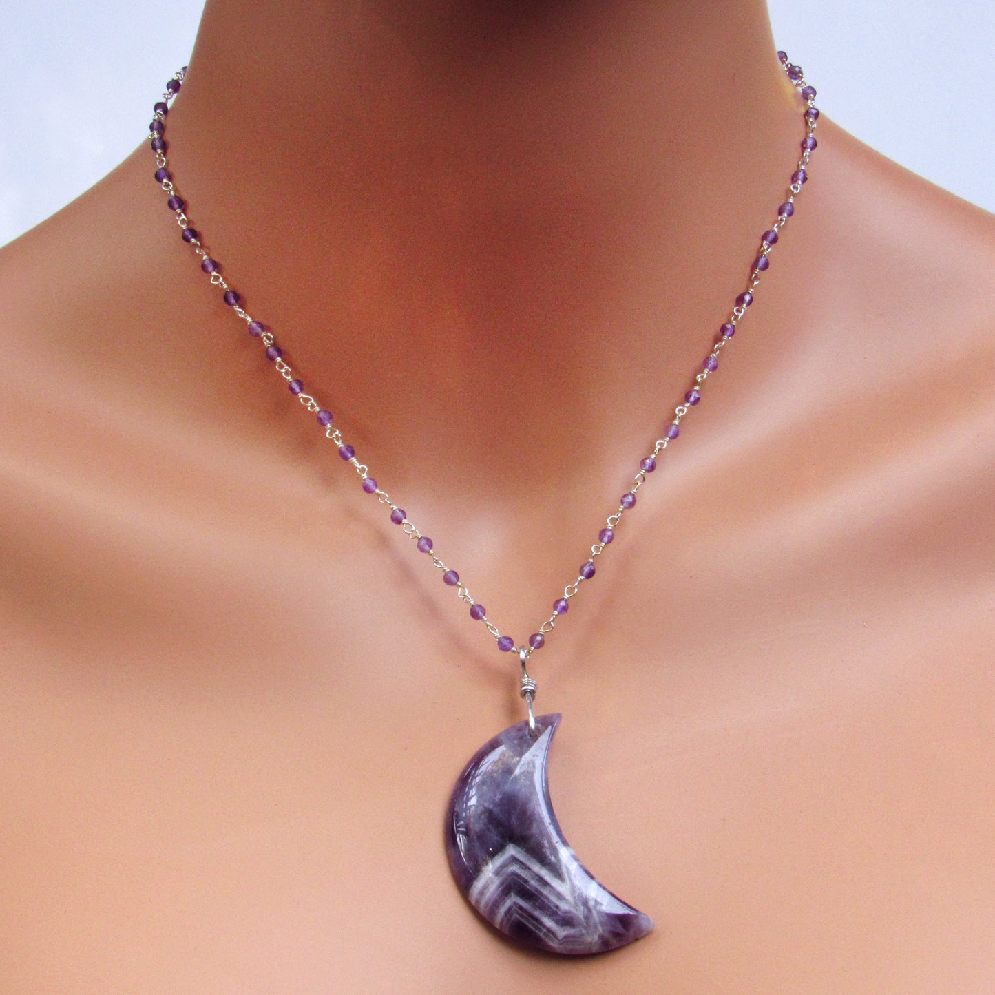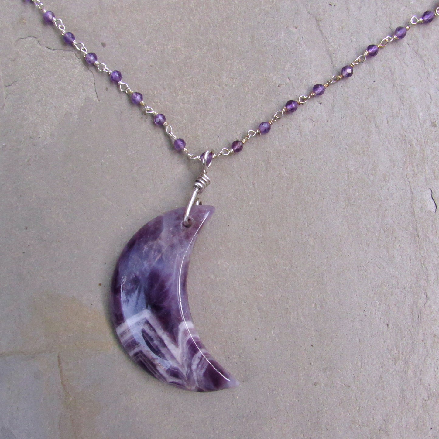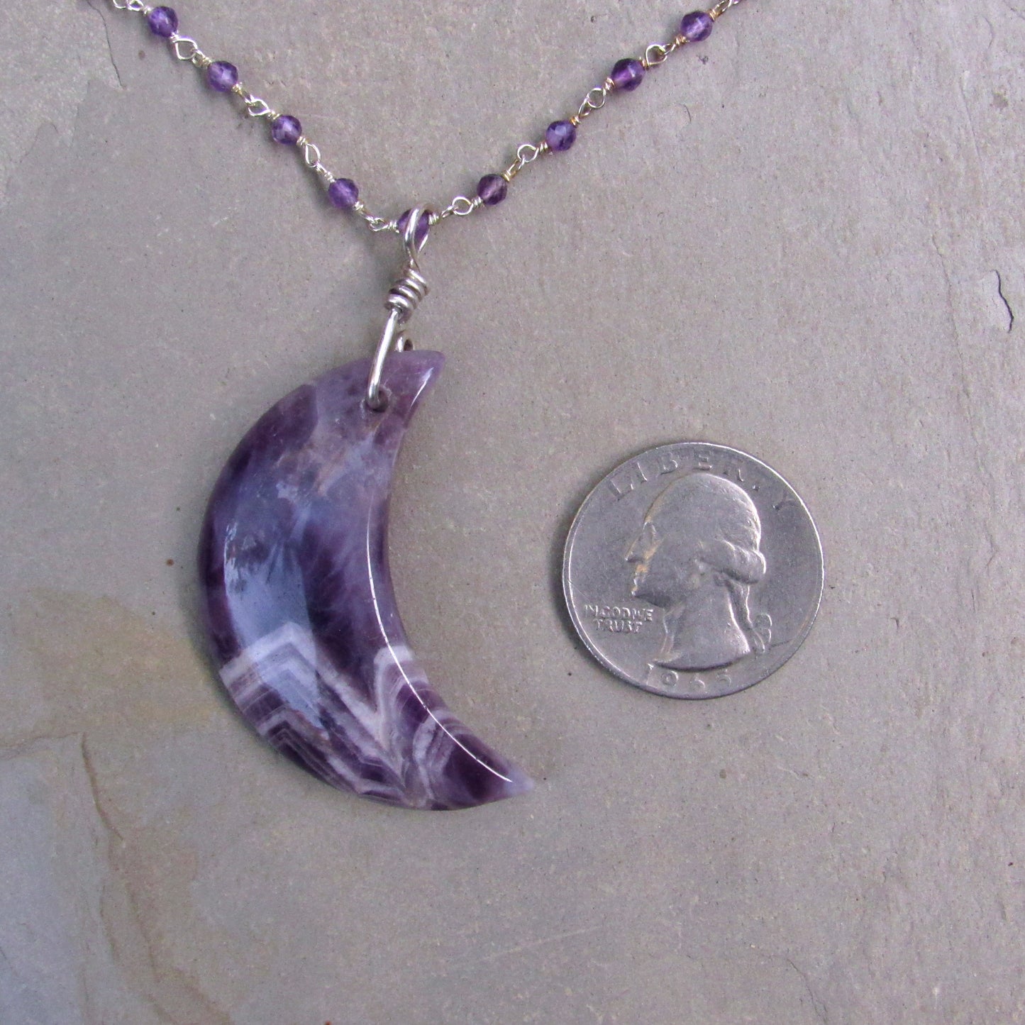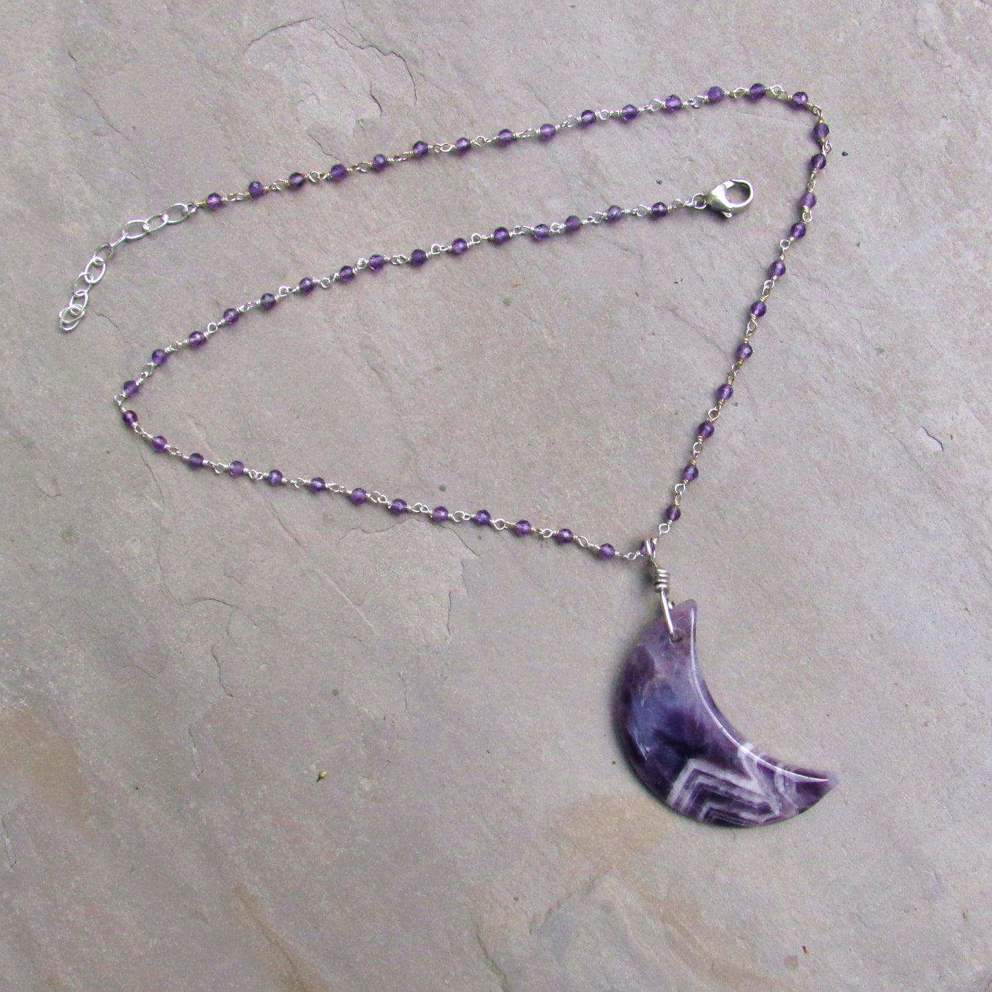 Amethyst Moon on sterling silver wrapped amethyst chain necklace