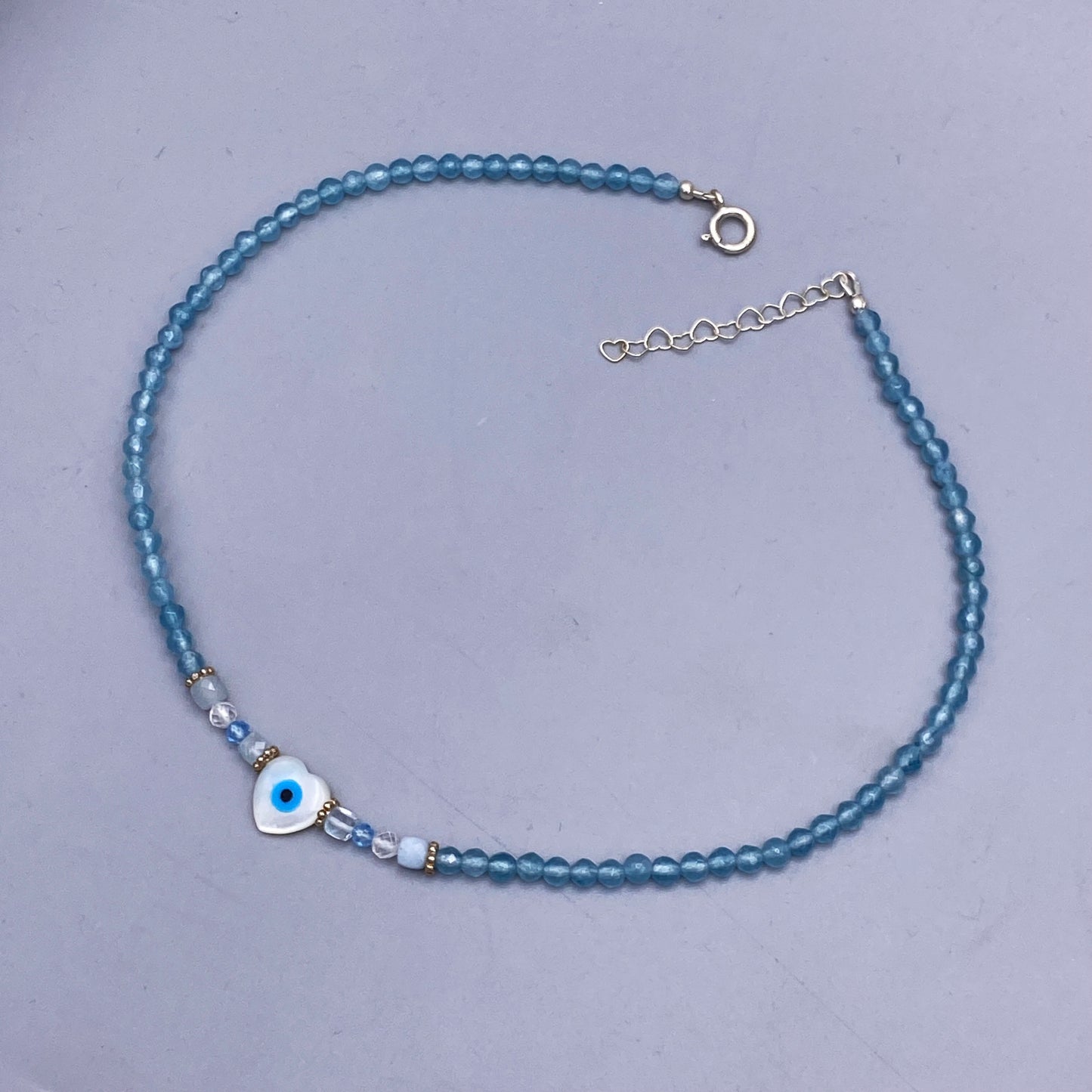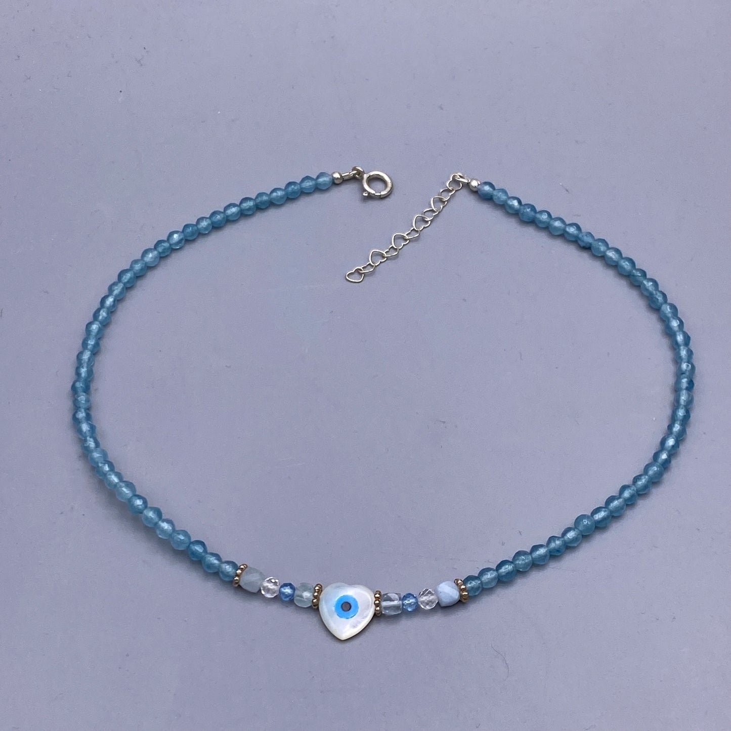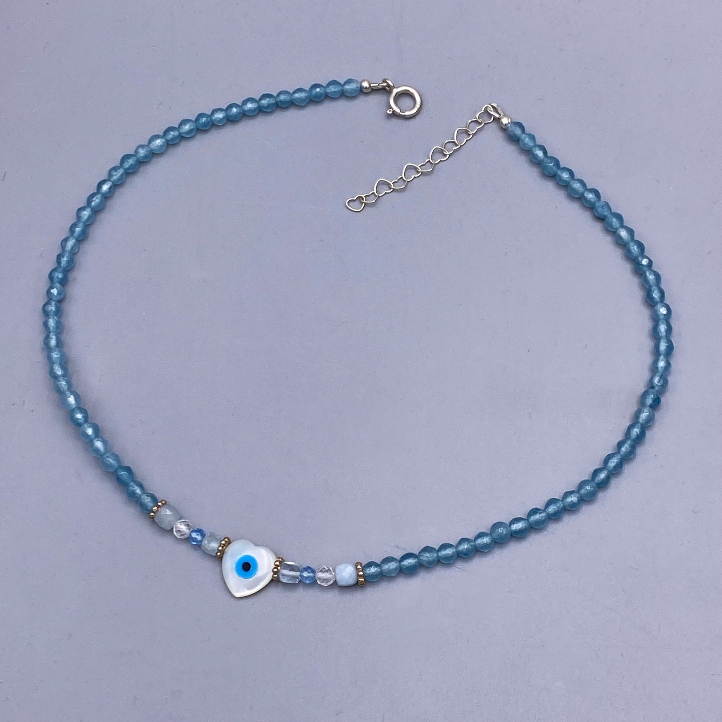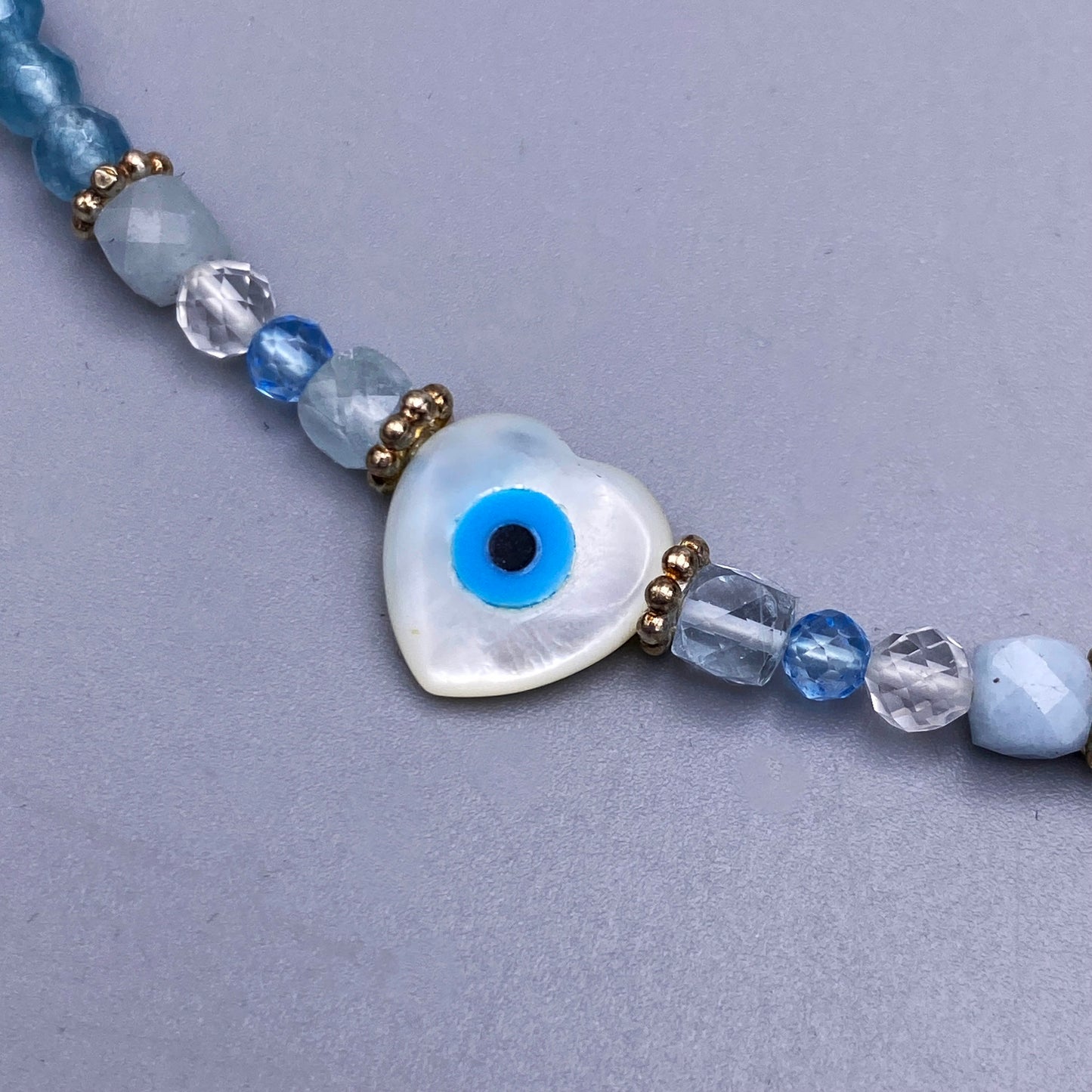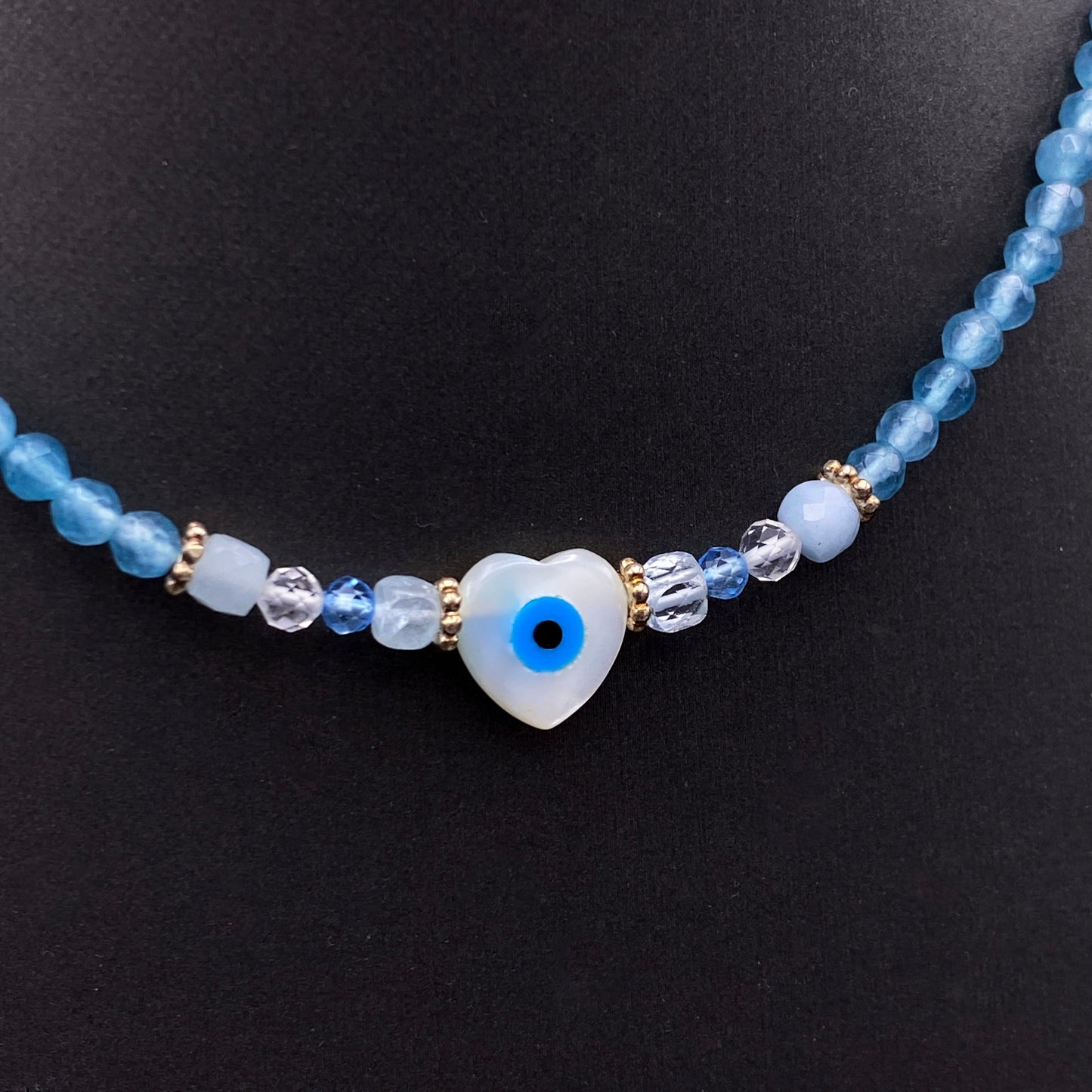 Aquamarine, Blue Topaz, and Evil Eye Necklace