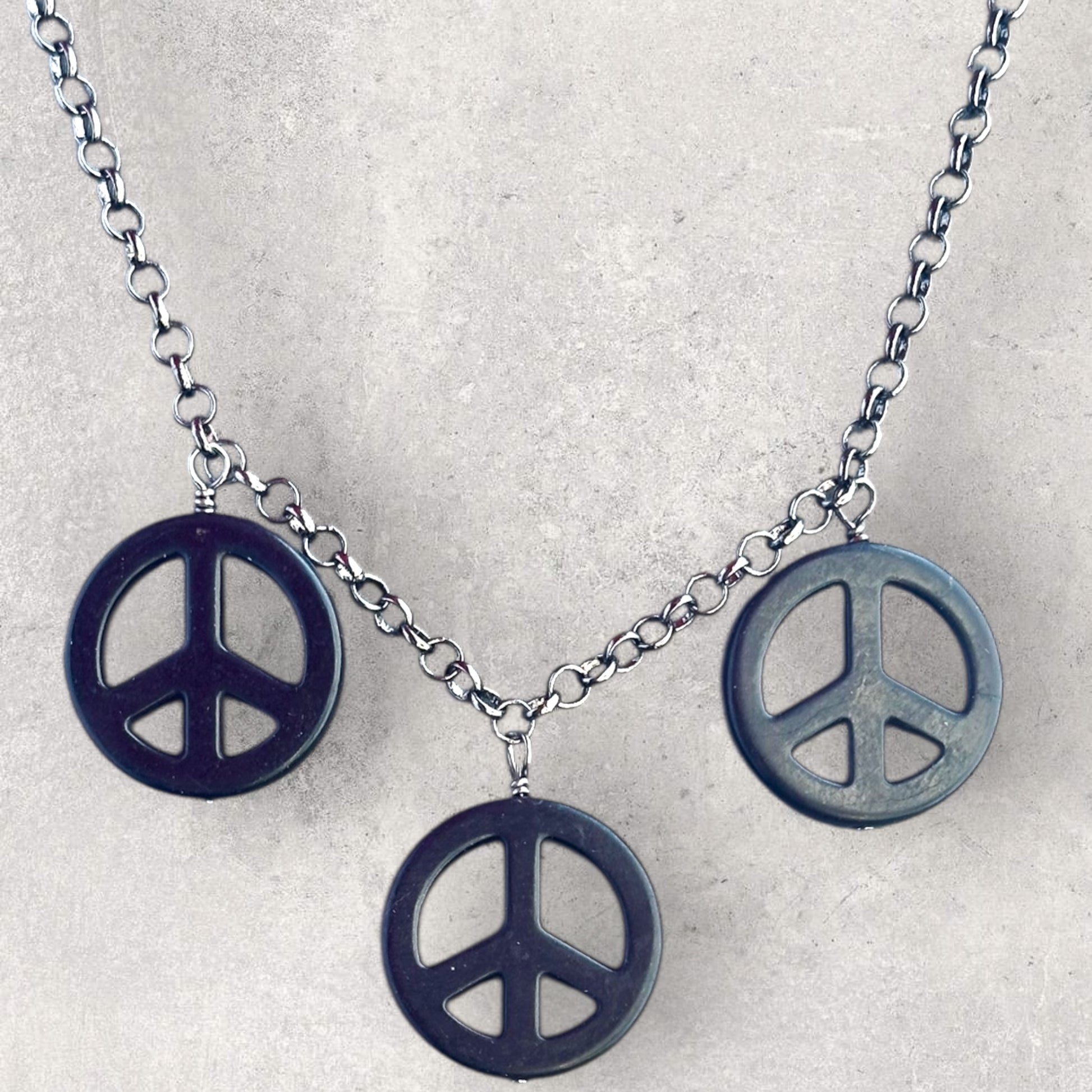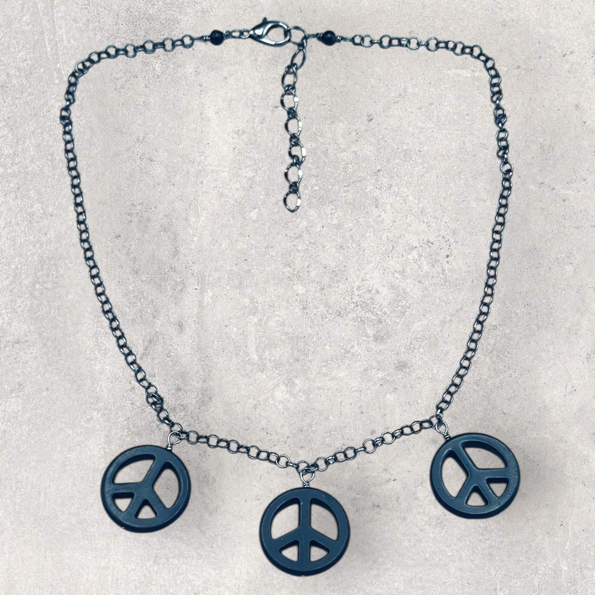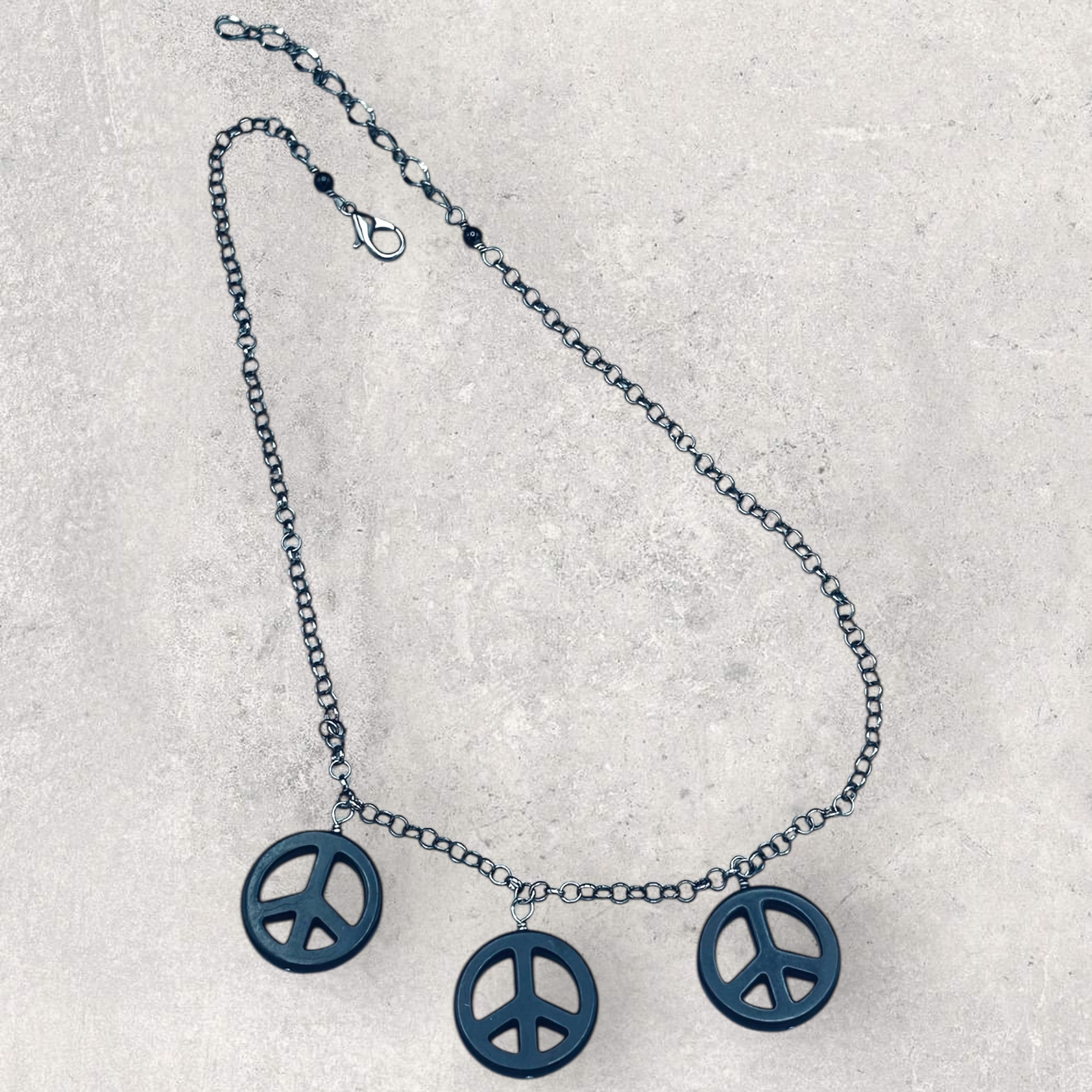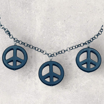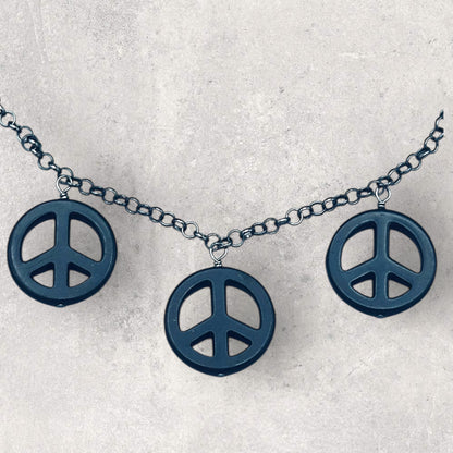 Black Howlite Peace Sign Copper Necklace
