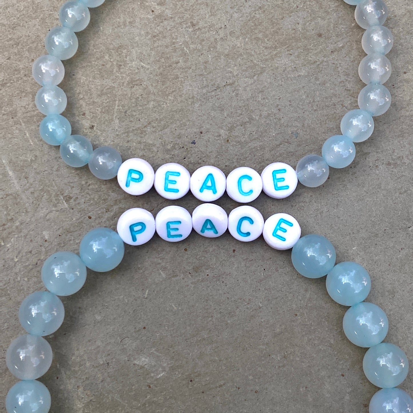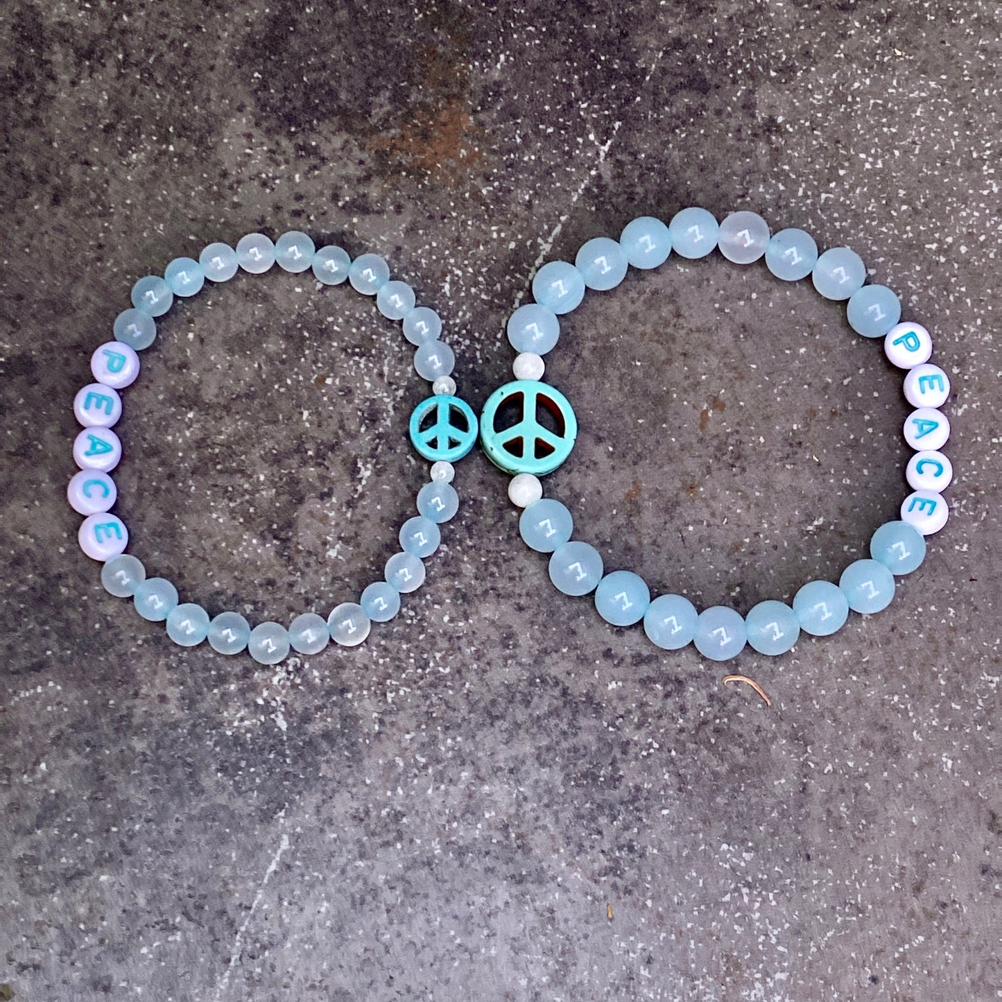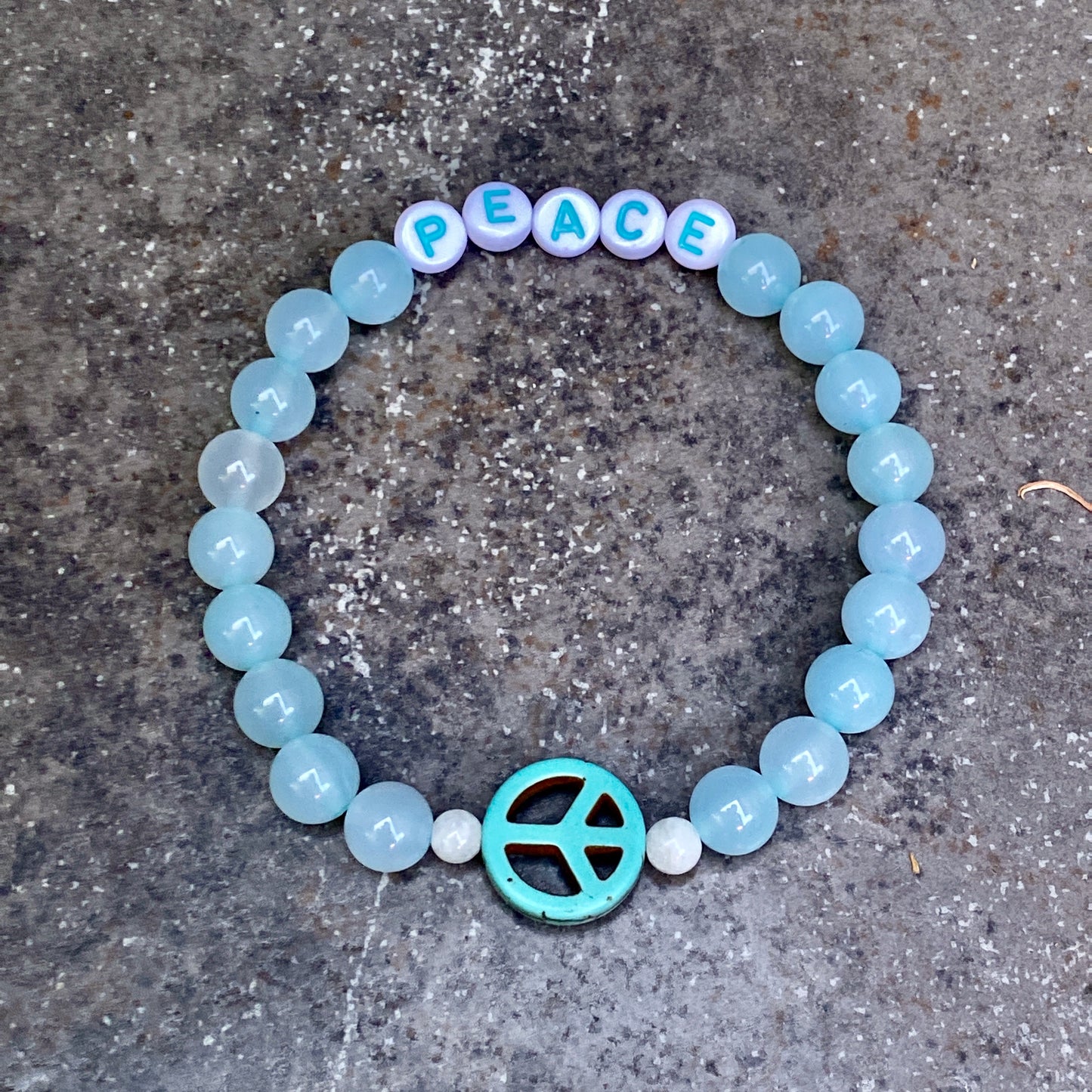 Blue Agate and Howlite Peace Sign Stretch Bracelet in Men or Women size