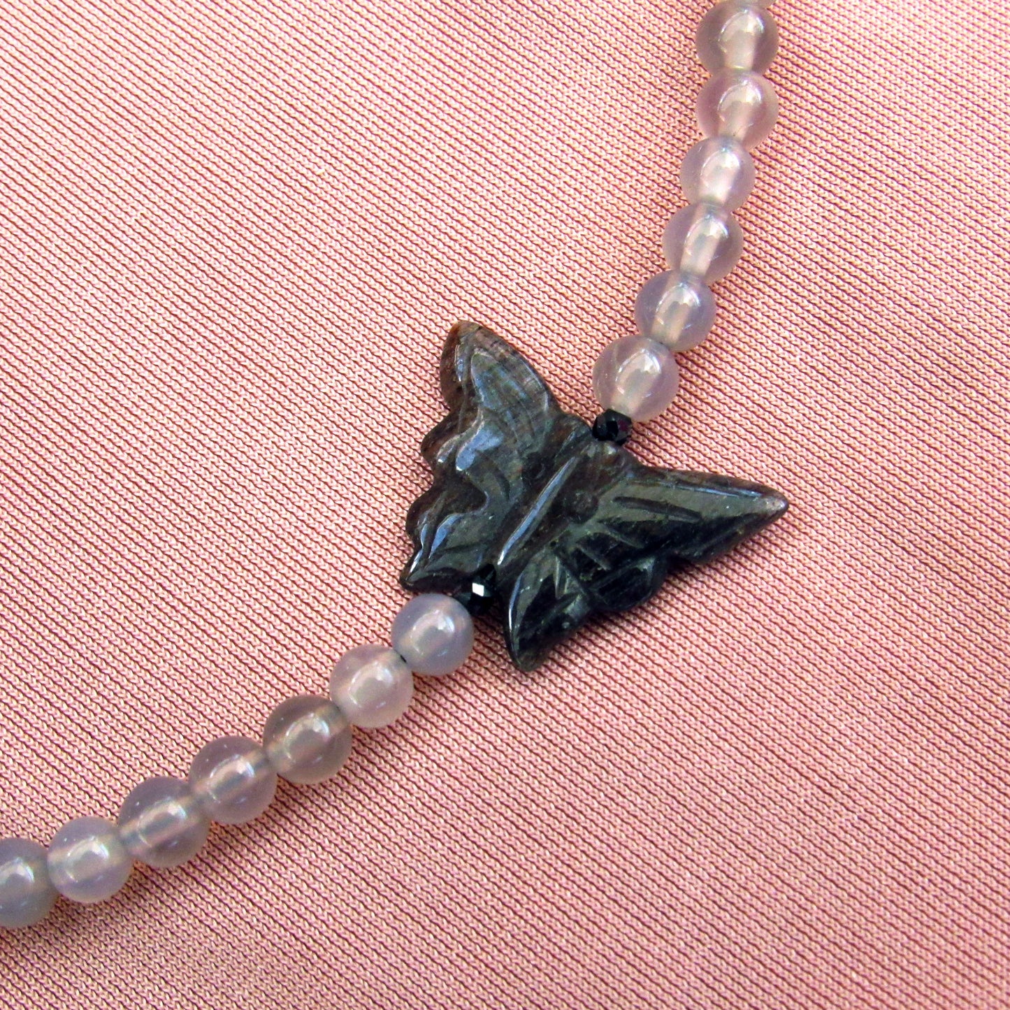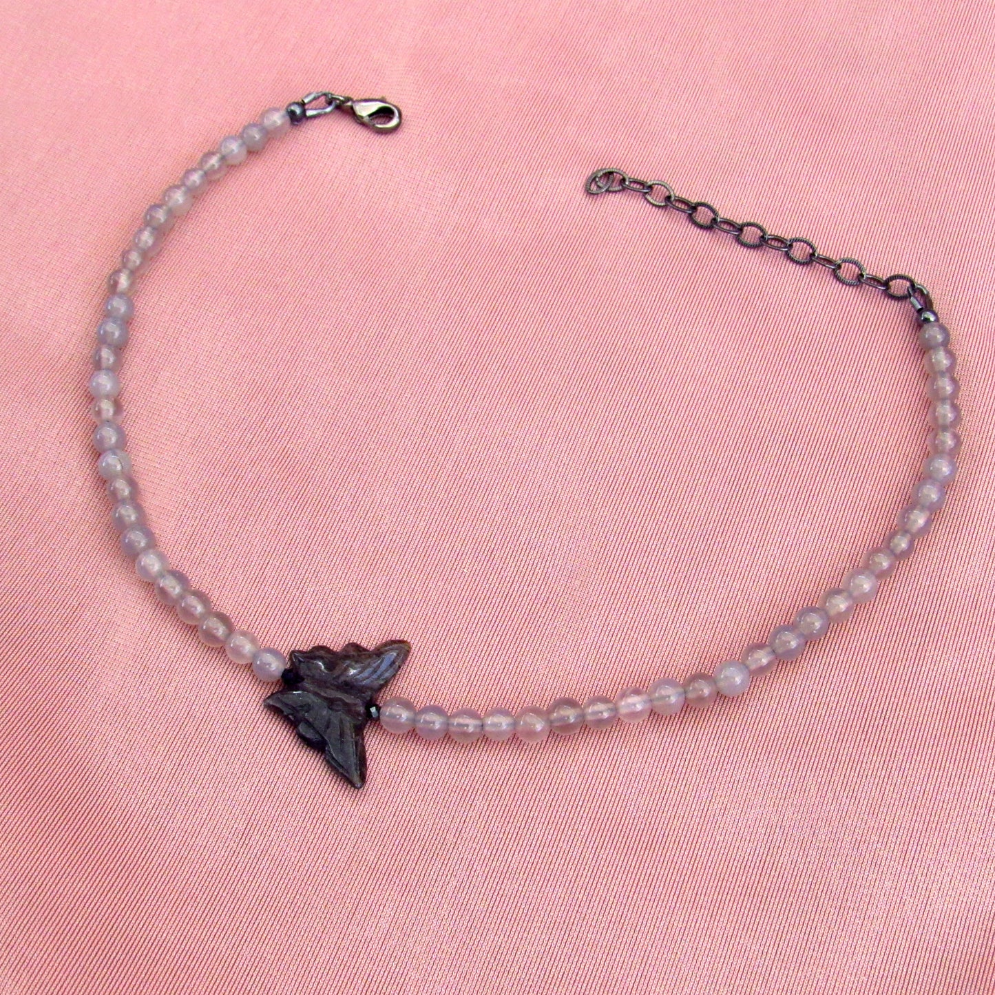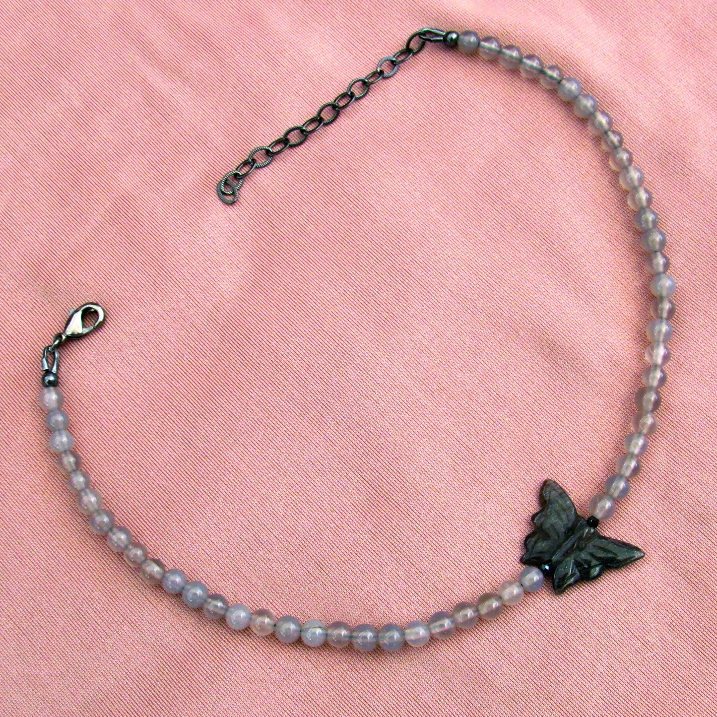 Black Aventurine Butterfly, Black Spinel, Grey Agates, and Oxidized Sterling Silver Anklet