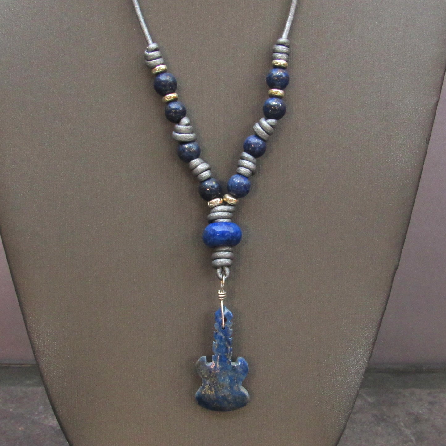 Blue Lapis Lazuli gemstone carved Guitar pendant on Hand Knotted Leather