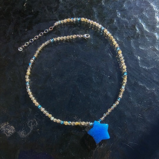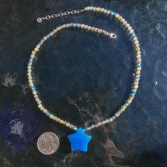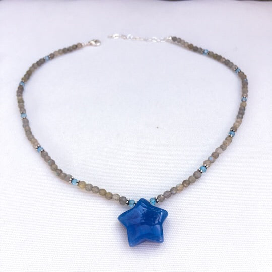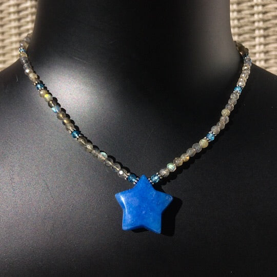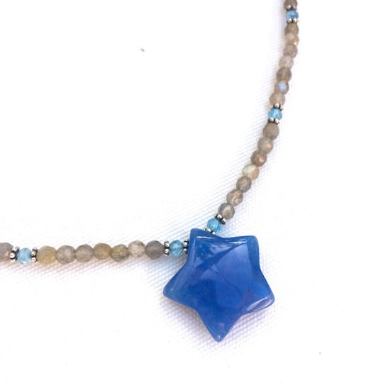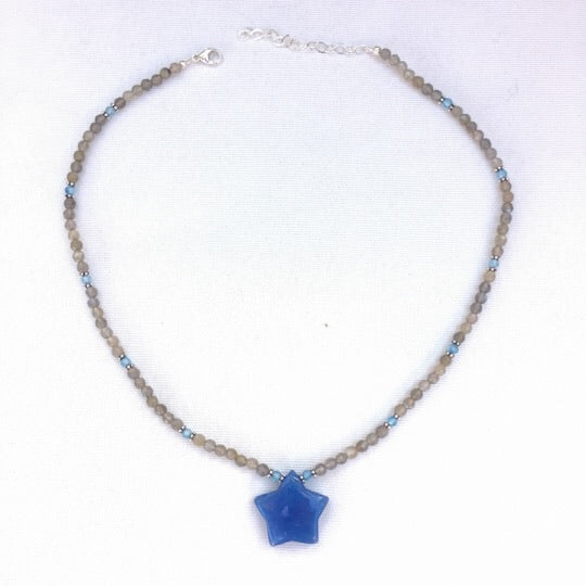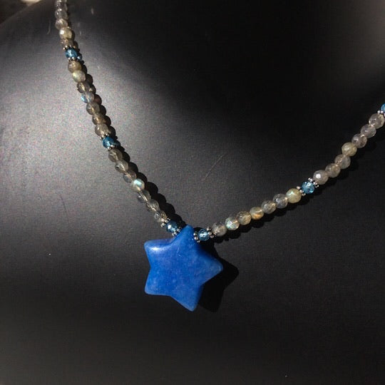 Women’s Blue jade Star, labradorite, blue topaz and sterling silver Gemstone Pendant Necklace