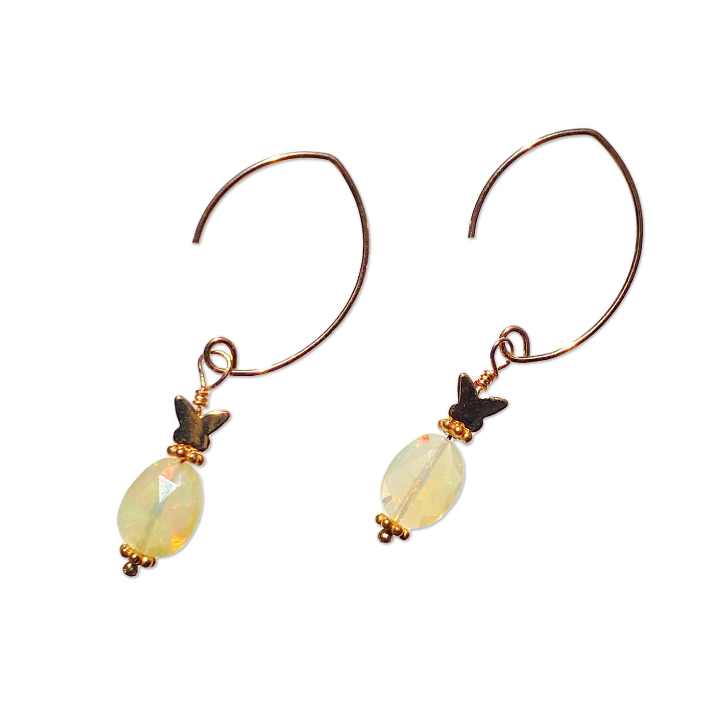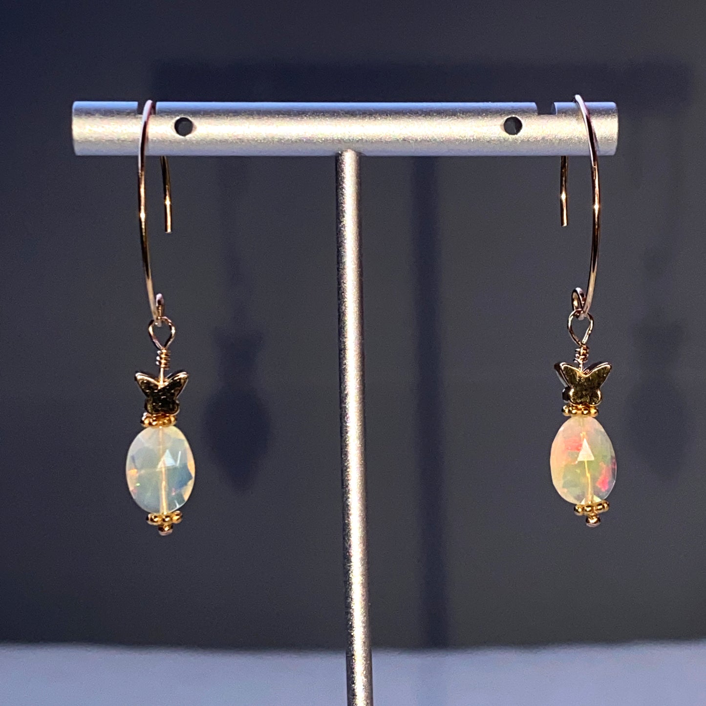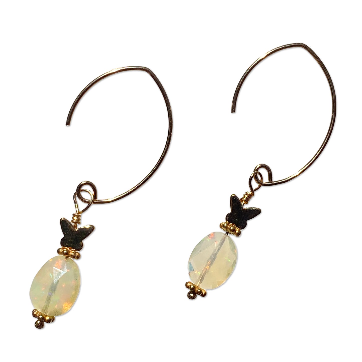 Ethiopian Opal gemstones and 14 kt Gold Fill Butterfly Dangle Earrings