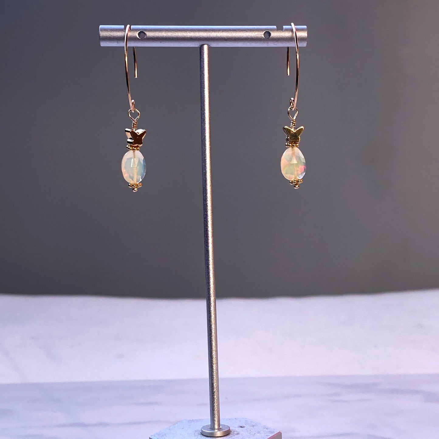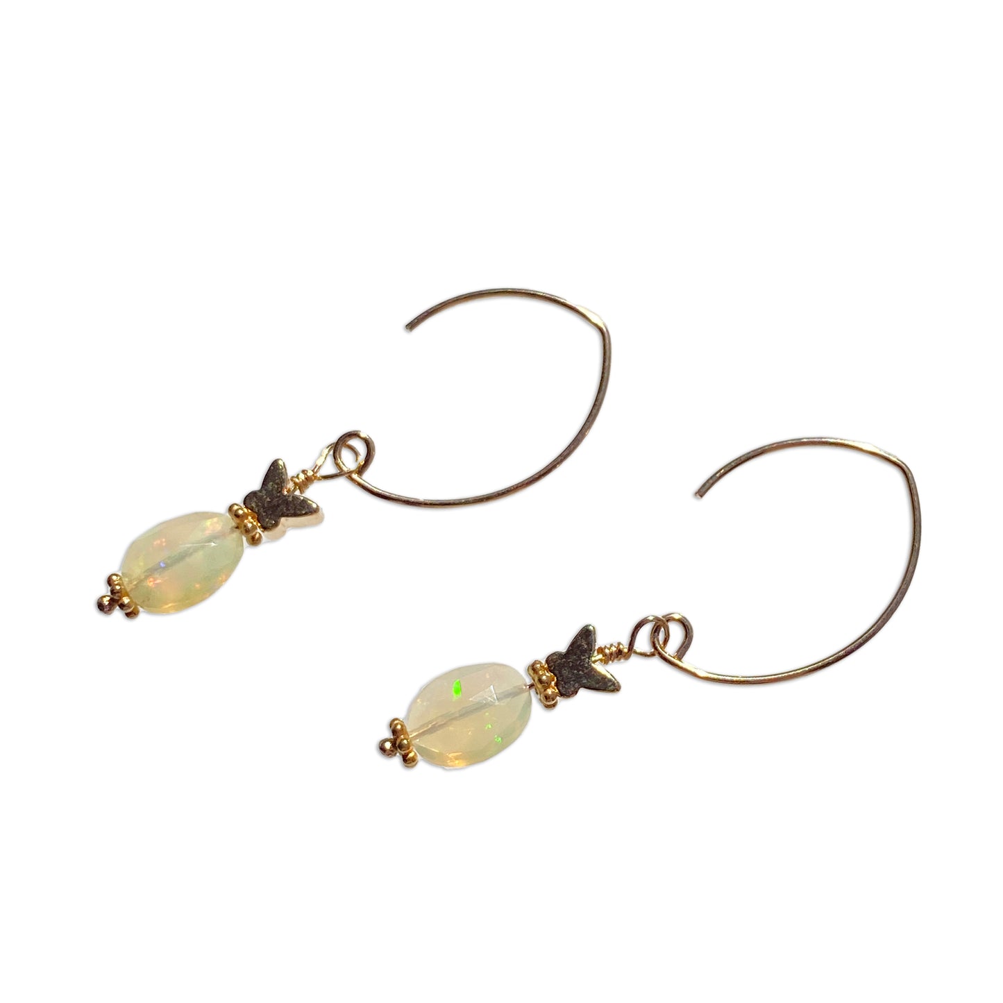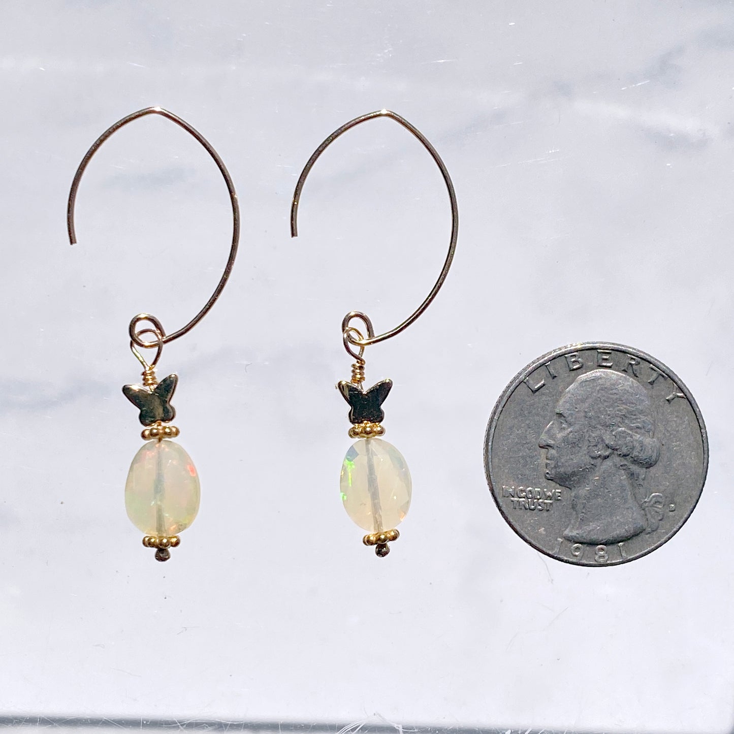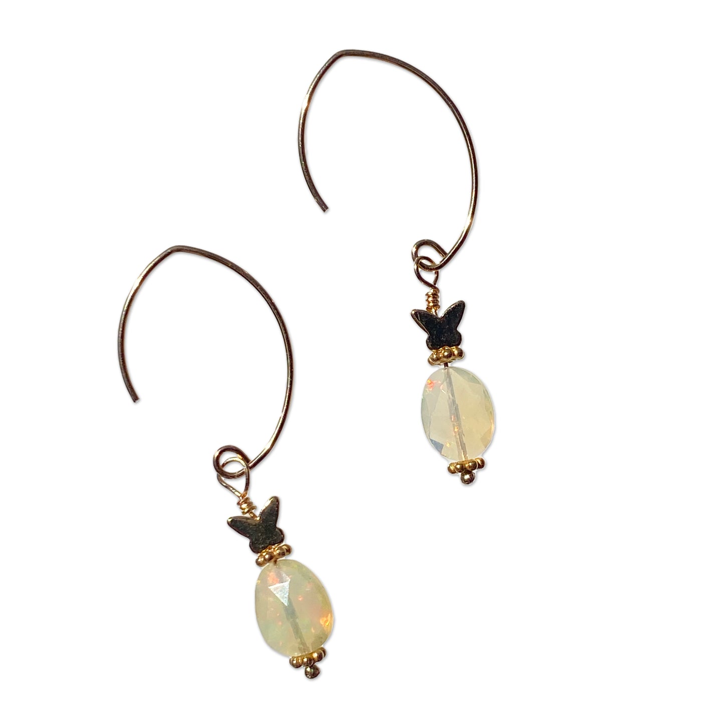 Ethiopian Opal gemstones and 14 kt Gold Fill Butterfly Dangle Earrings