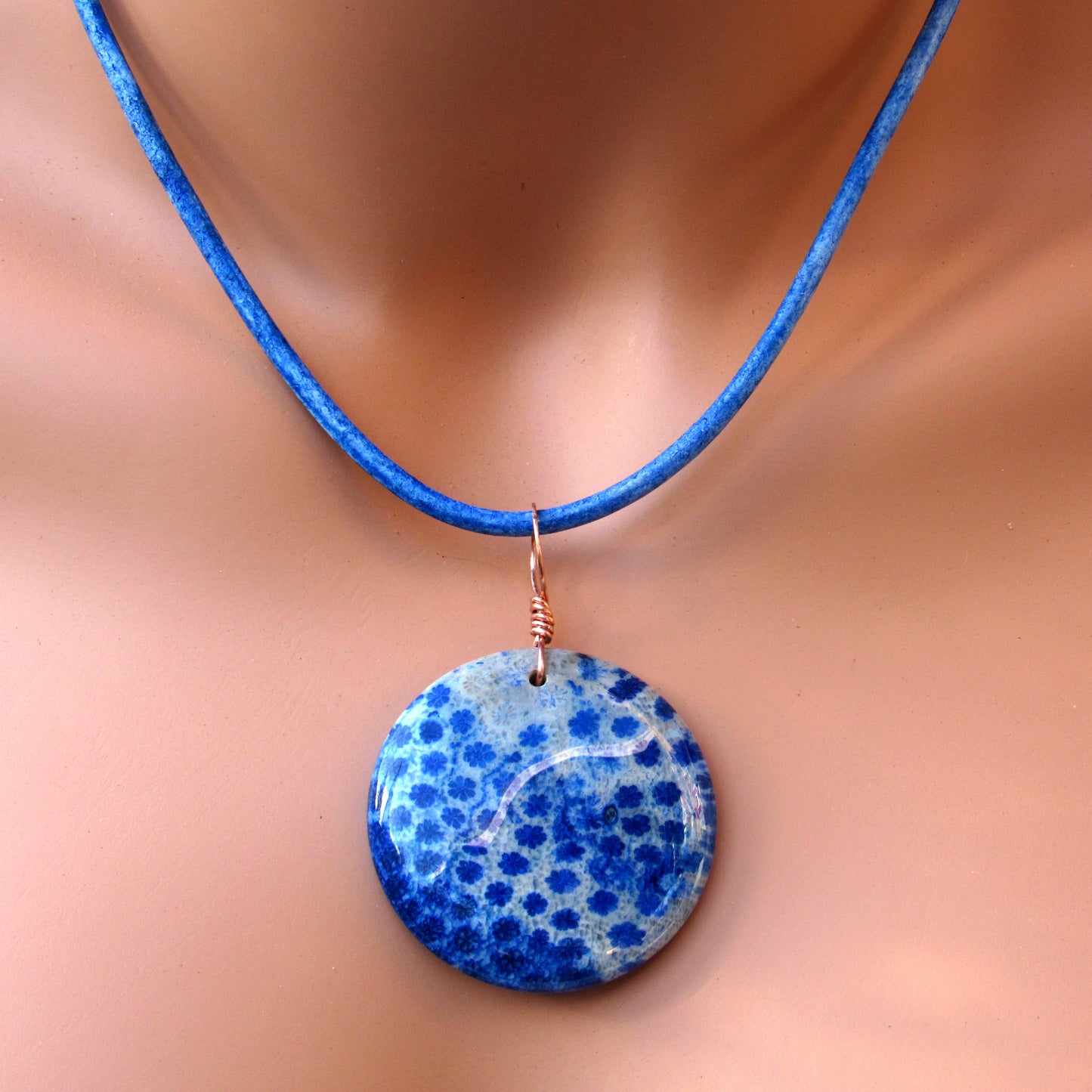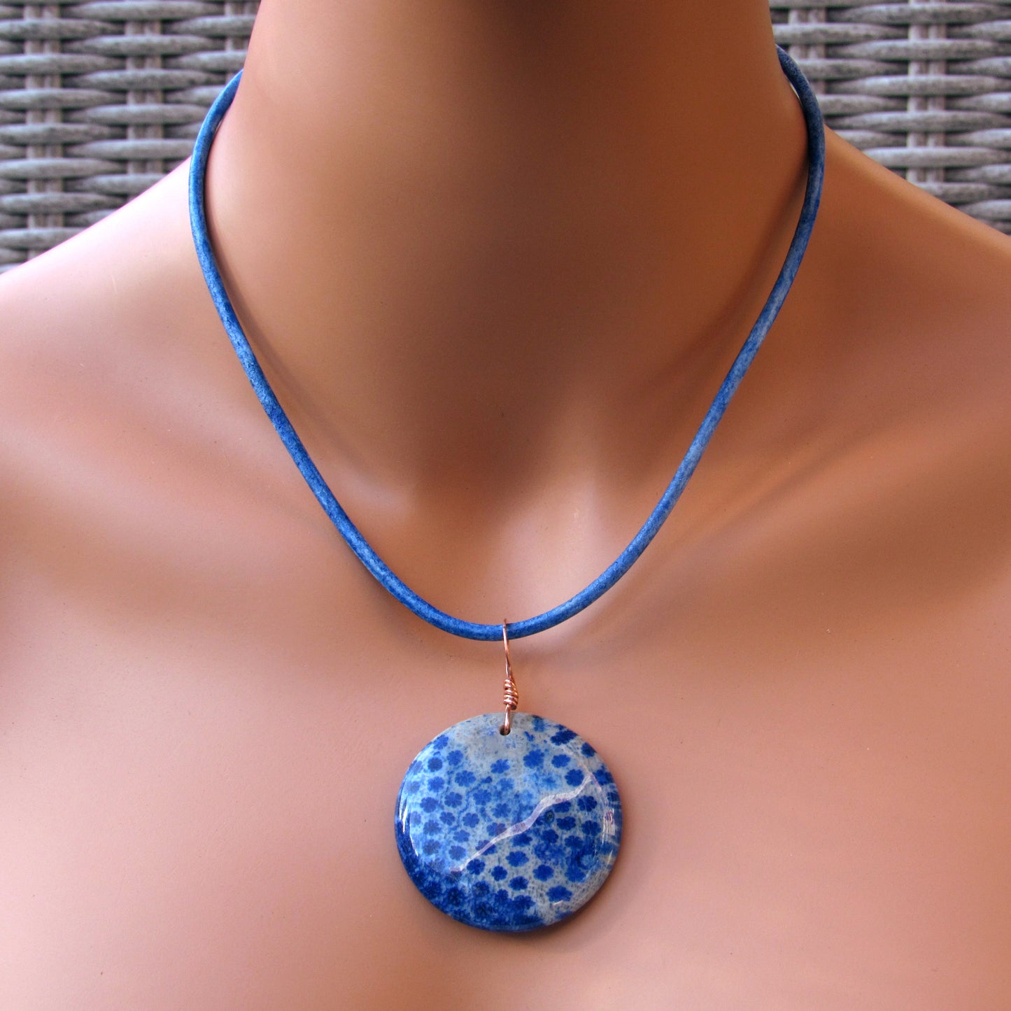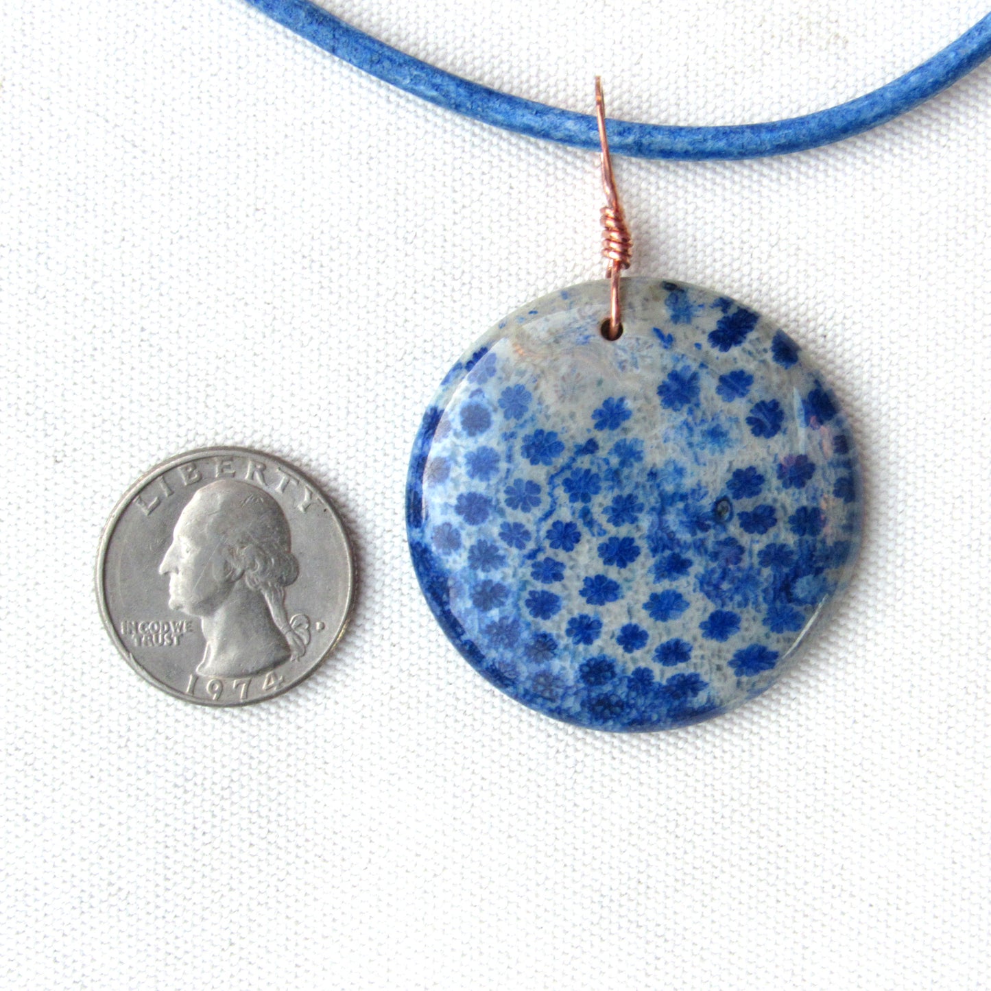 Beautiful Rose Chrysanthemun Coral Fossil Pendant, Copper, and genuine Leather necklace