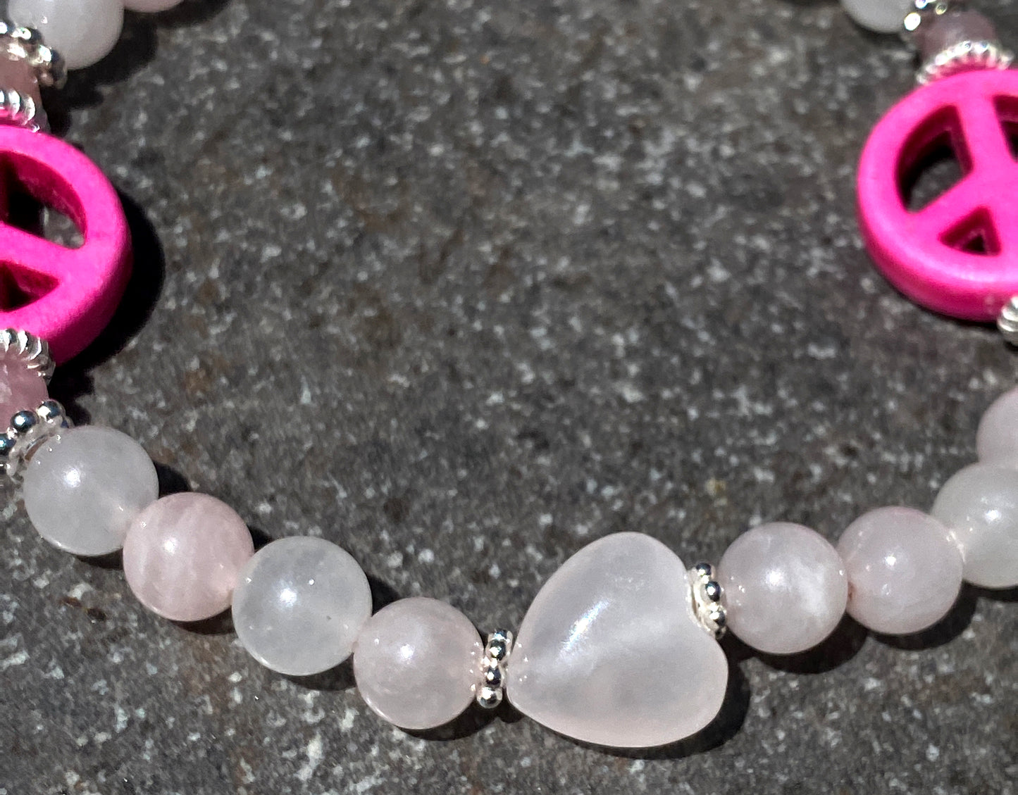 Gemstone Peace Sign Bracelets 7" nylon free Stretch Bracelets