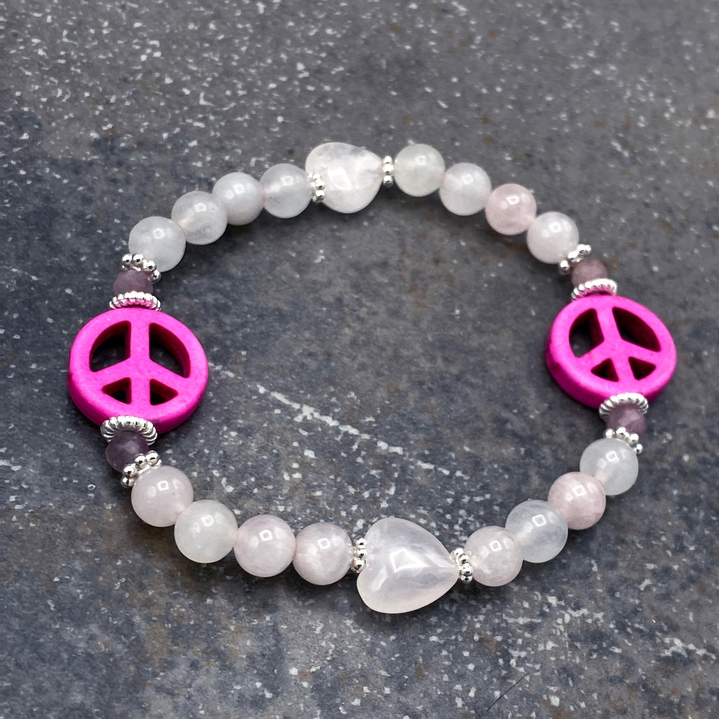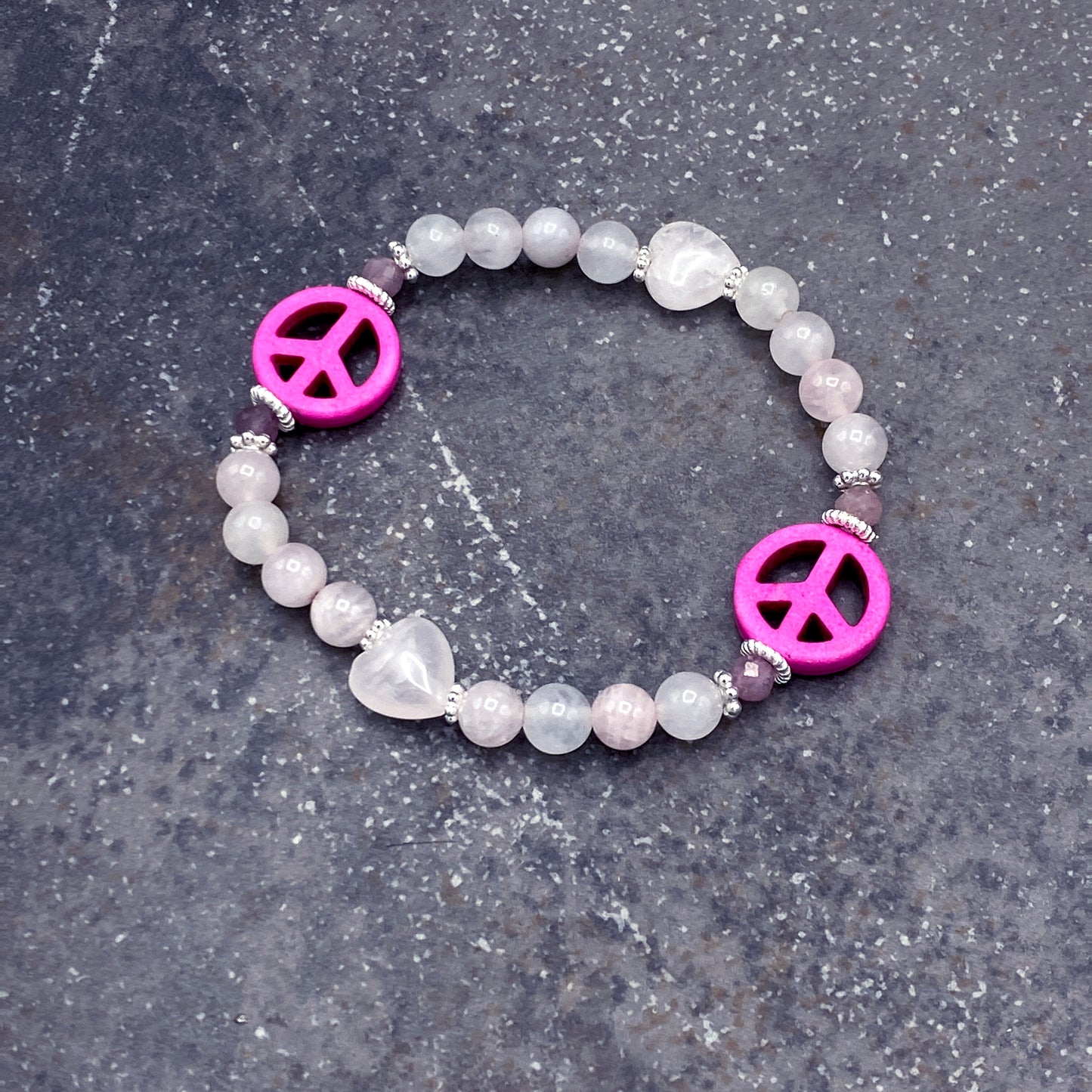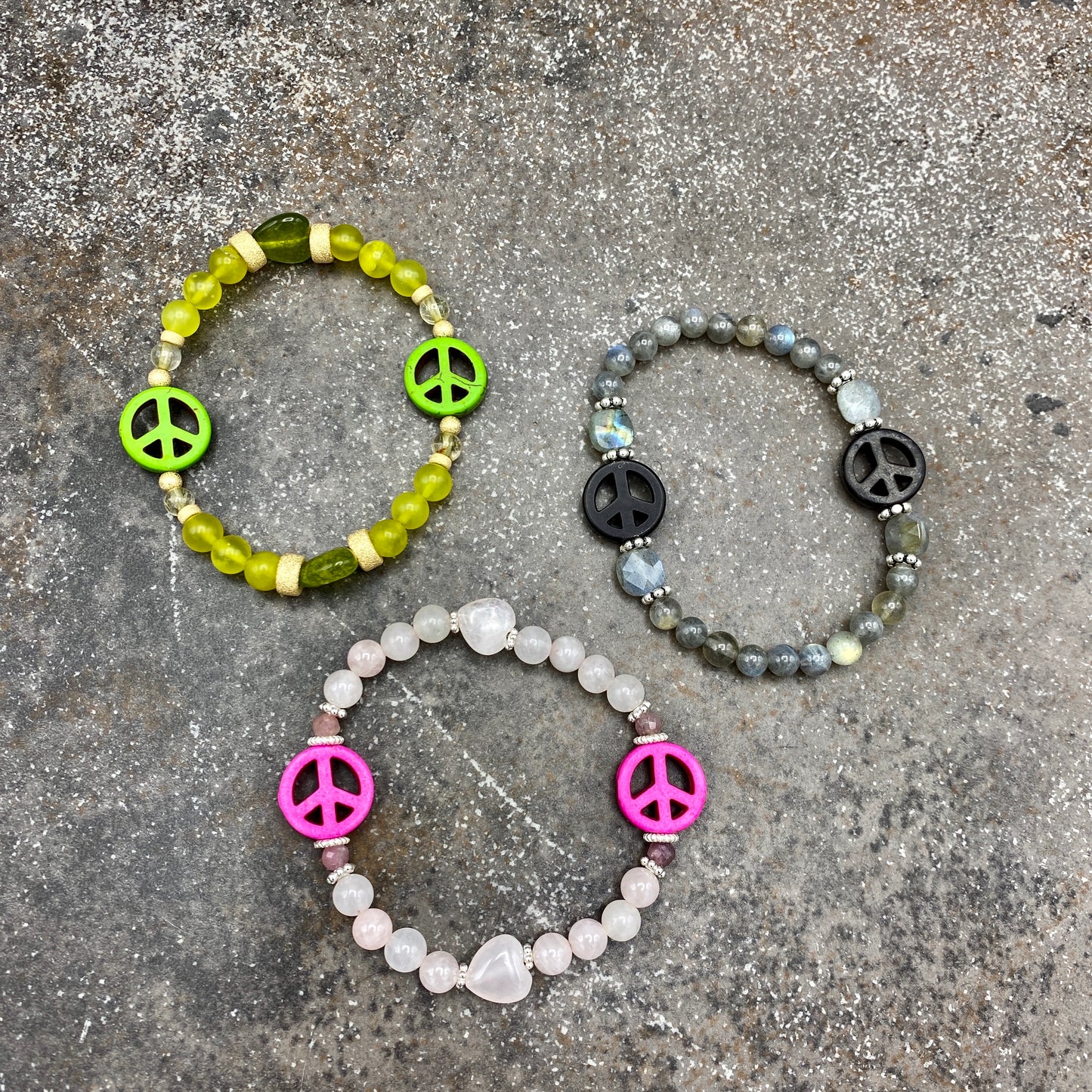 Women's Gemstone Peace Sign Bracelets with Sterling Silver.