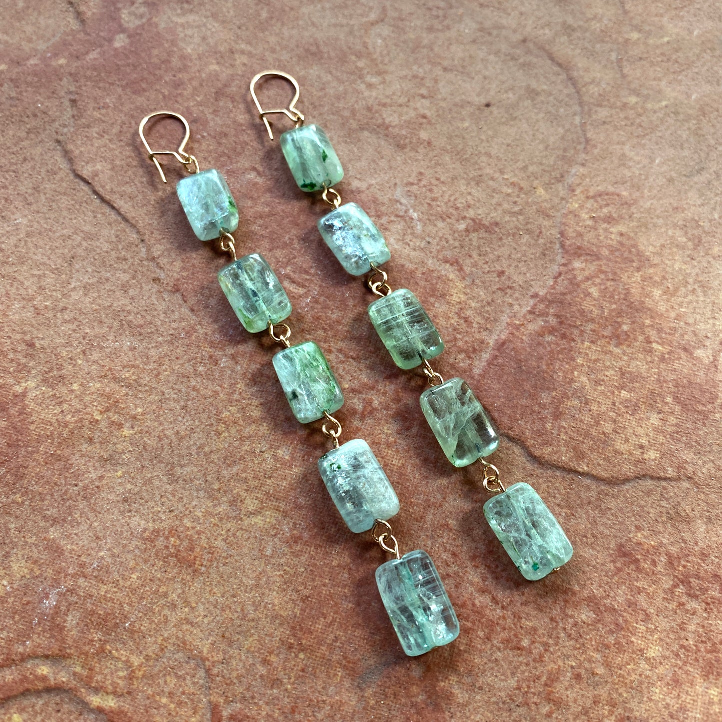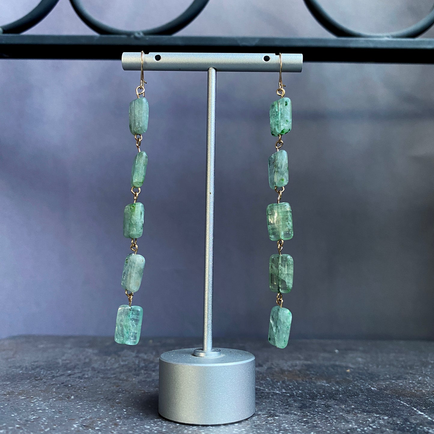 Green Kyanite Gemstone and 14 kt gold filled long drop earrings