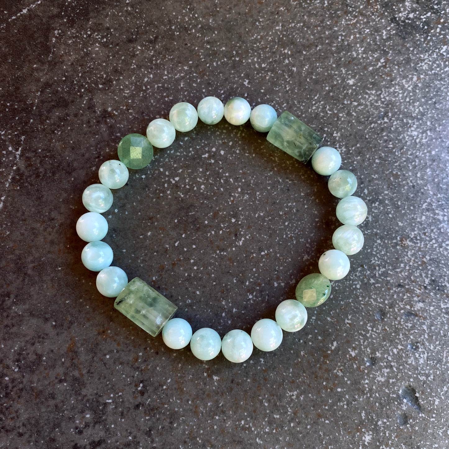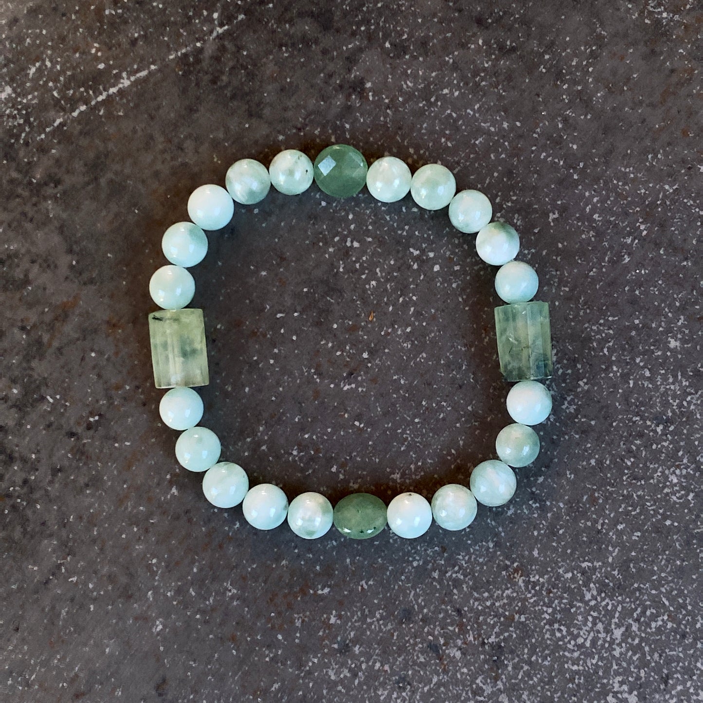 Green Moonstones, Aventurine and Prehnite Gemstone stretch bracelet