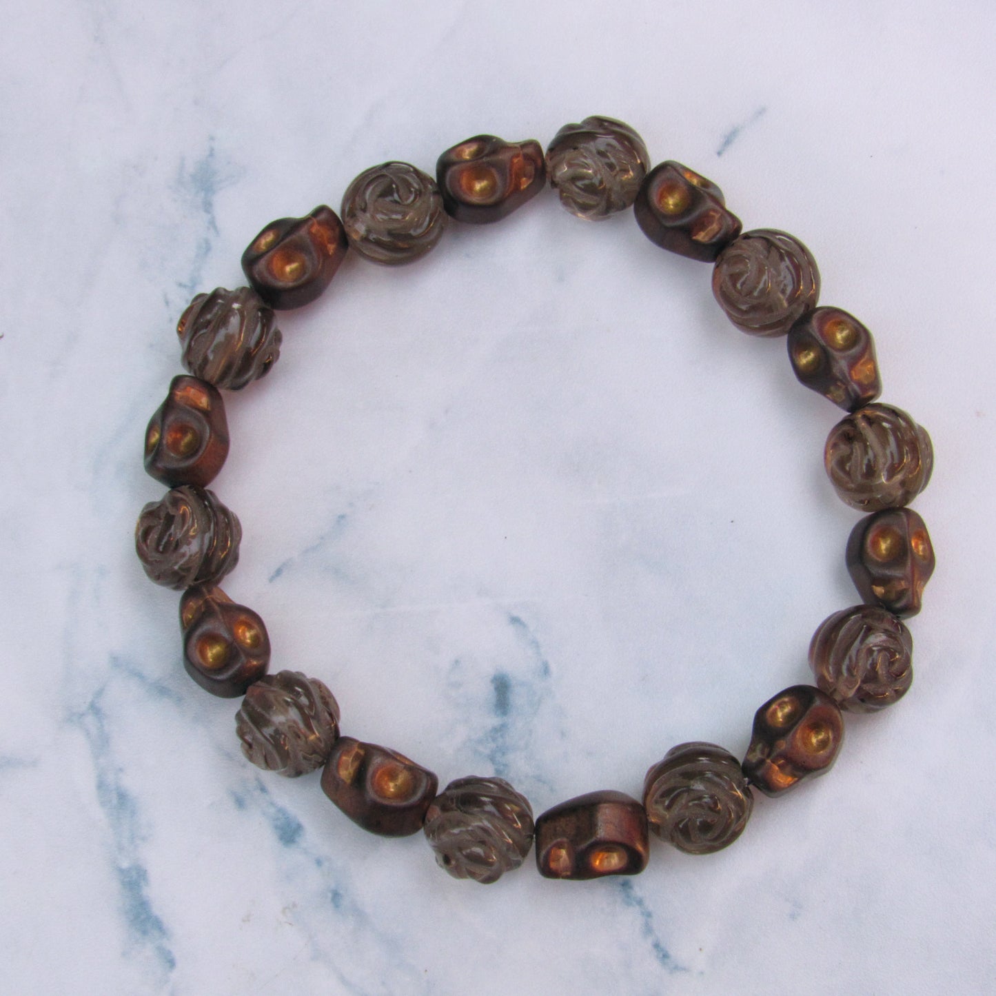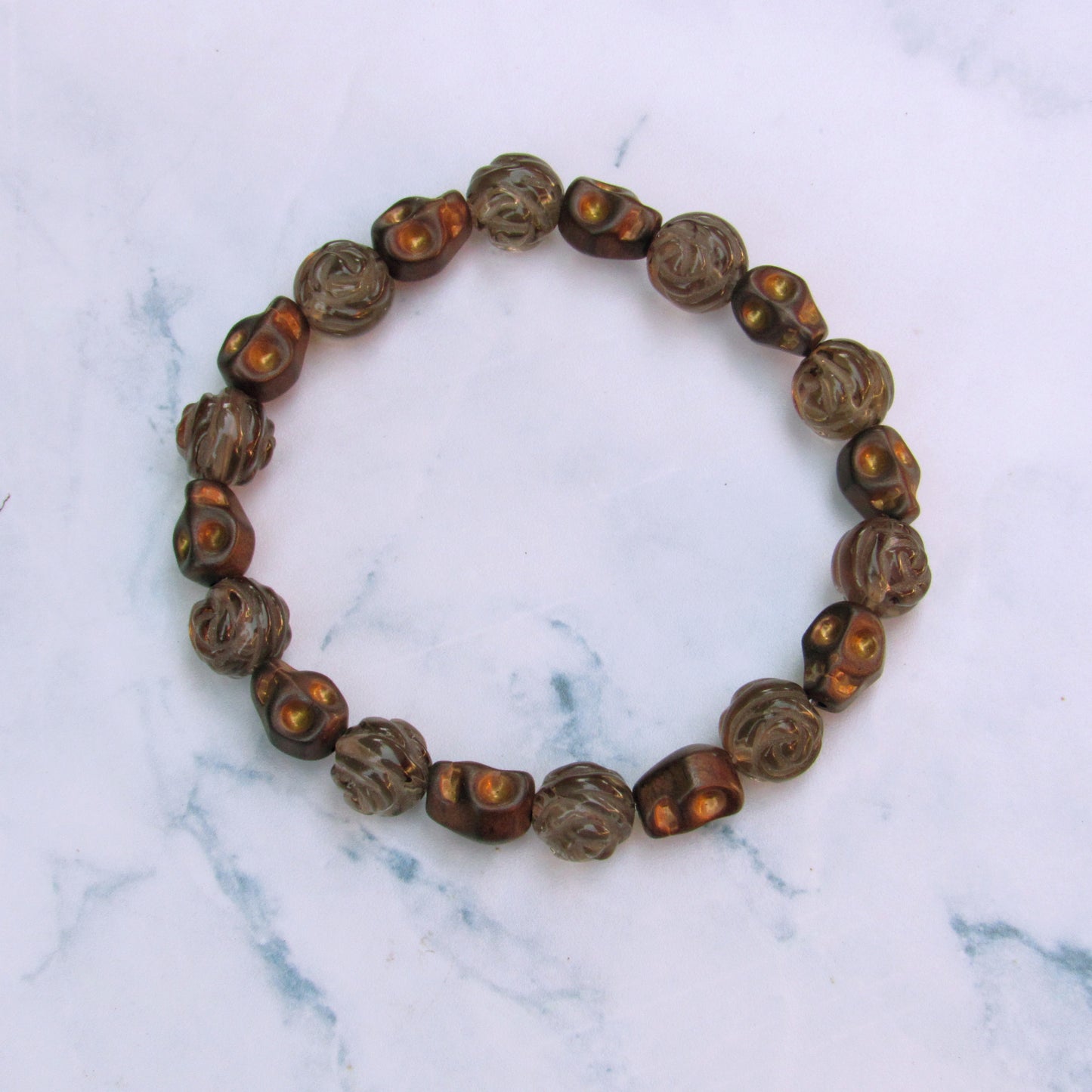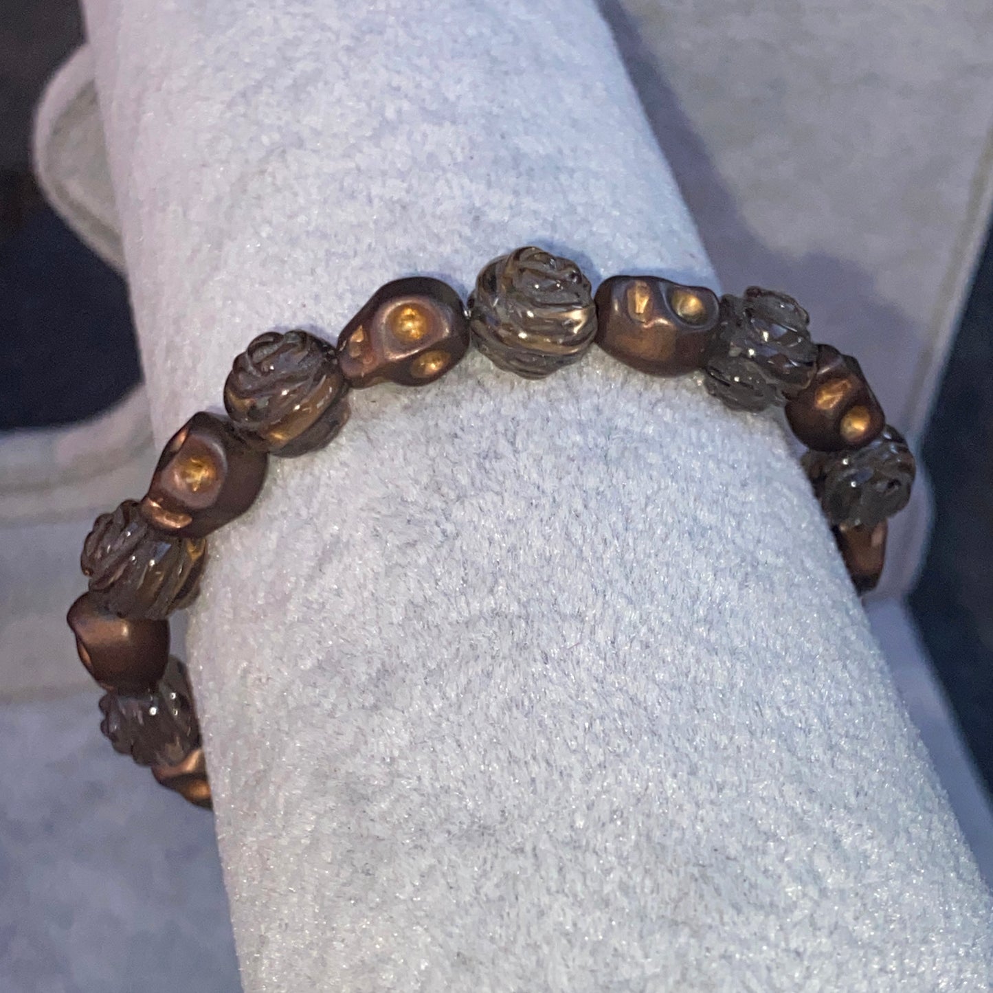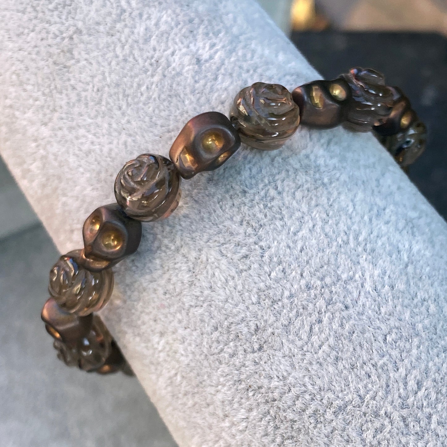 Hematite Skull and Smokey Quartz Rose Bracelet