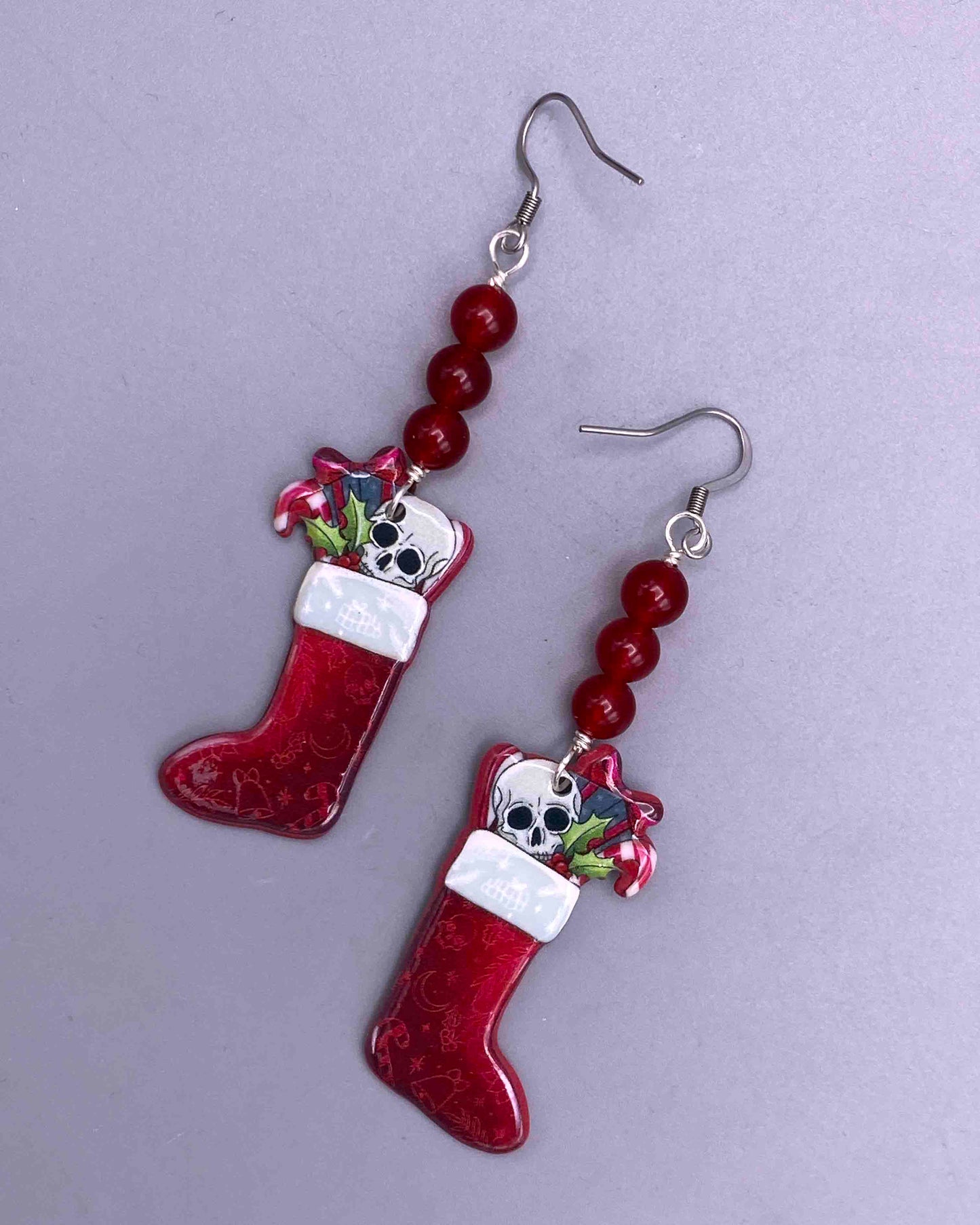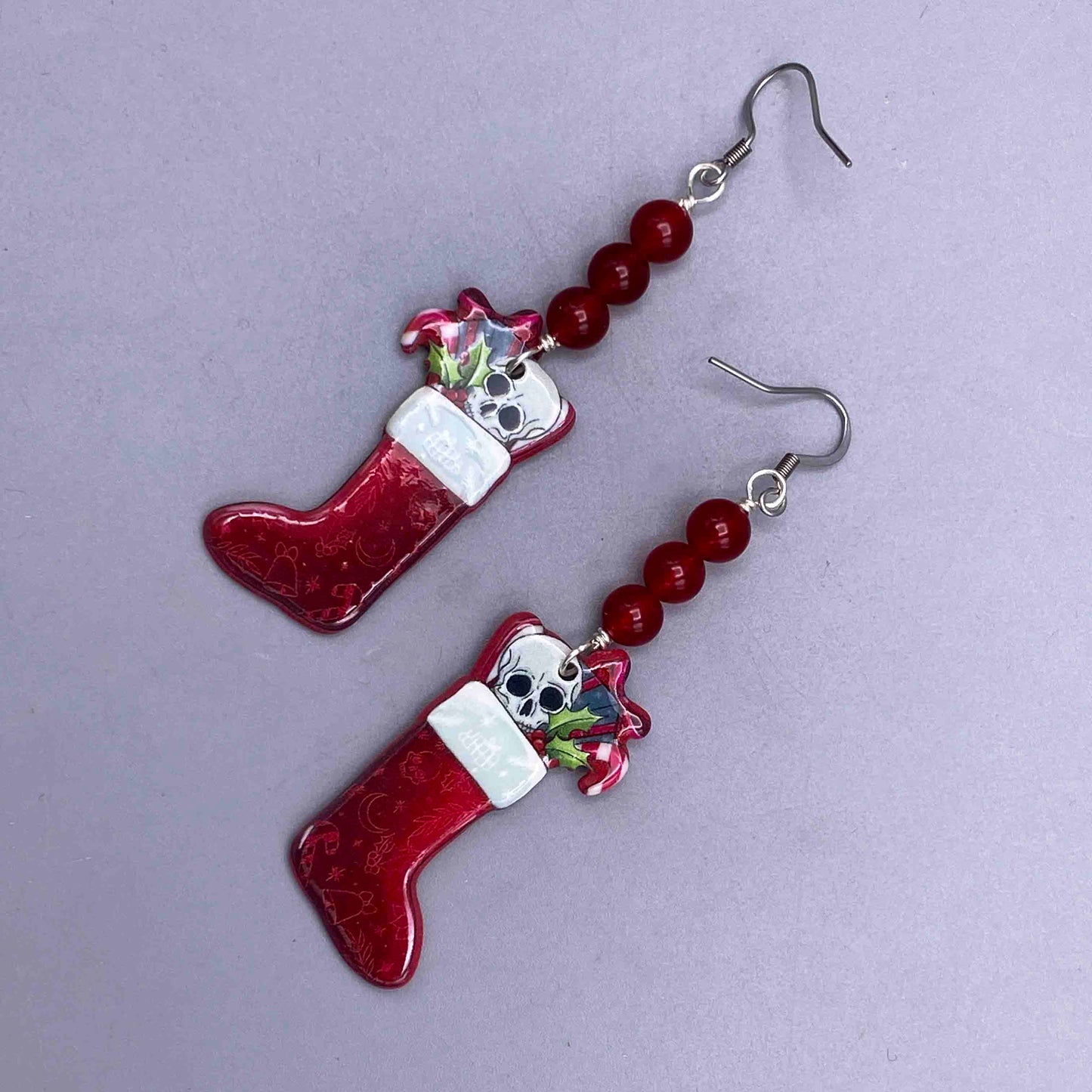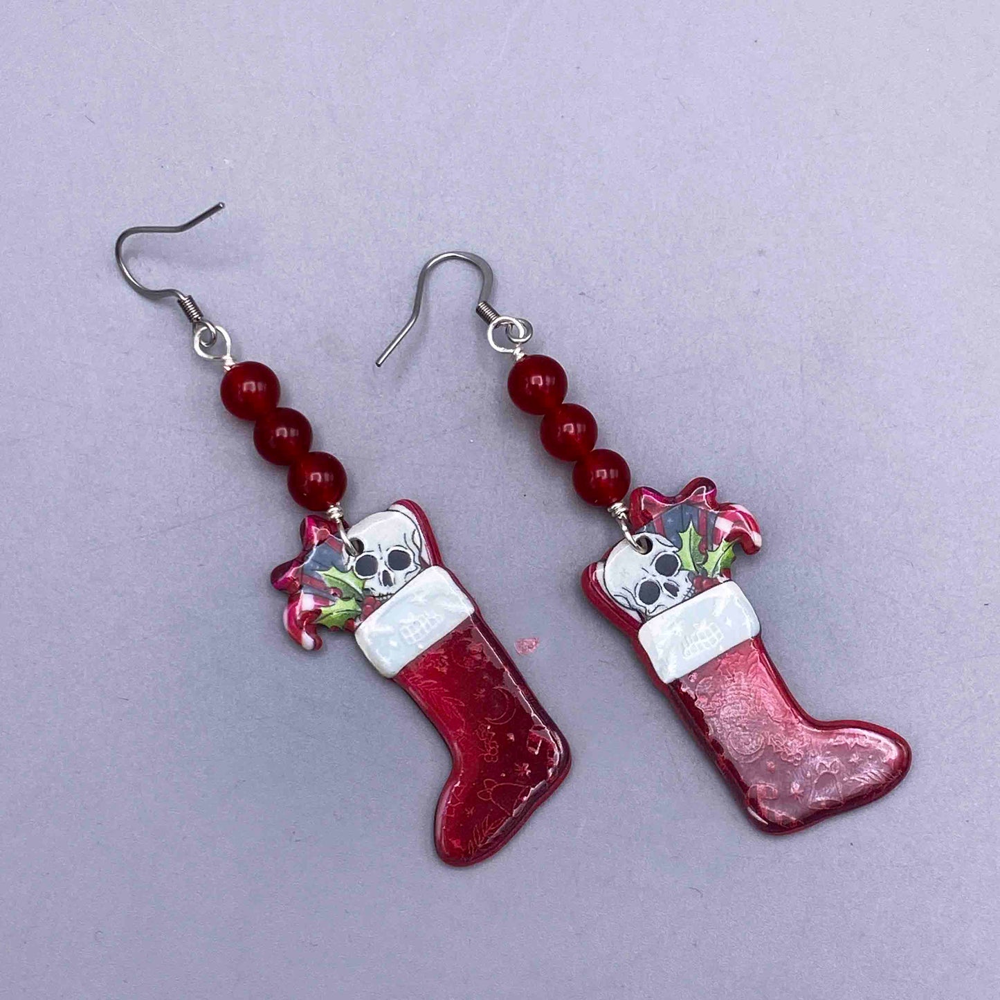 Jade and skull Christmas earrings