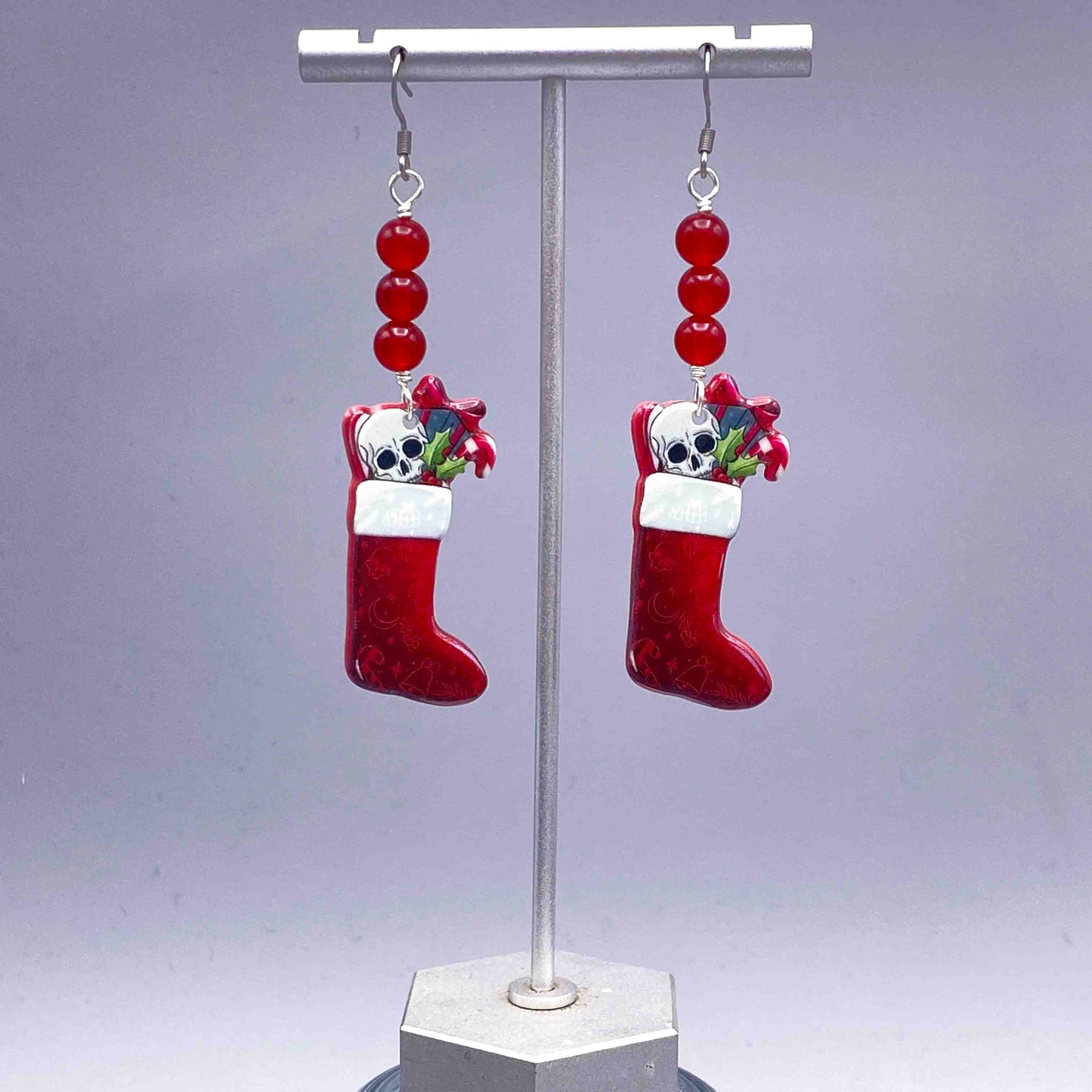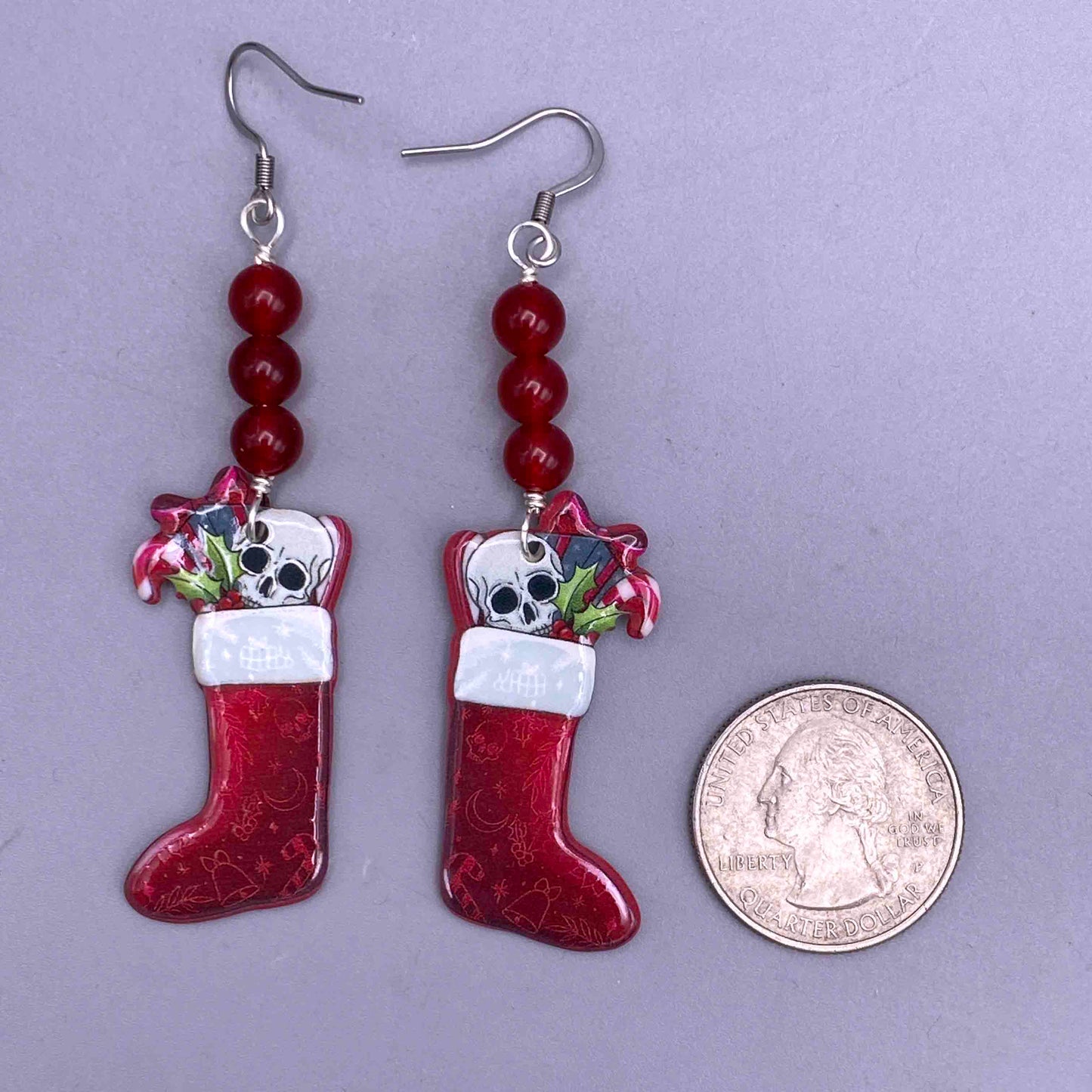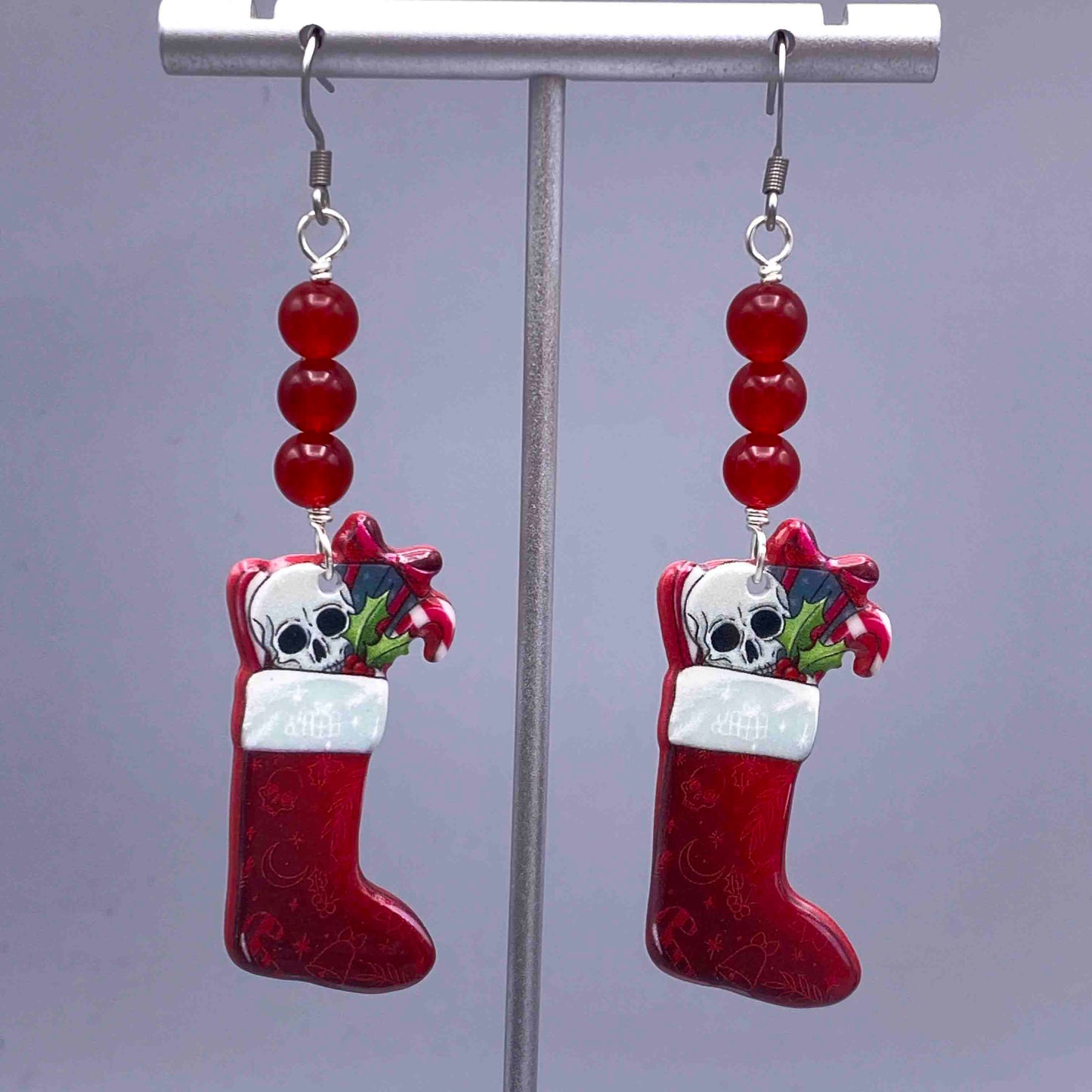 Jade and skull Christmas earrings
