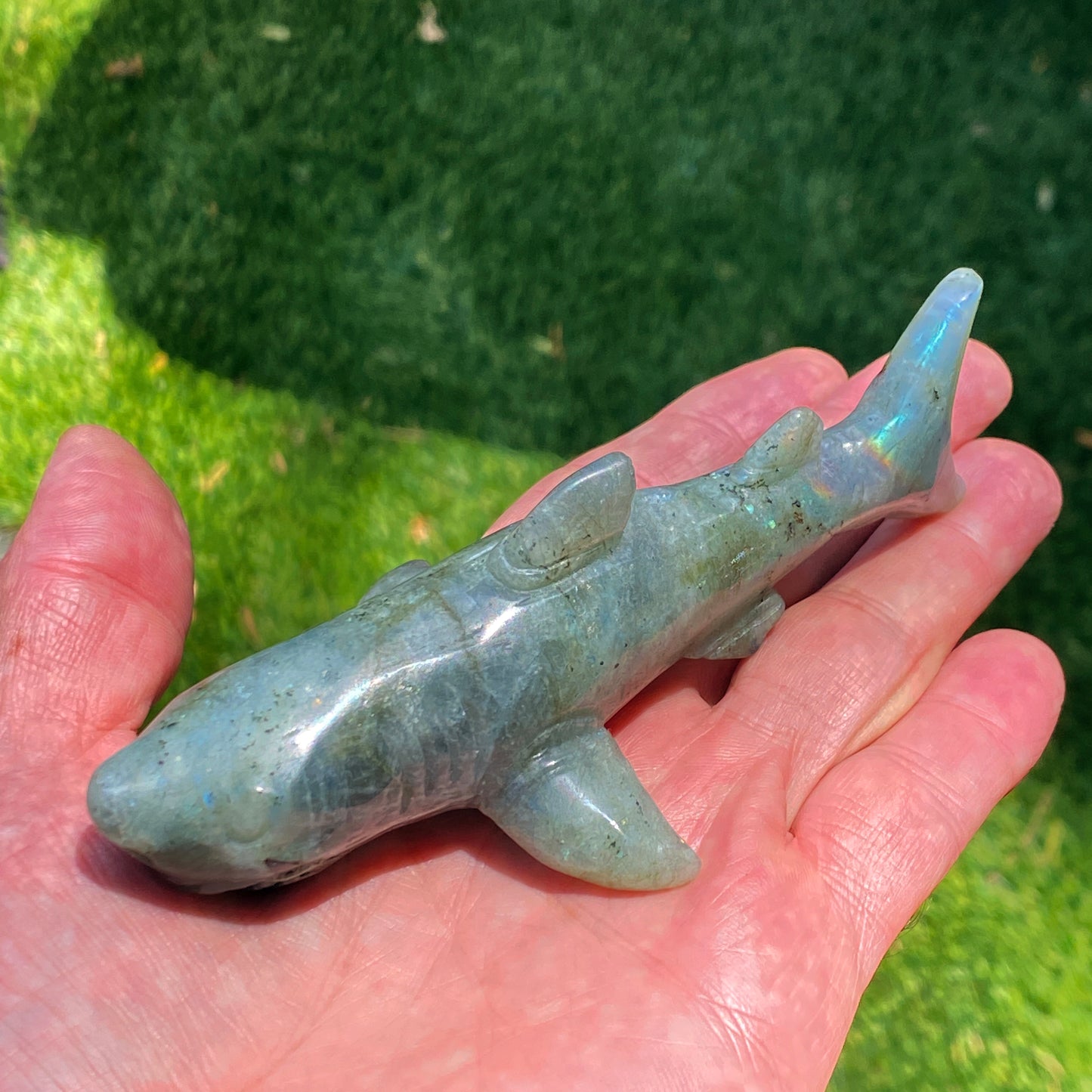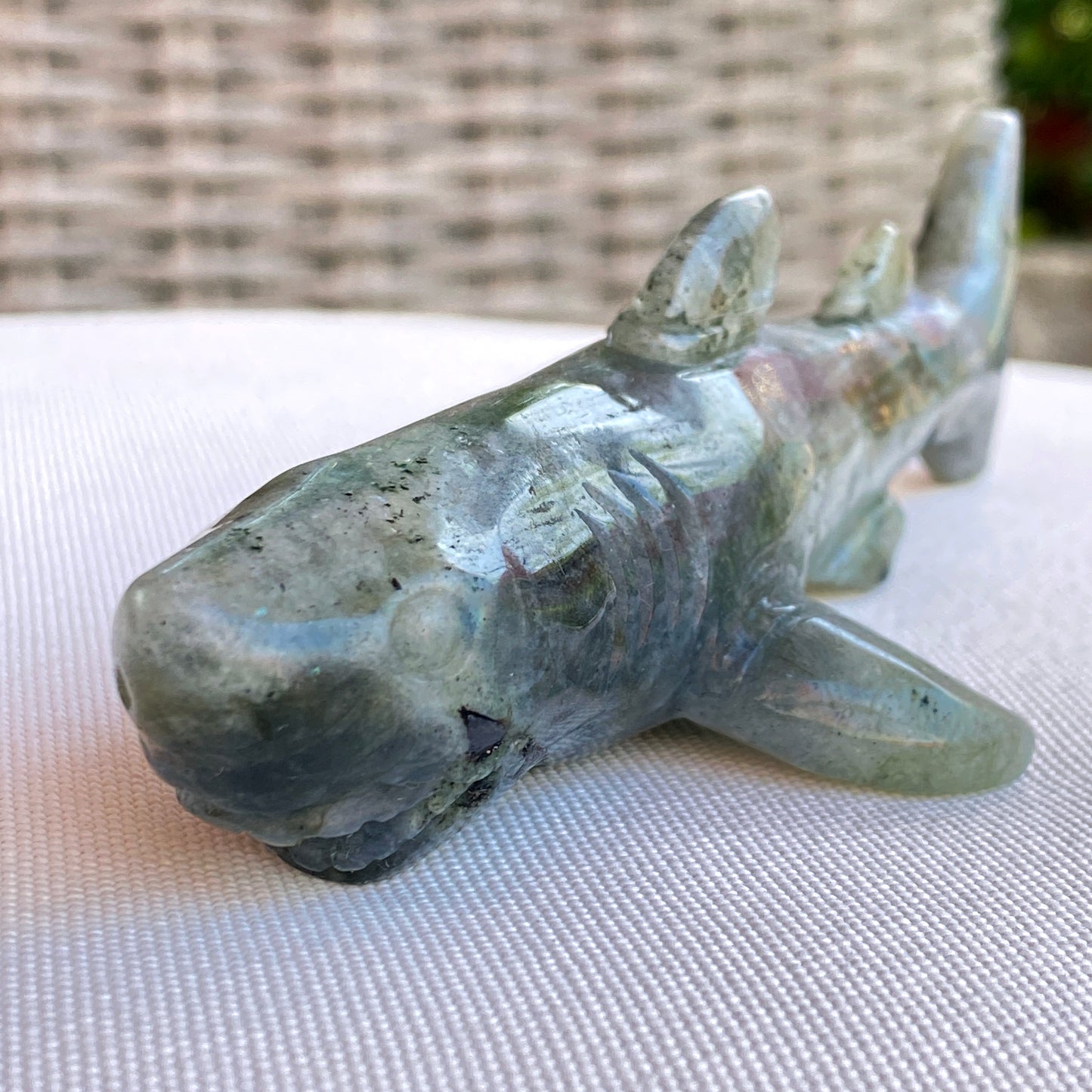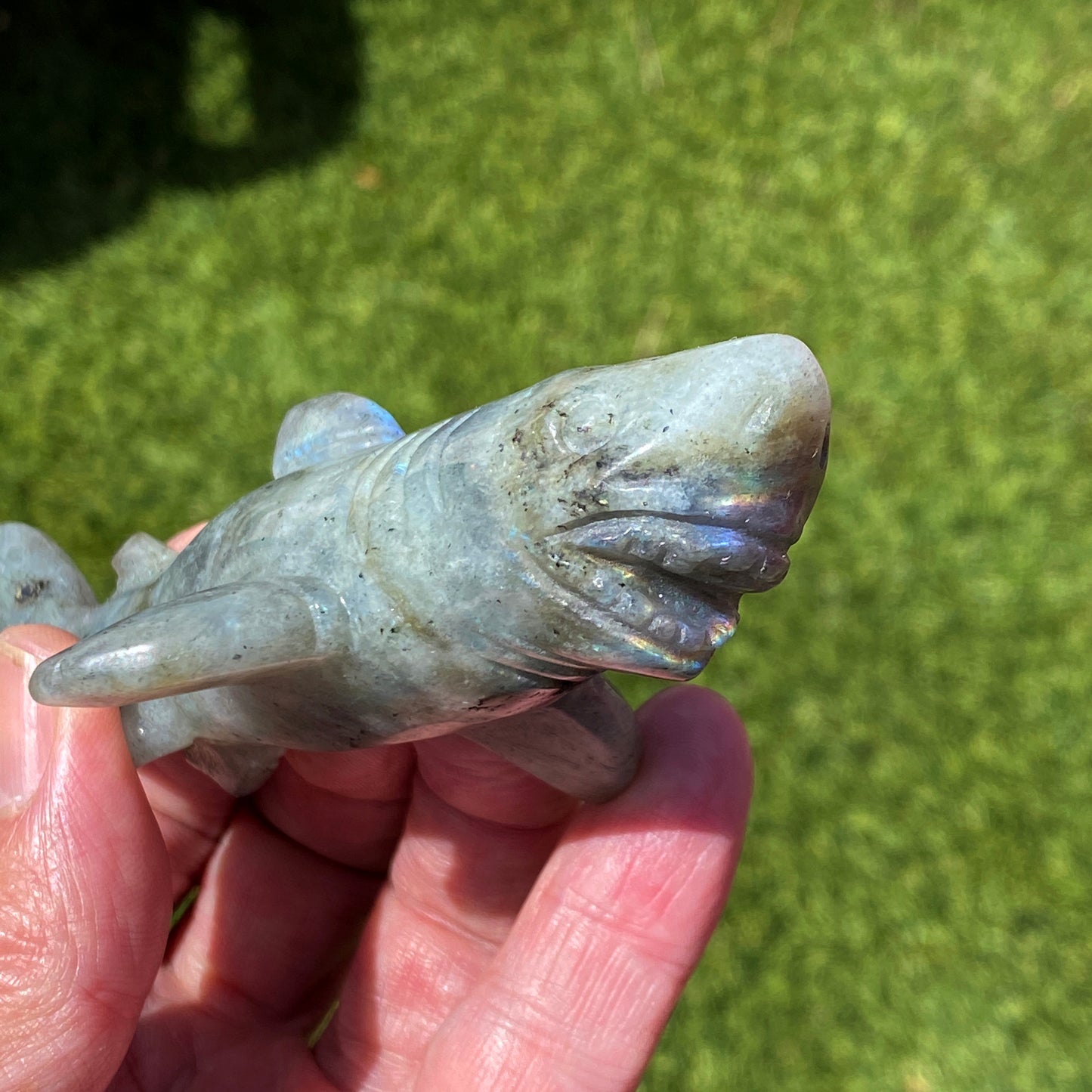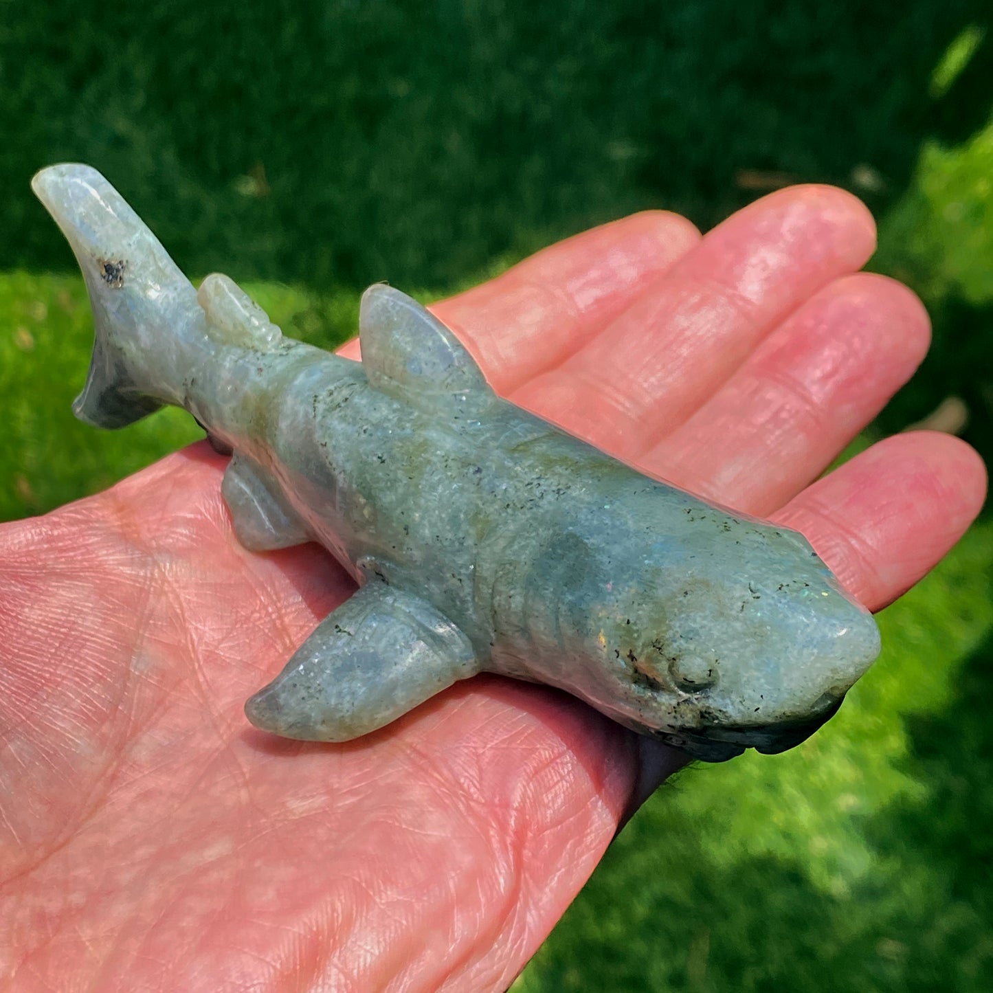 Labradorite gemstone carved Great White Shark Figurine