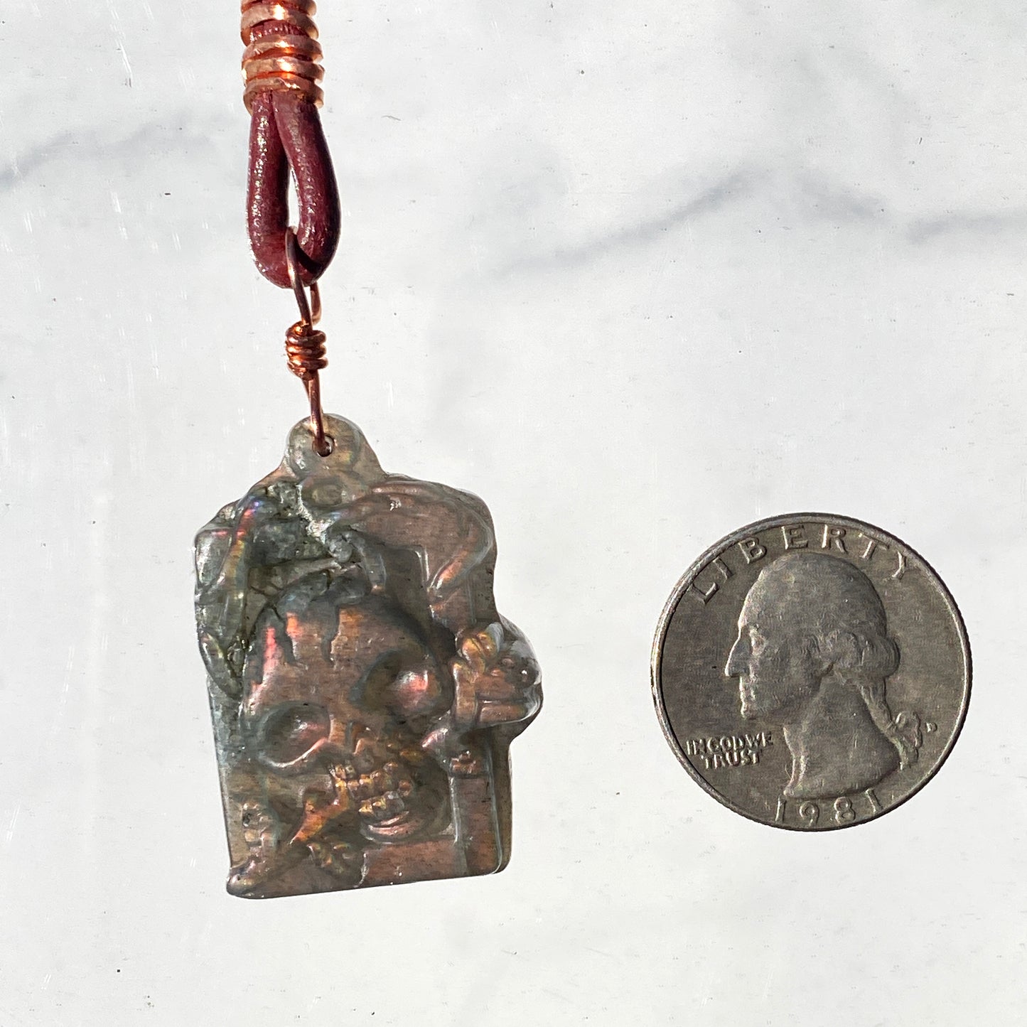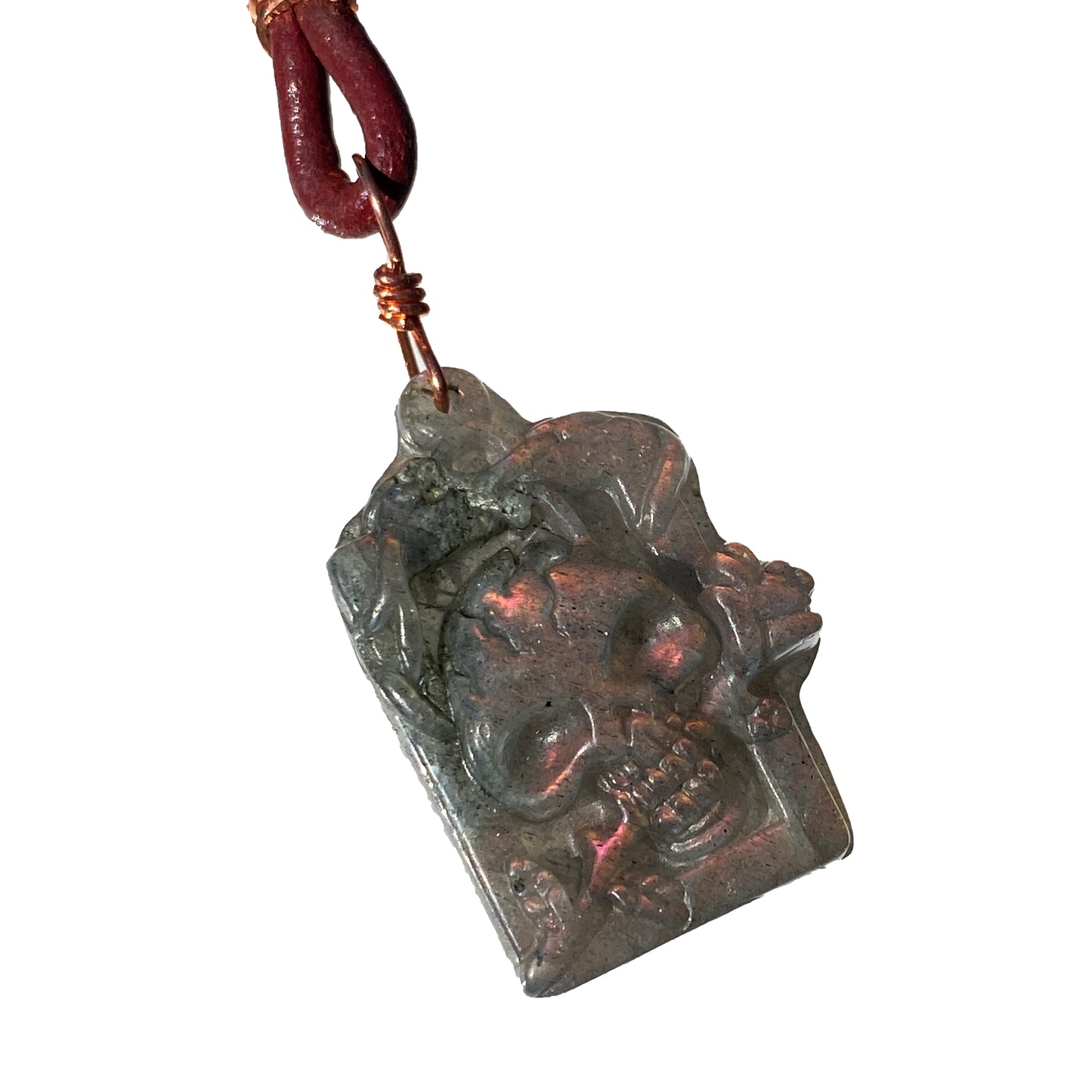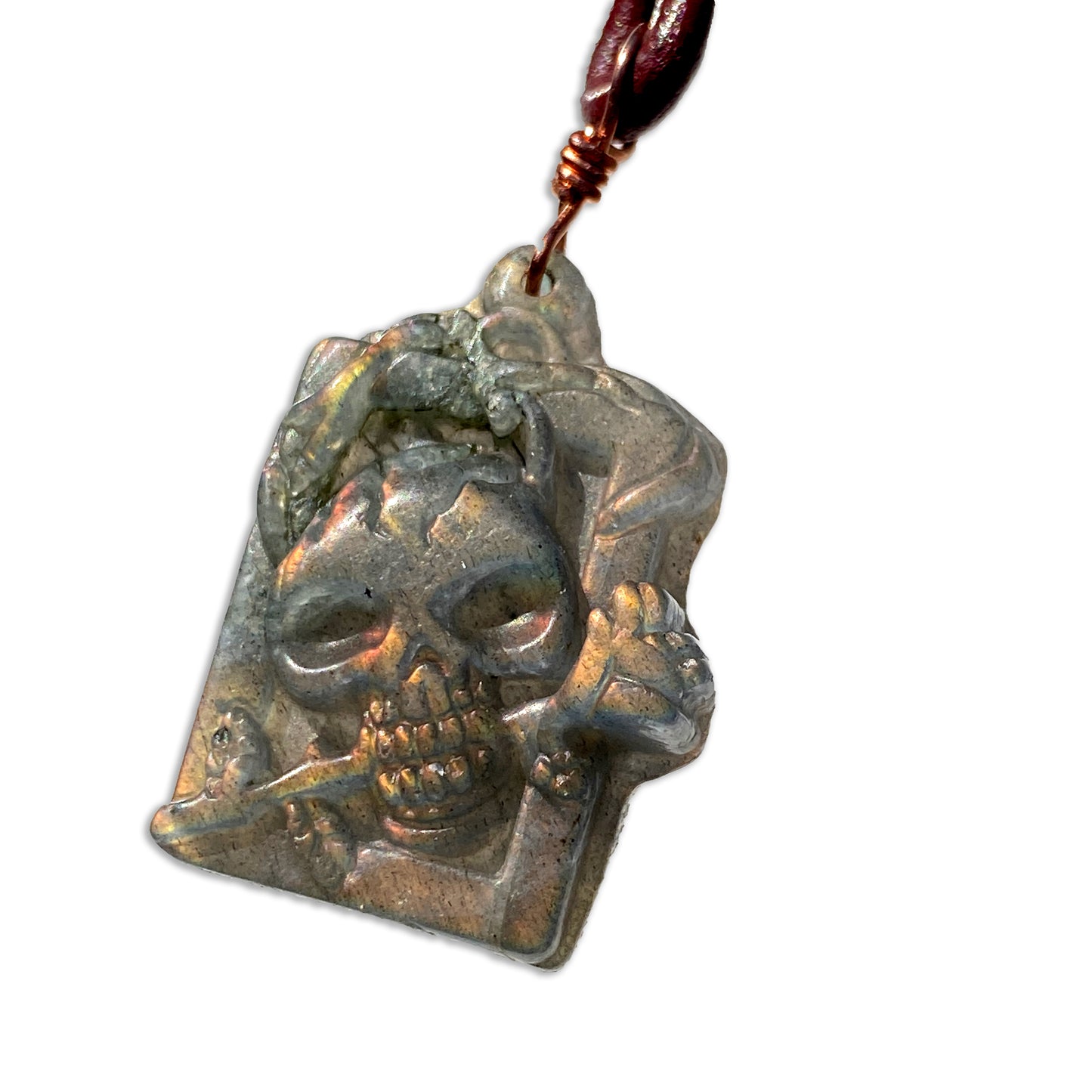 Labradorite gemstone Skull on Leather Necklace