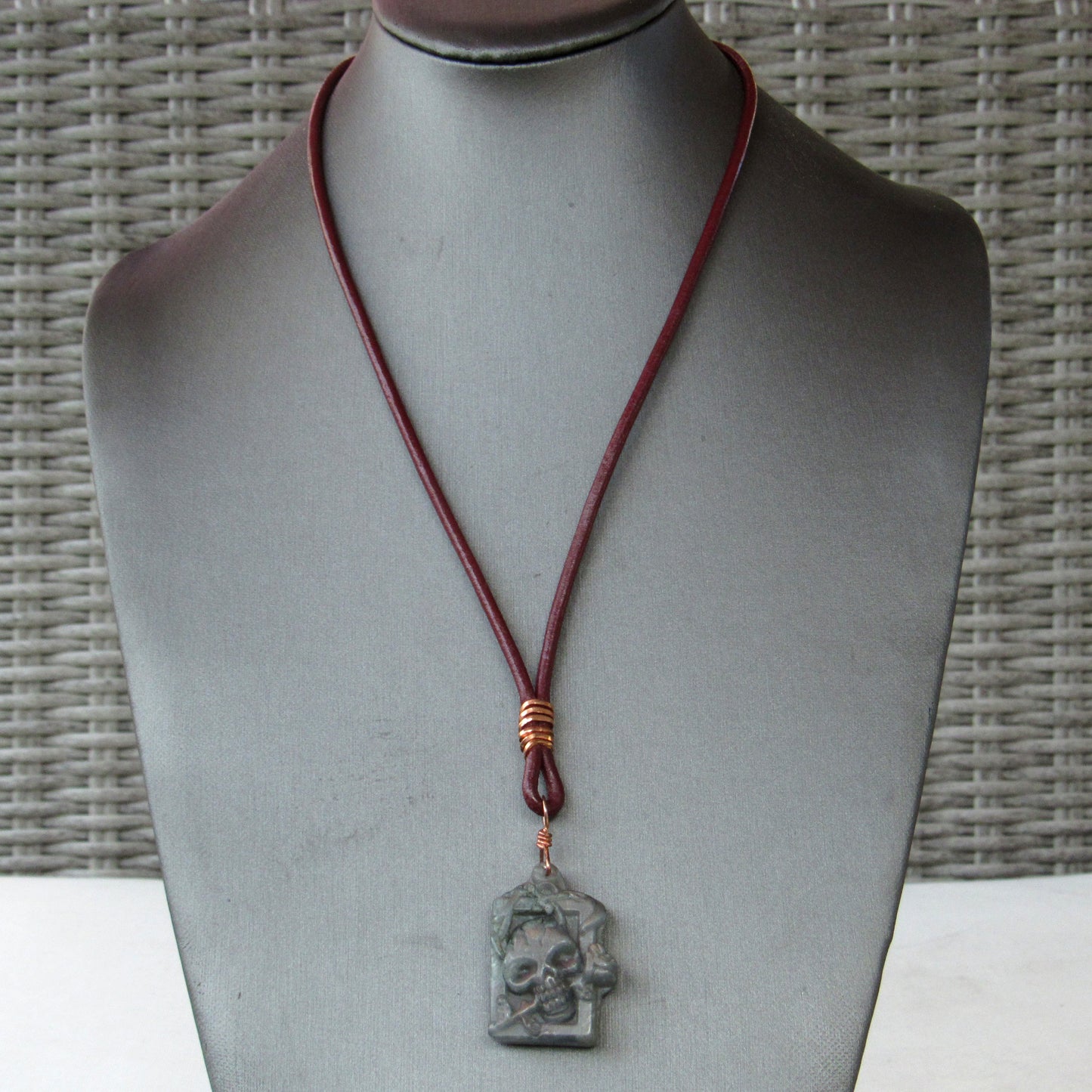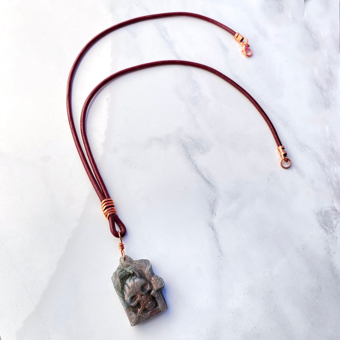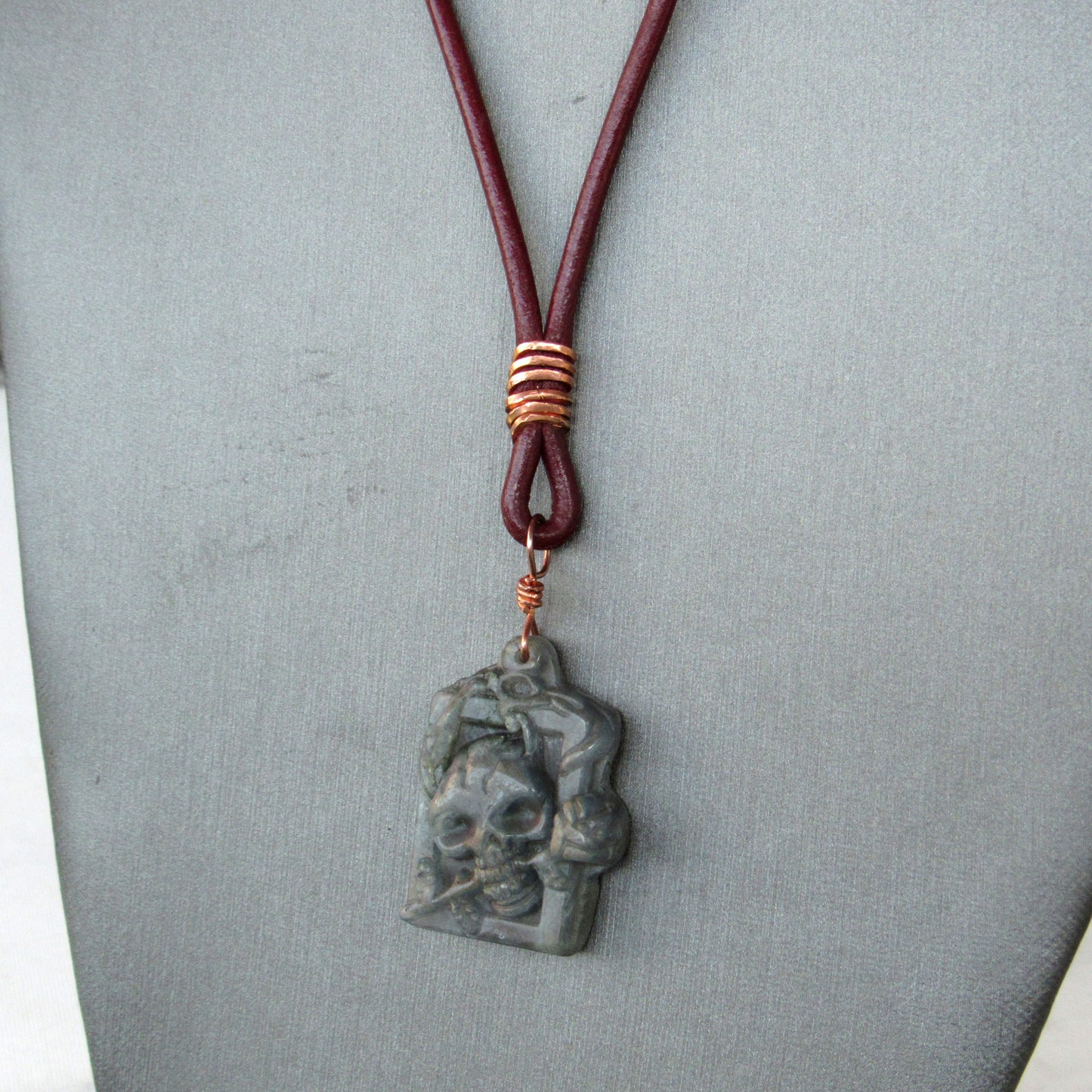 Labradorite gemstone Skull on Leather Necklace
