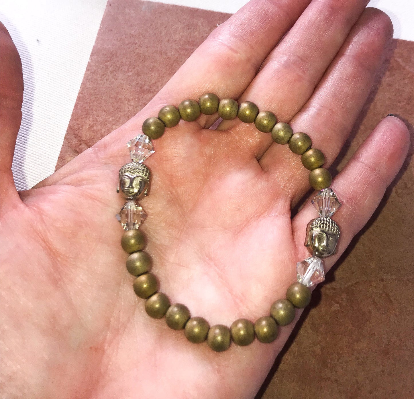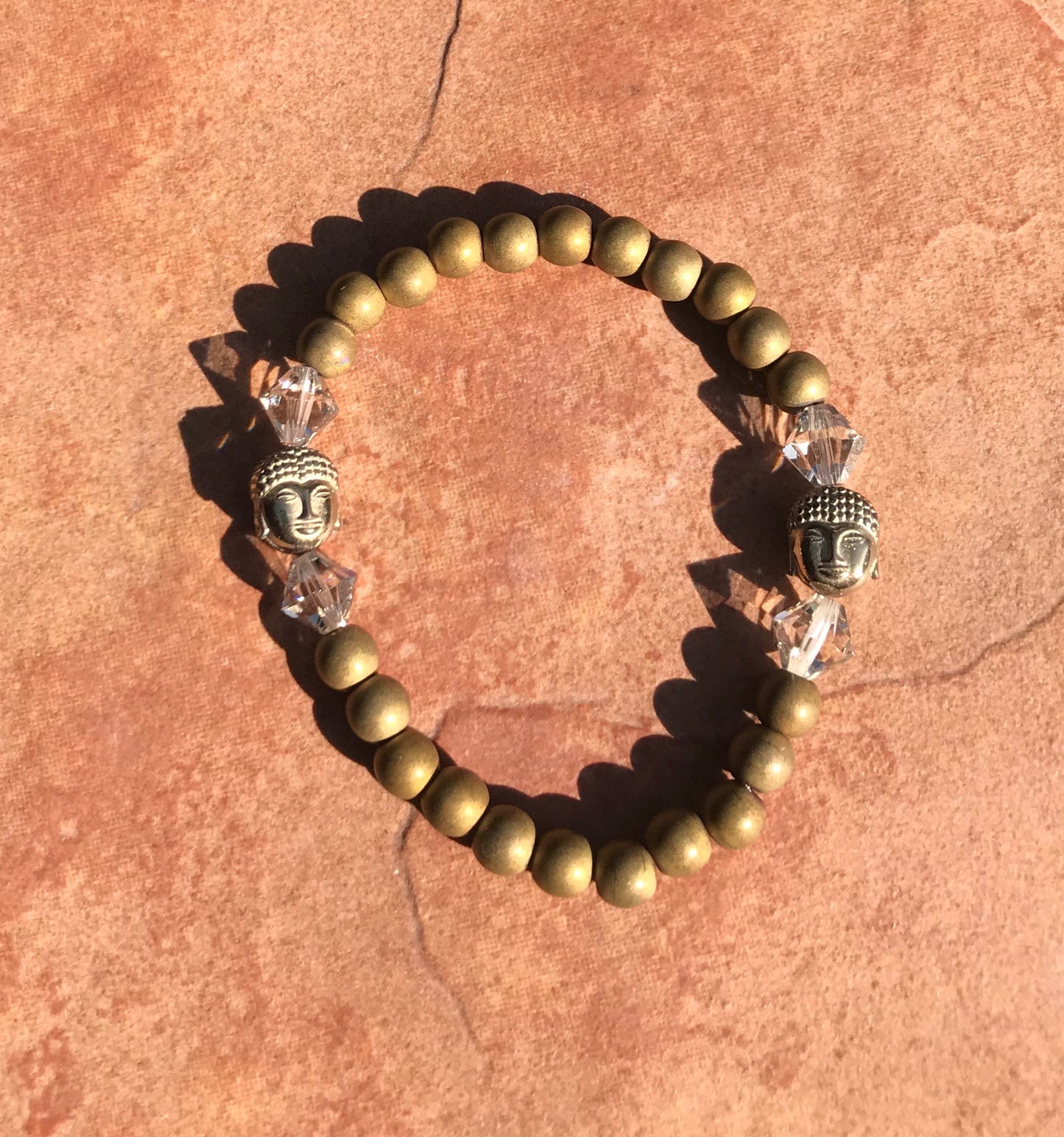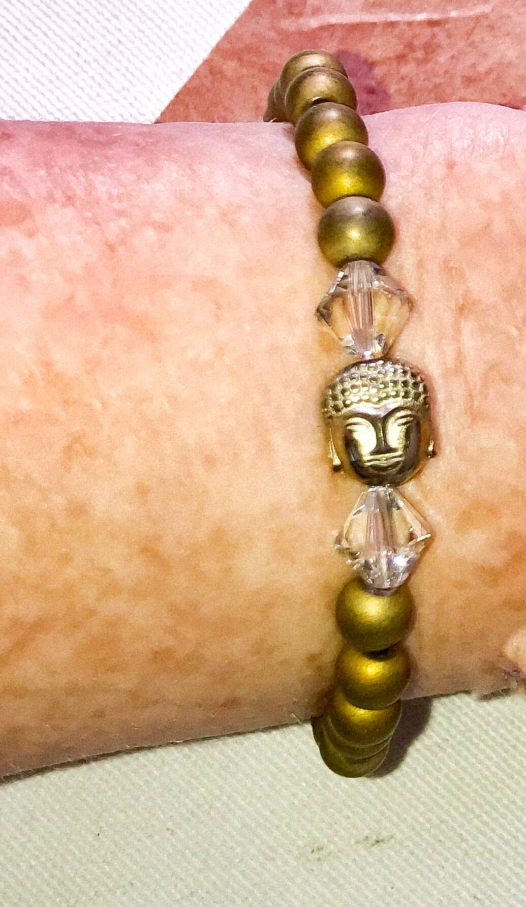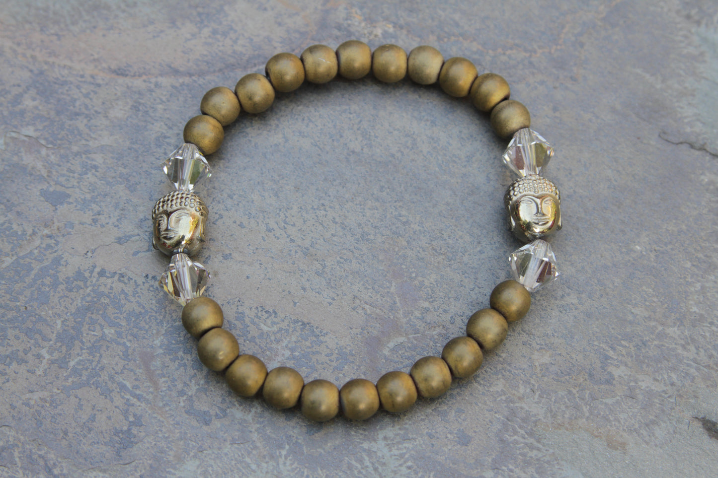 Matte gold hematite, Buddha hematite and Swarovski Crystal bracelet