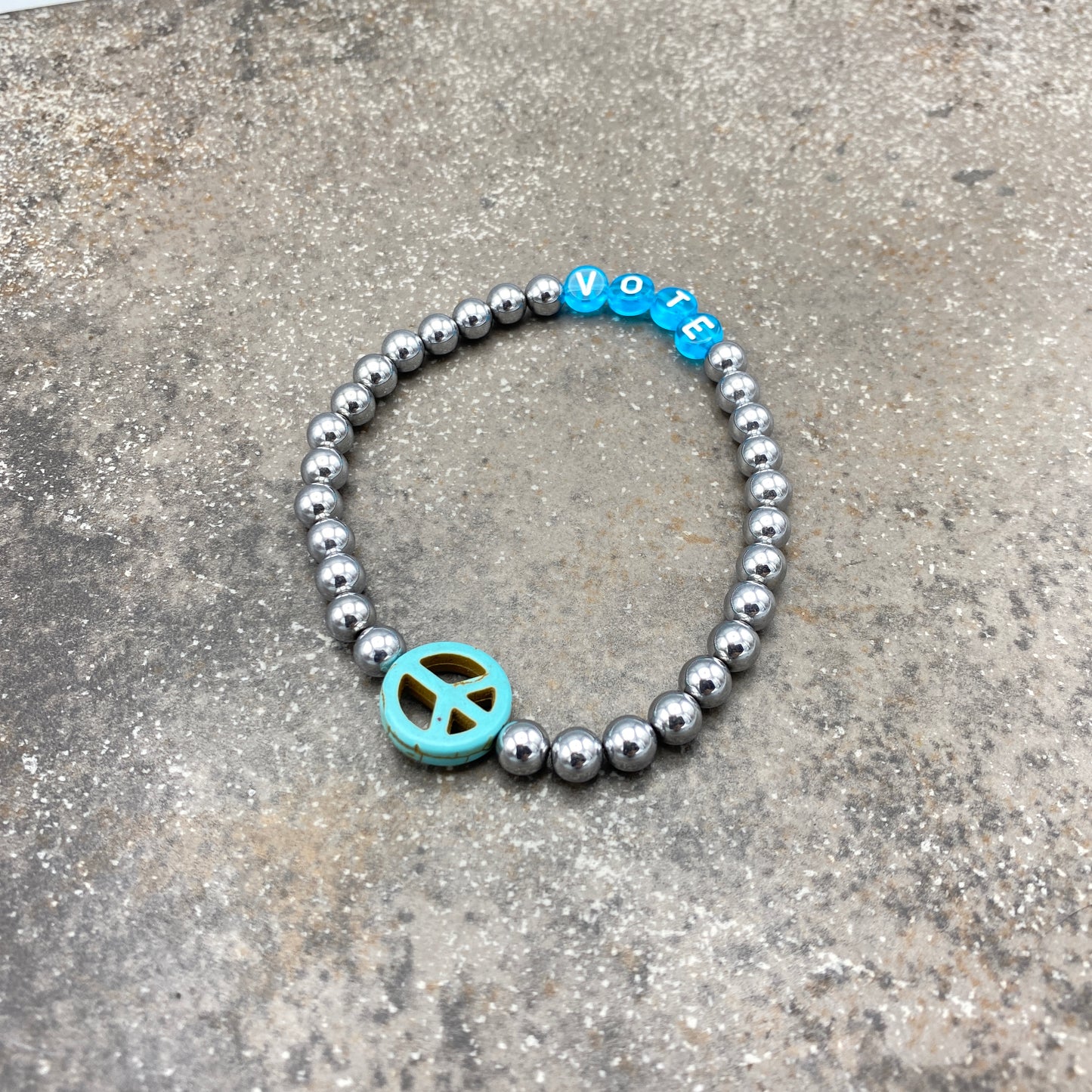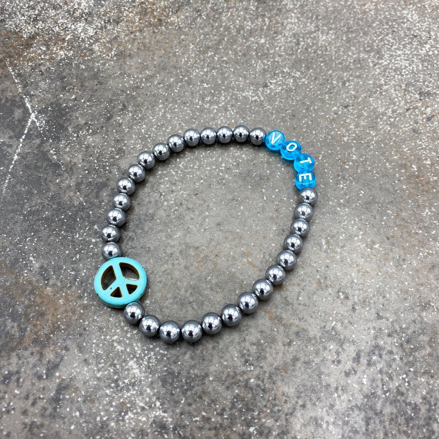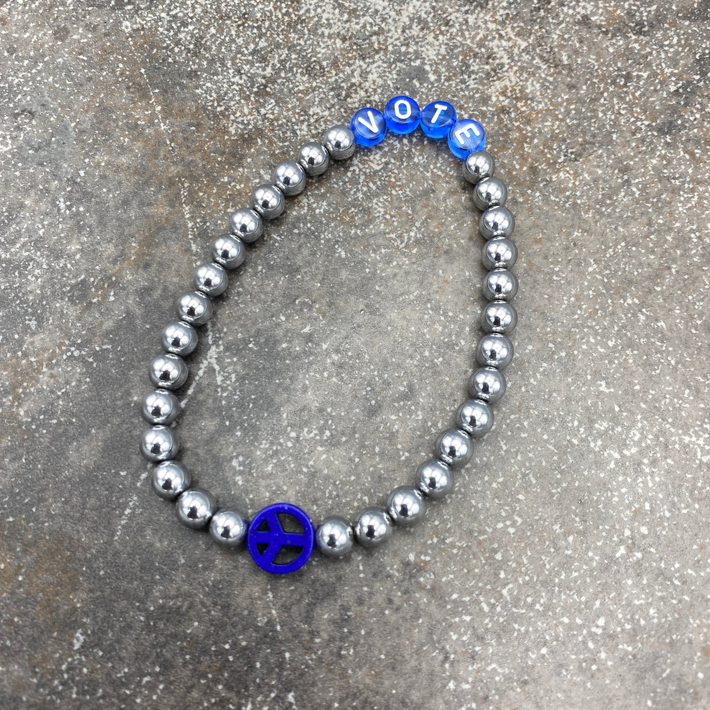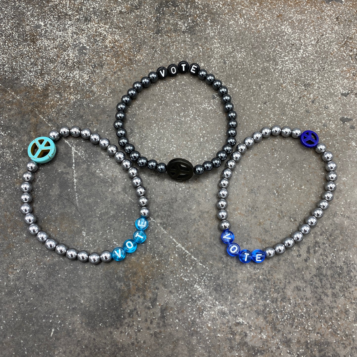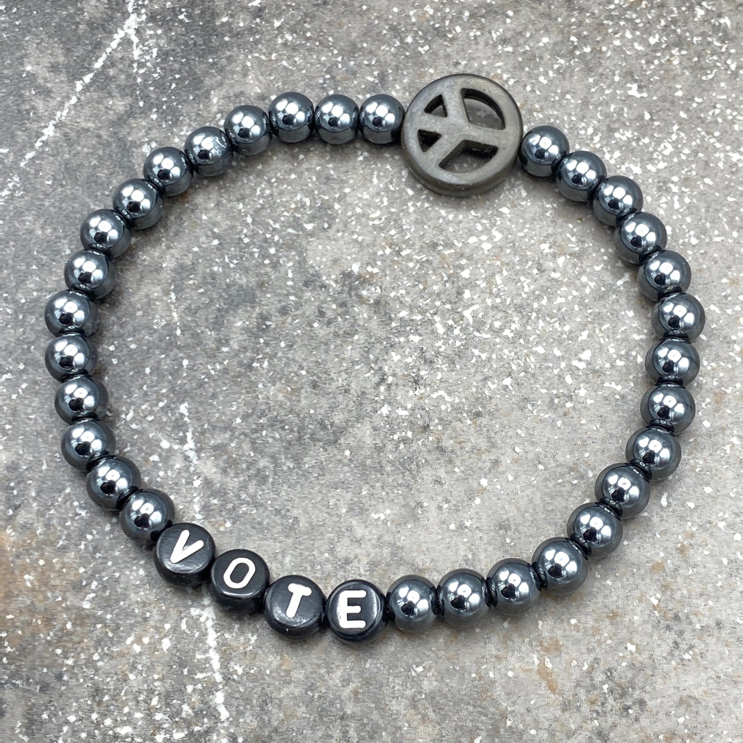 Men’s Hematite gemstone Vote bracelet in various color/stone combinations.
