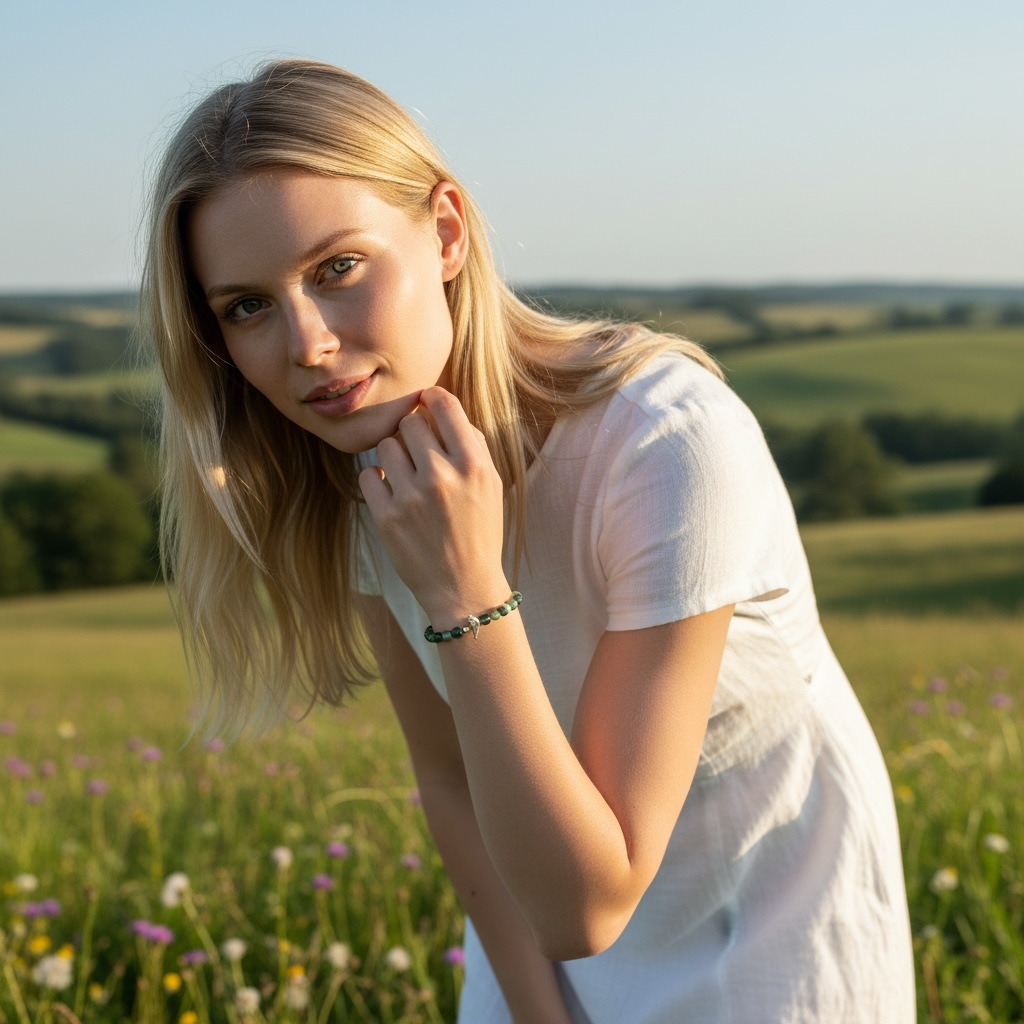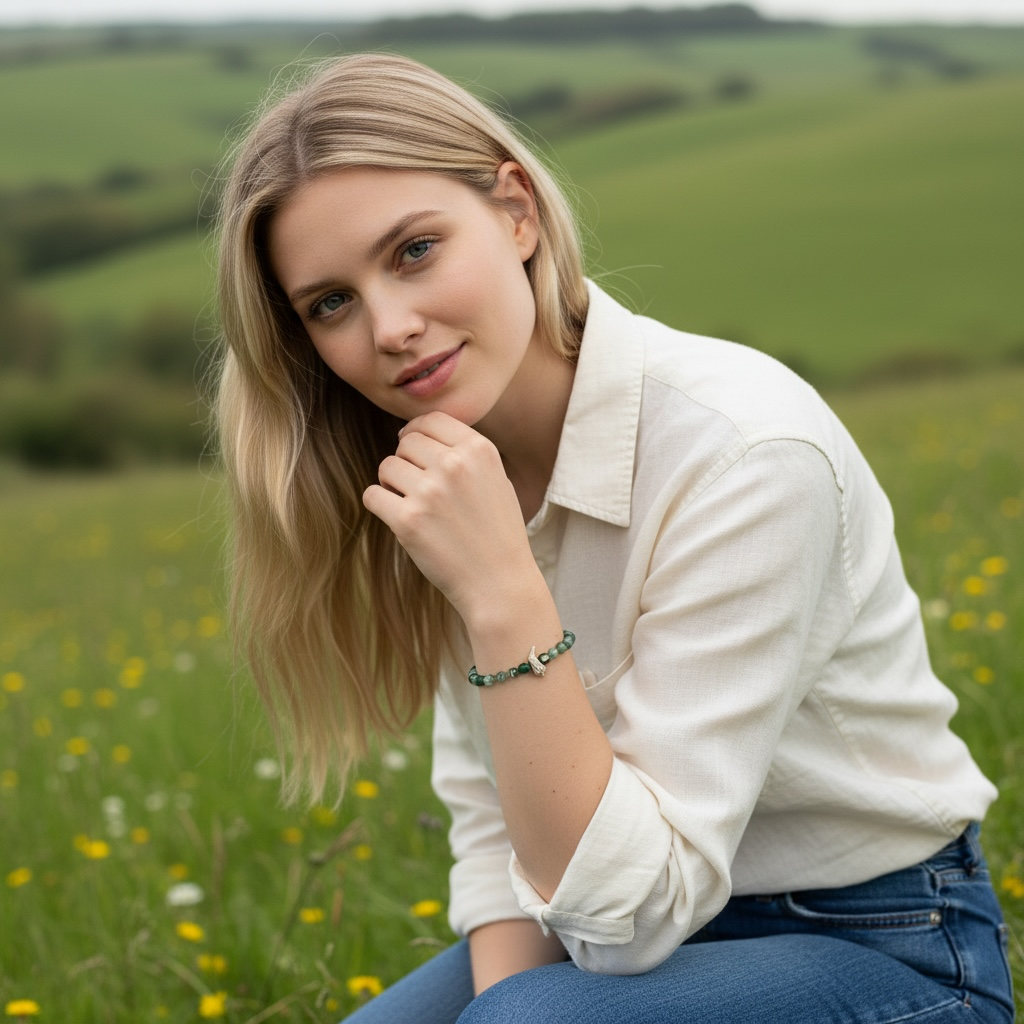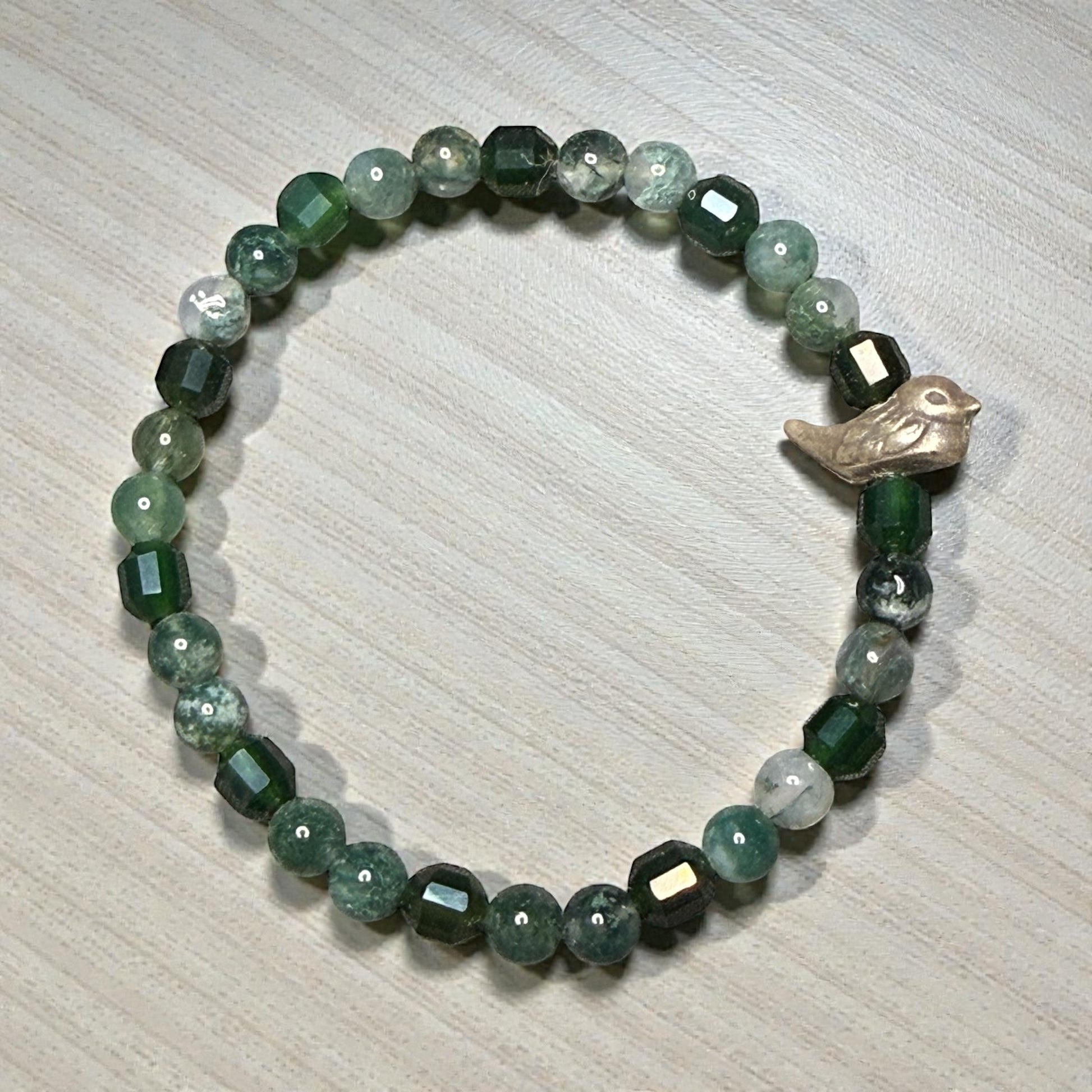 Moss Agate Gemstone and bird bracelet