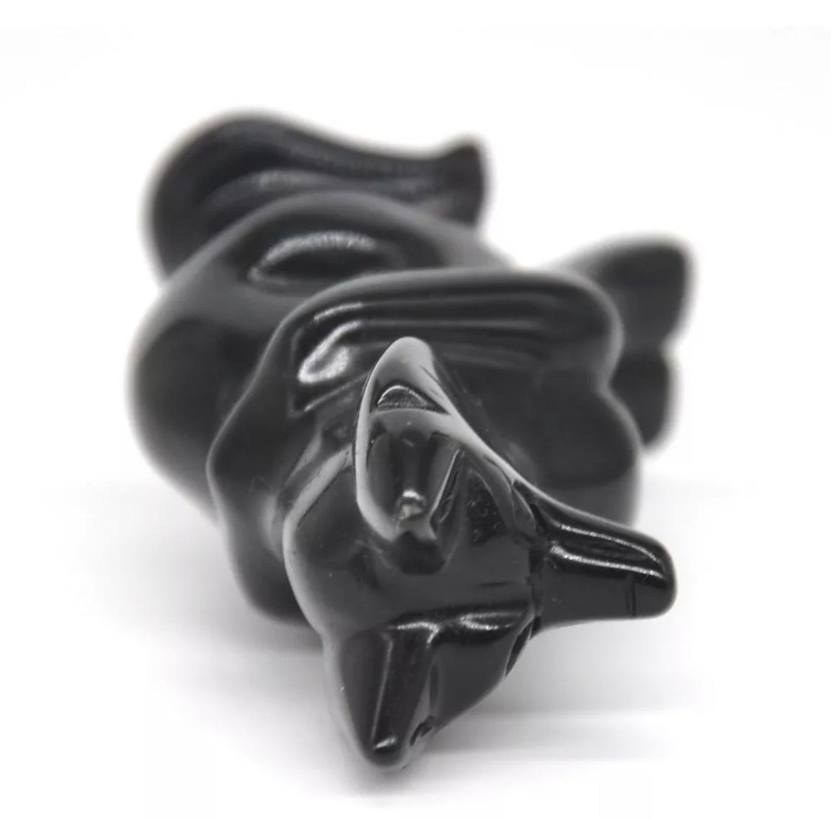 Obsidian is a glassy, silica rich rock formed from lava with a hardness of 5 to 5.5. It is an amorphous stone meaning that its structure contains no regular geometric pattern. Obsidian is found in South America, Japan, Mexico, Afghanistan, and parts of the United States.