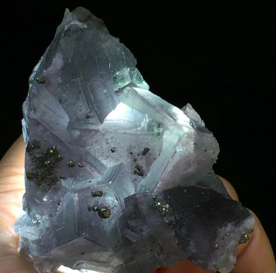 Natural Translucent Blue Trapezoidal Fluorite Pyrite Collectors Piece