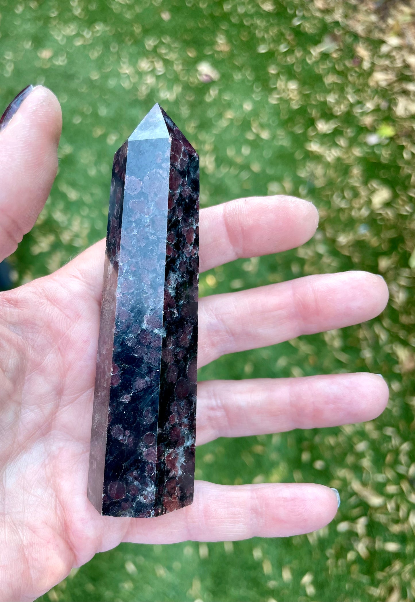 Garnet crystal derives its name from either of the medieval Latin words Granatum, “pomegranate”, referring to it’s color or granum, the name of a red dye. However Garnet can be found in many colours ranging from dark red to orange, green to brown, pink and black. In ancient times it was referred to as Carbunculus, a reference to glowing embers, Noah’s Ark was said to be lit by a Garnet lantern.