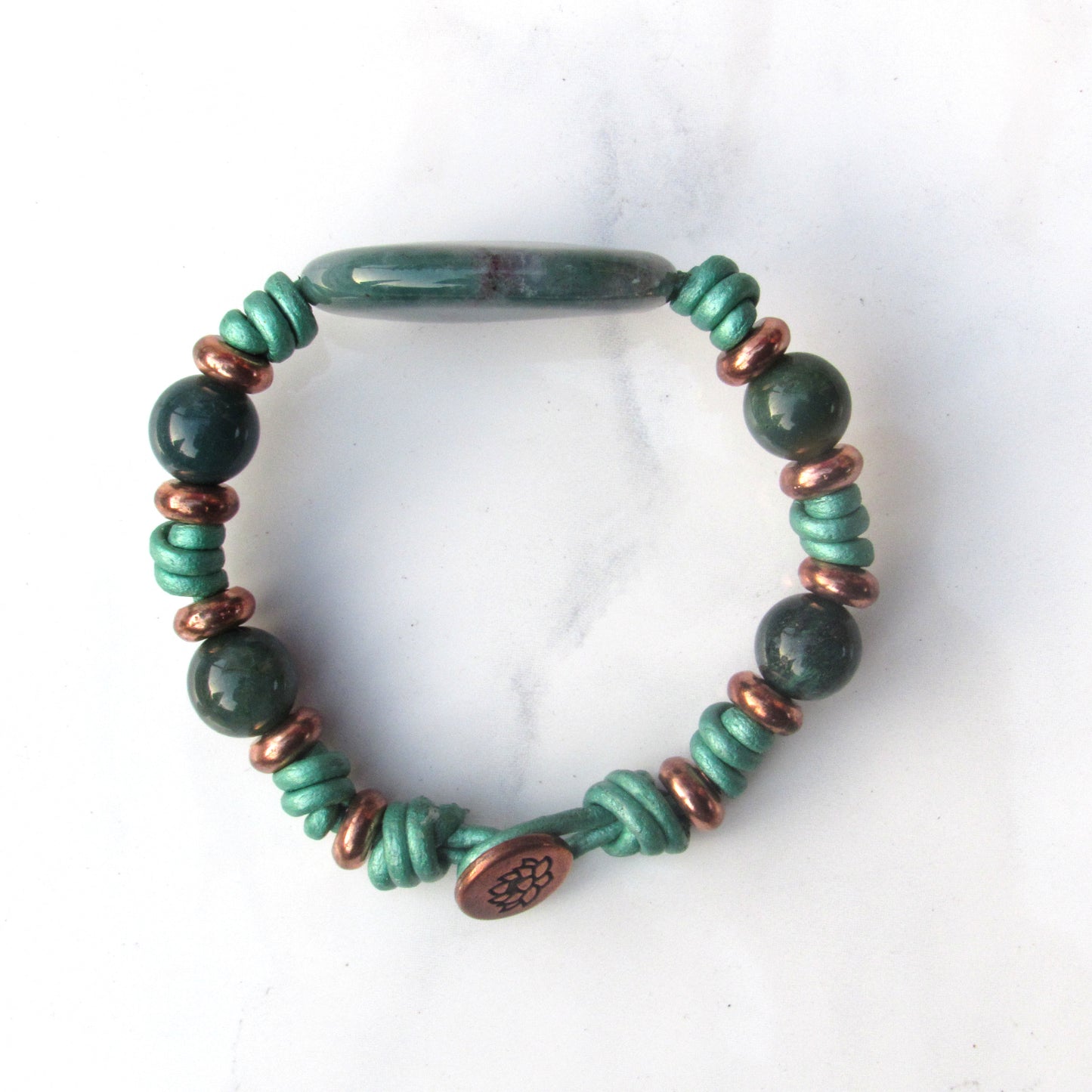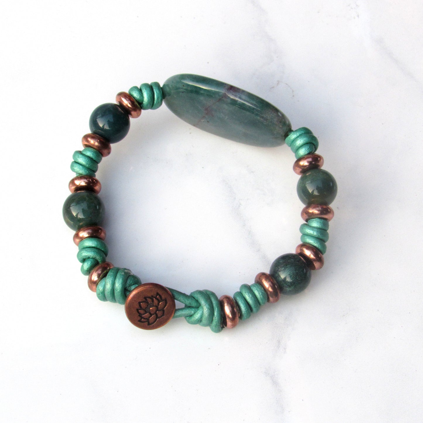 Natural Indian Agate gemstone and Copper Women’s Hand Knotted Leather her Bracelet