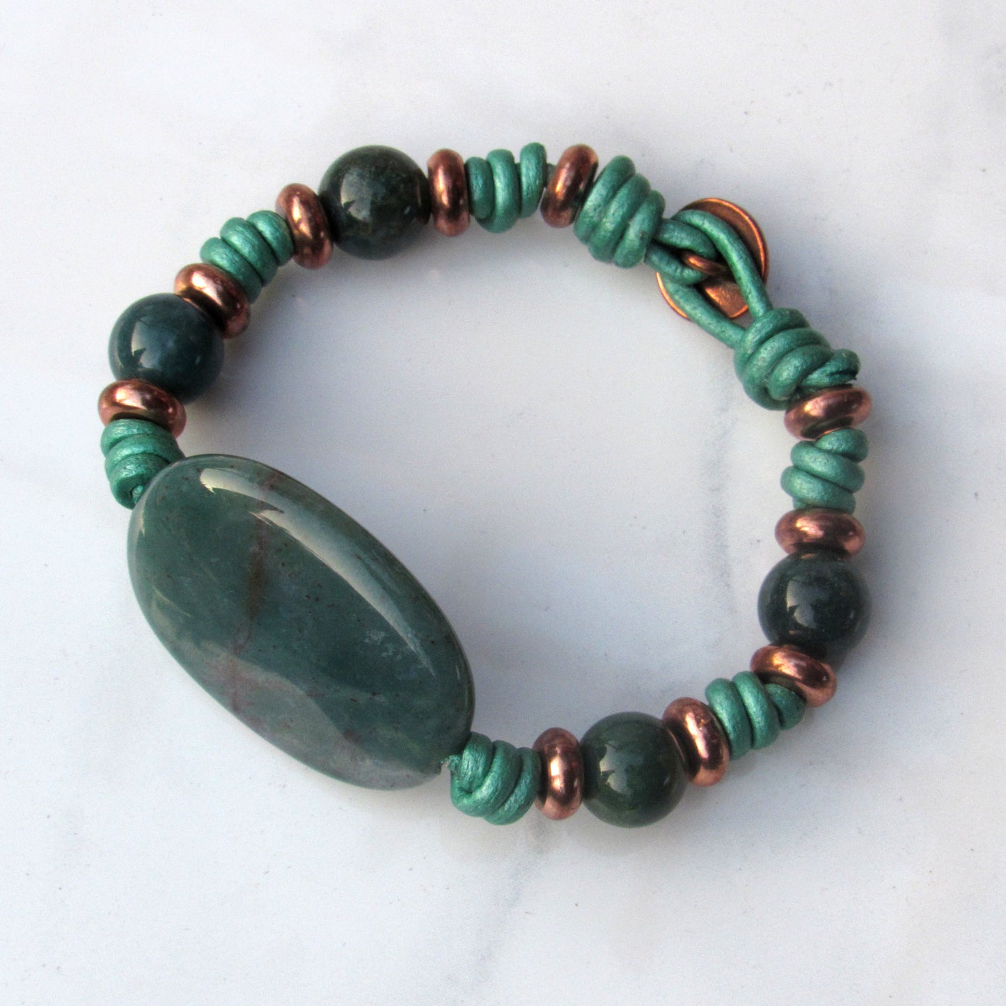 Natural Indian Agate gemstone and Copper Hand Knotted Leather Bracelet
