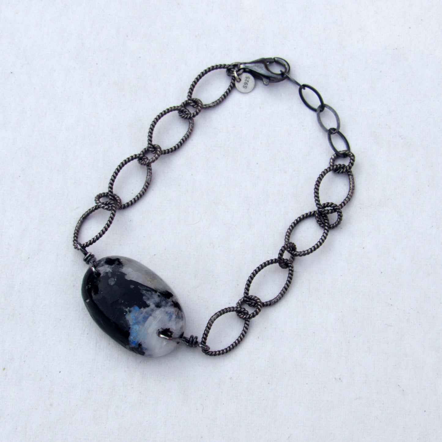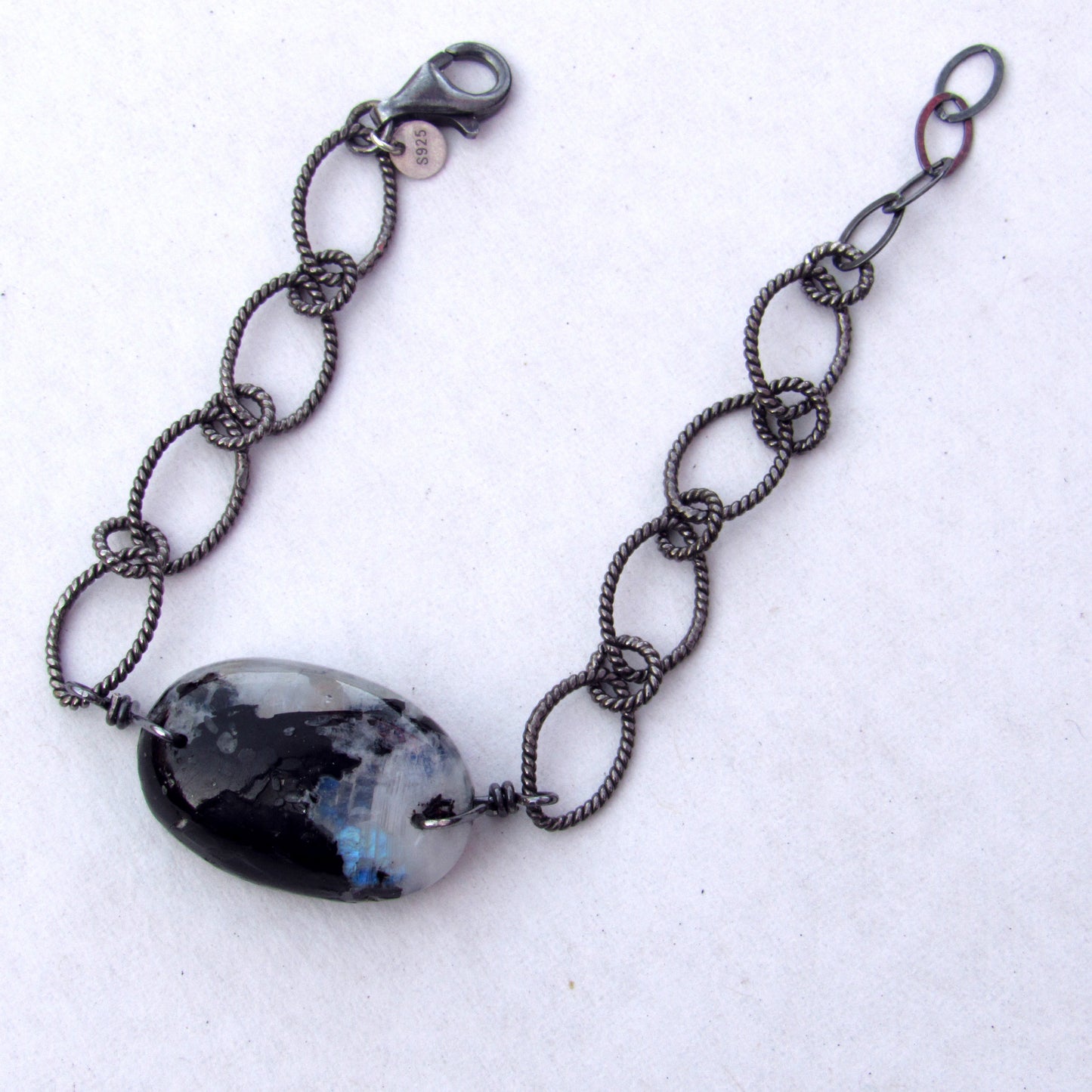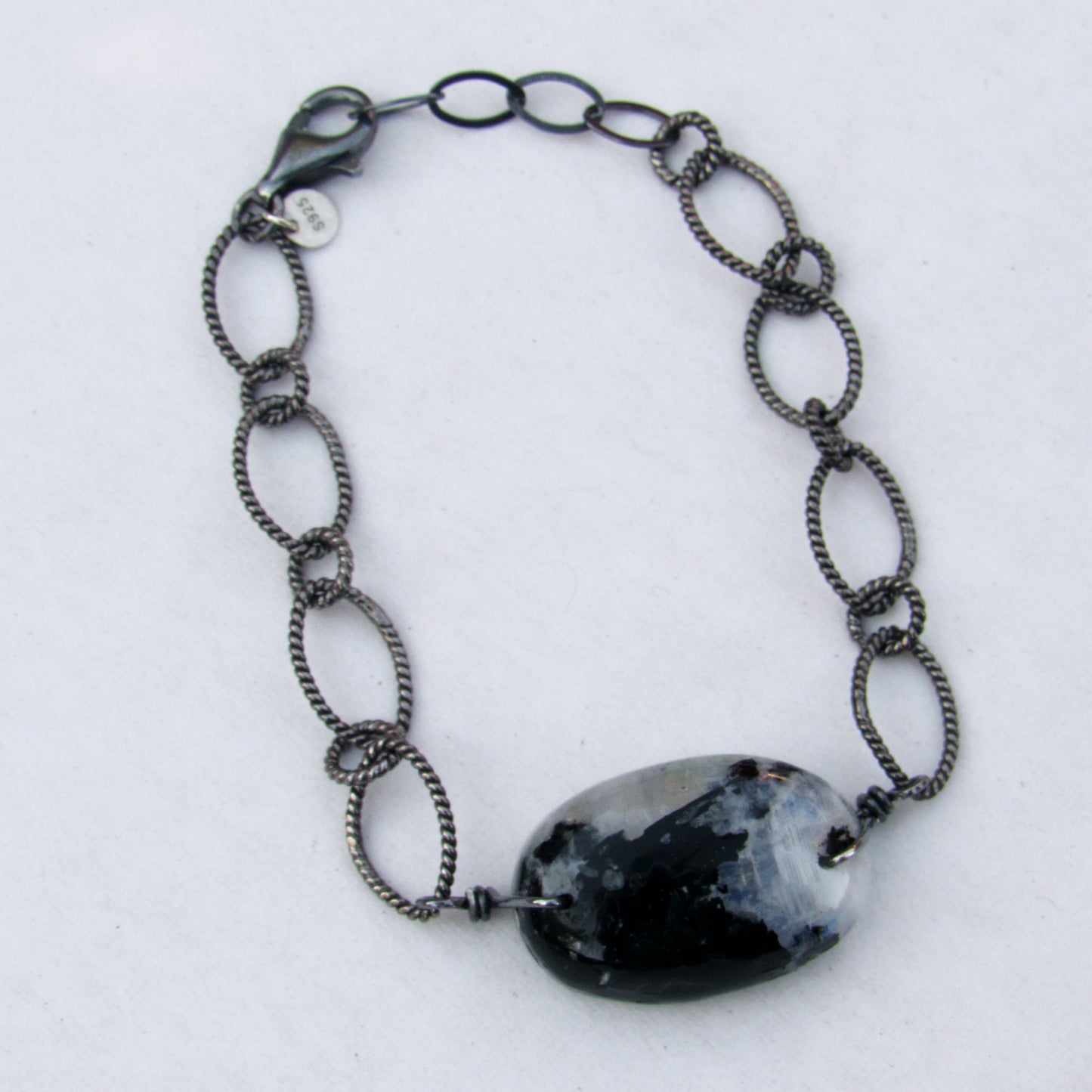 Tourmaline gemstone & Moonstone with Oxidized Sterling Silver Bracelet