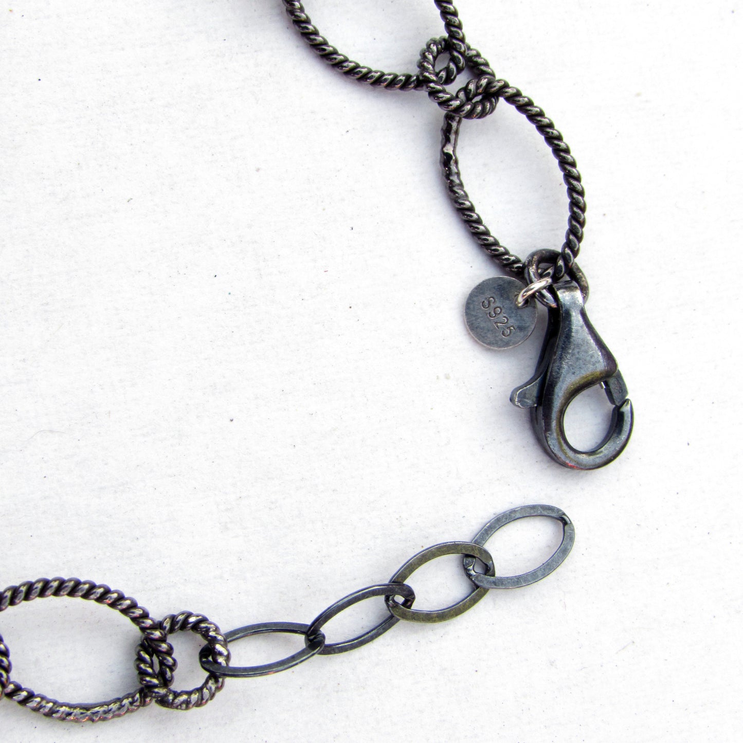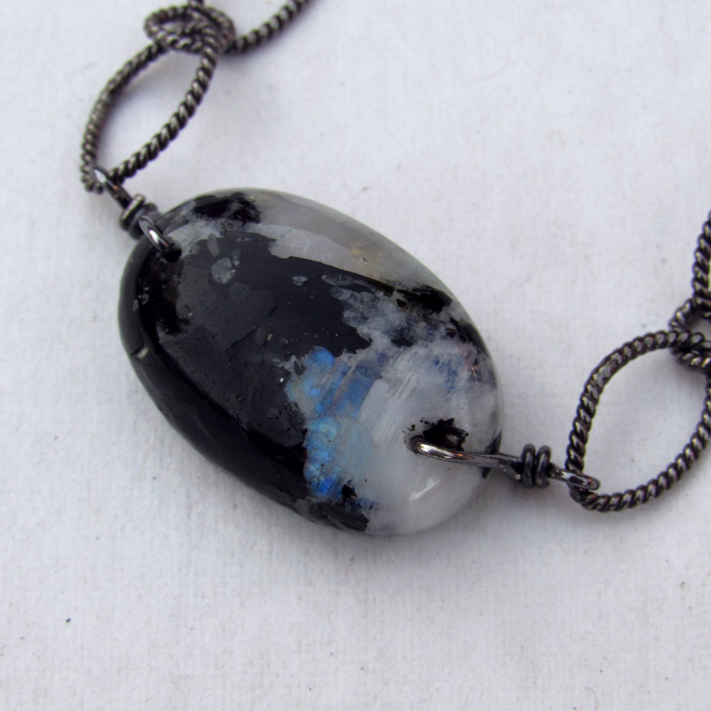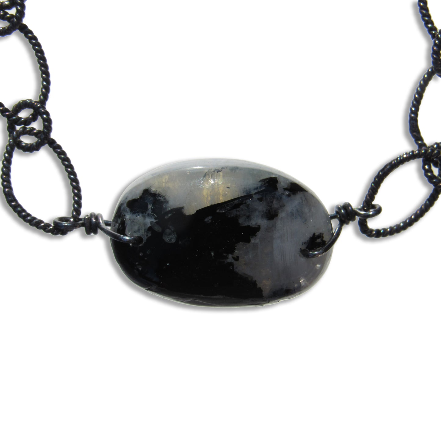 Tourmaline gemstone & Moonstone with Oxidized Sterling Silver Bracelet