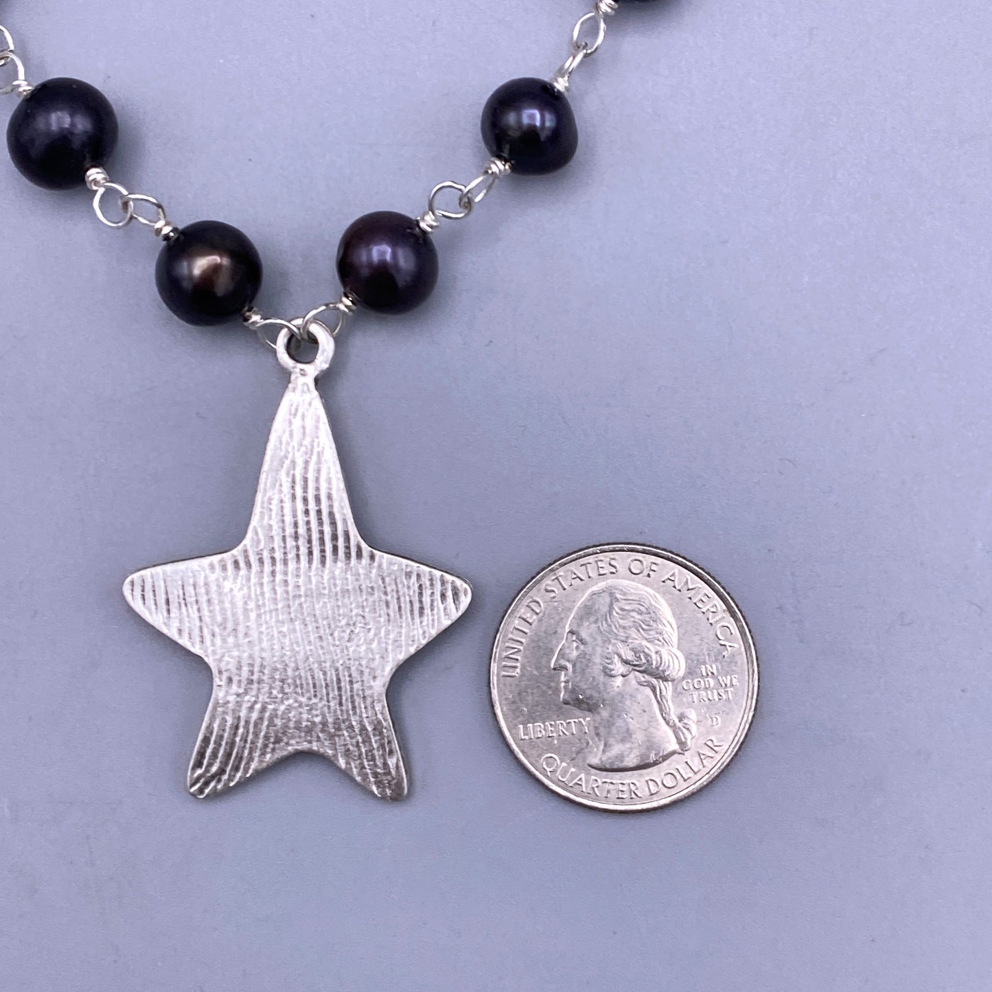 Black Pearl and Star Necklace