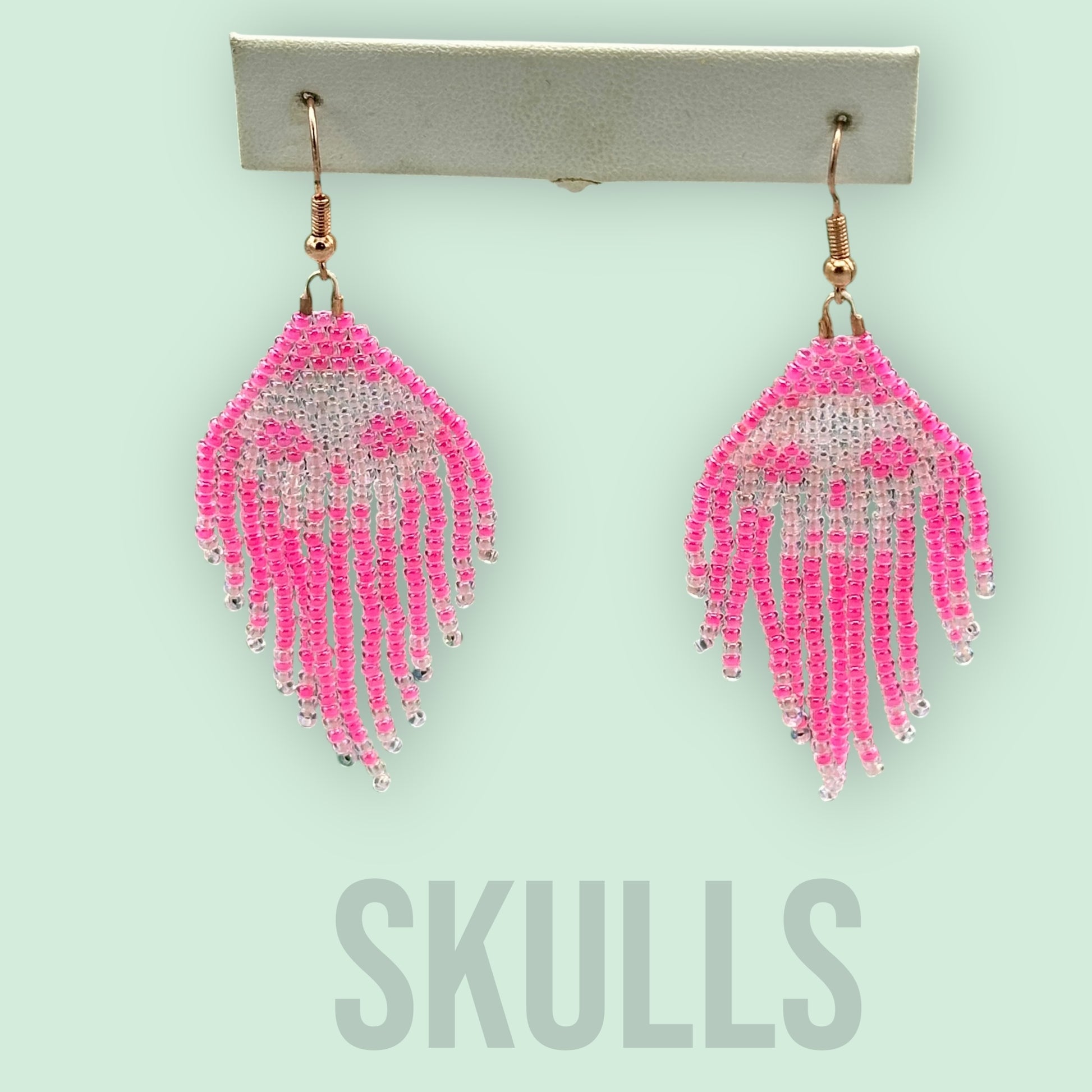Pink Glass Beaded skull fringe earrings