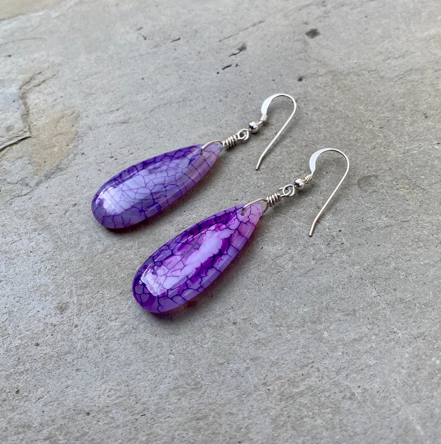 Purple Dragon’s Vein Fire Agate & Sterling Silver Earrings