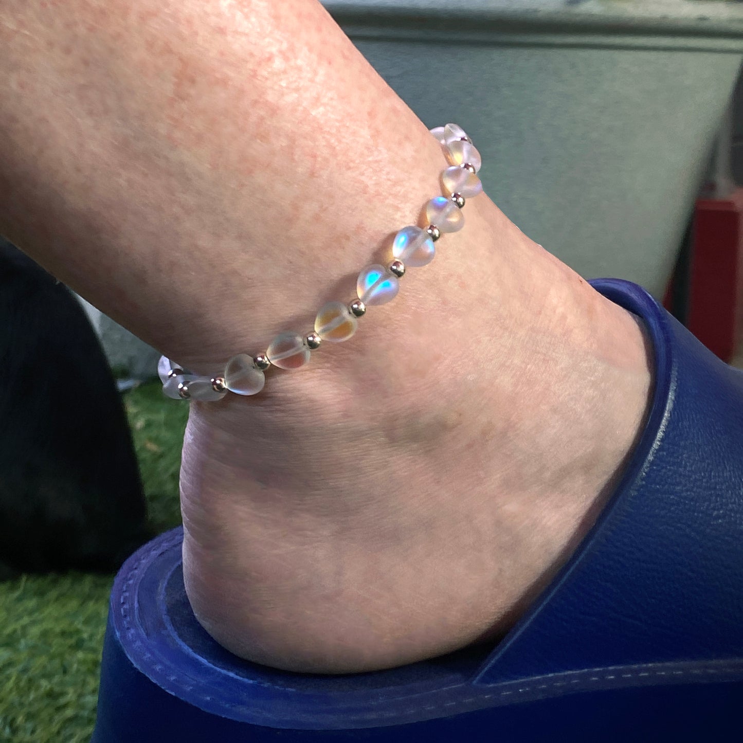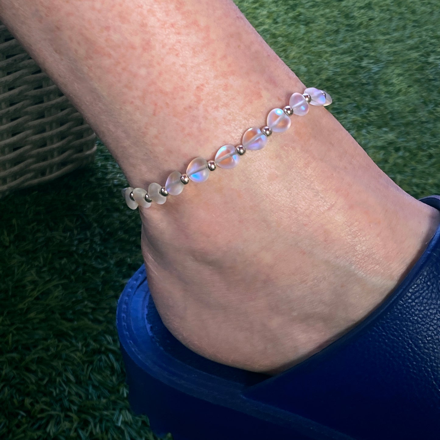 Elevate your summer look with our AB coated Quartz hearts and authentic sterling silver Anklet. Combining luxury materials with stylish design, this piece exudes casual elegance.