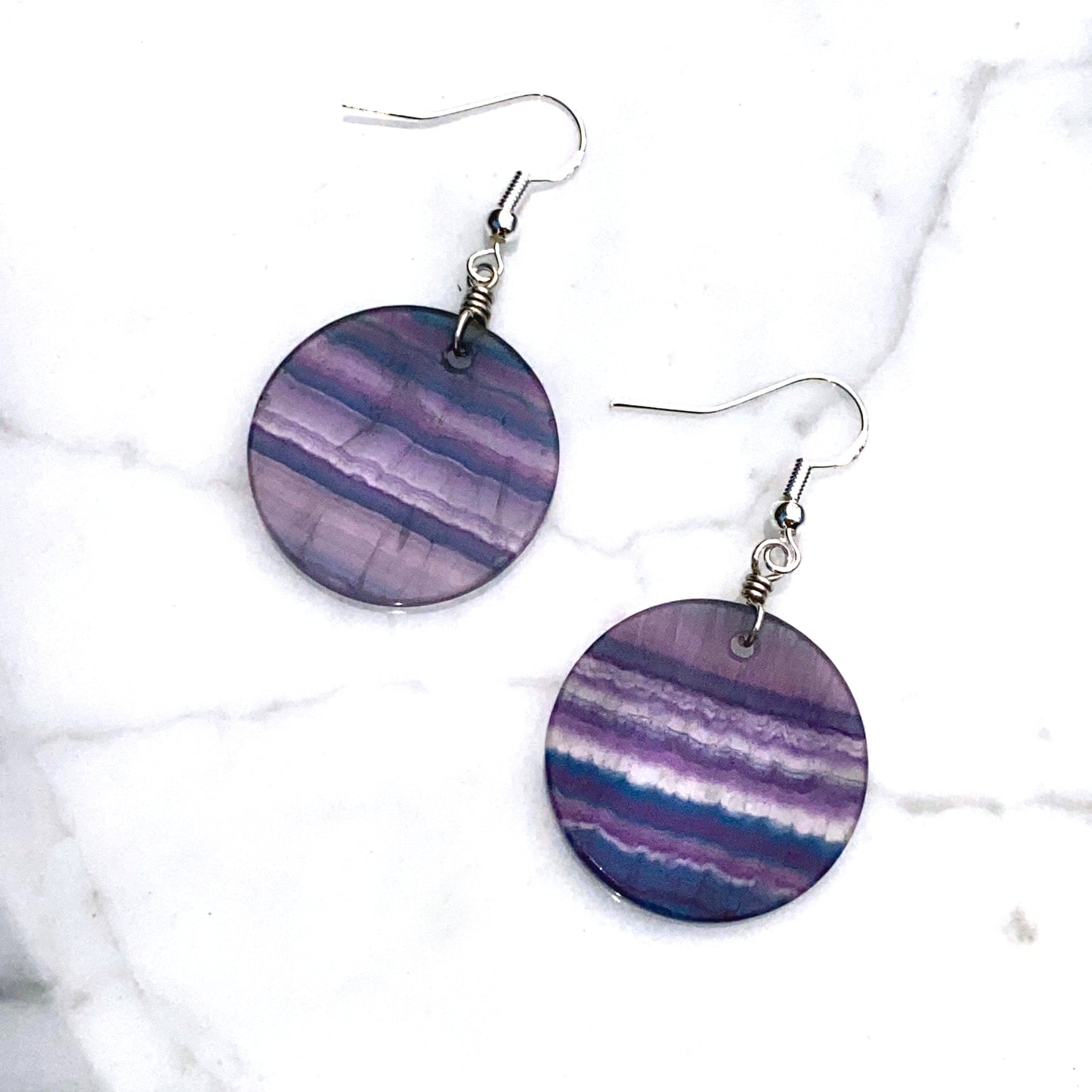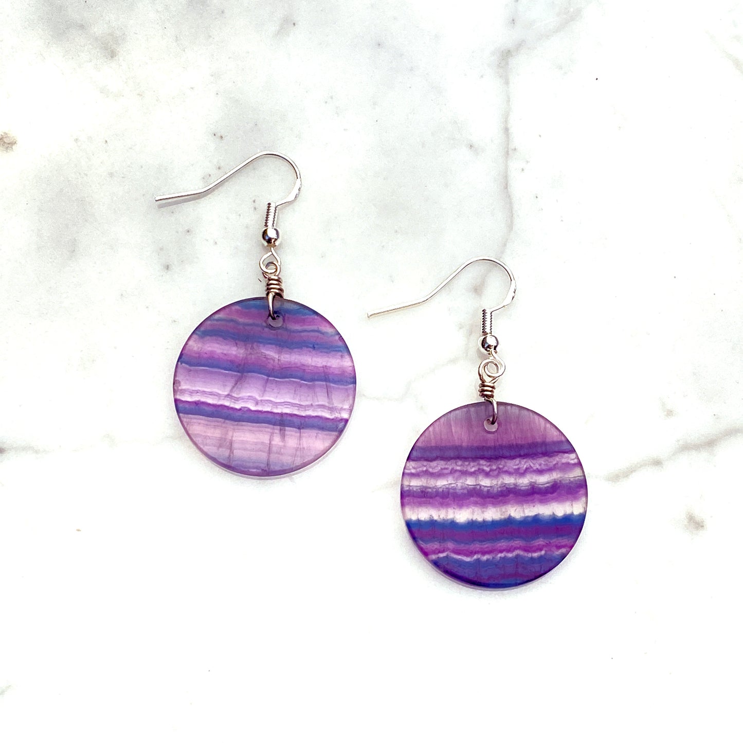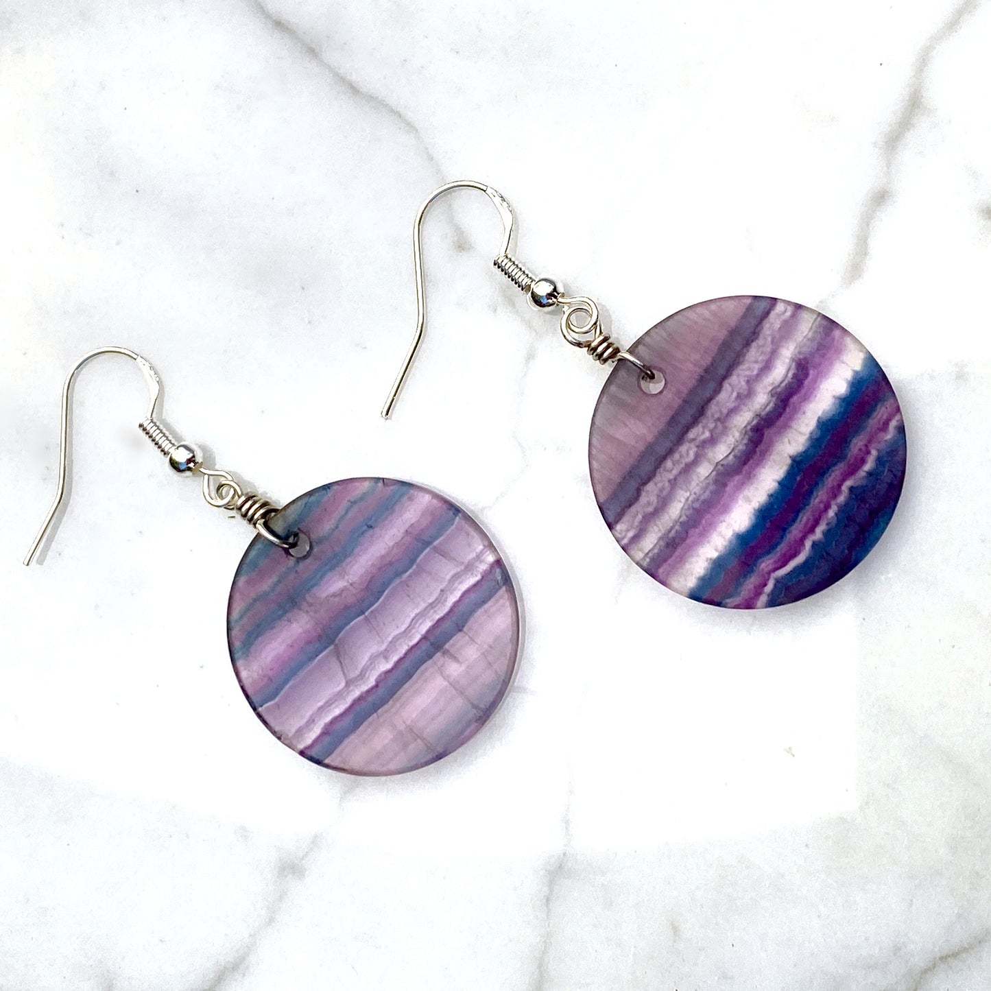 Rainbow Fluorite Gemstone & Sterling Silver Drop Earrings