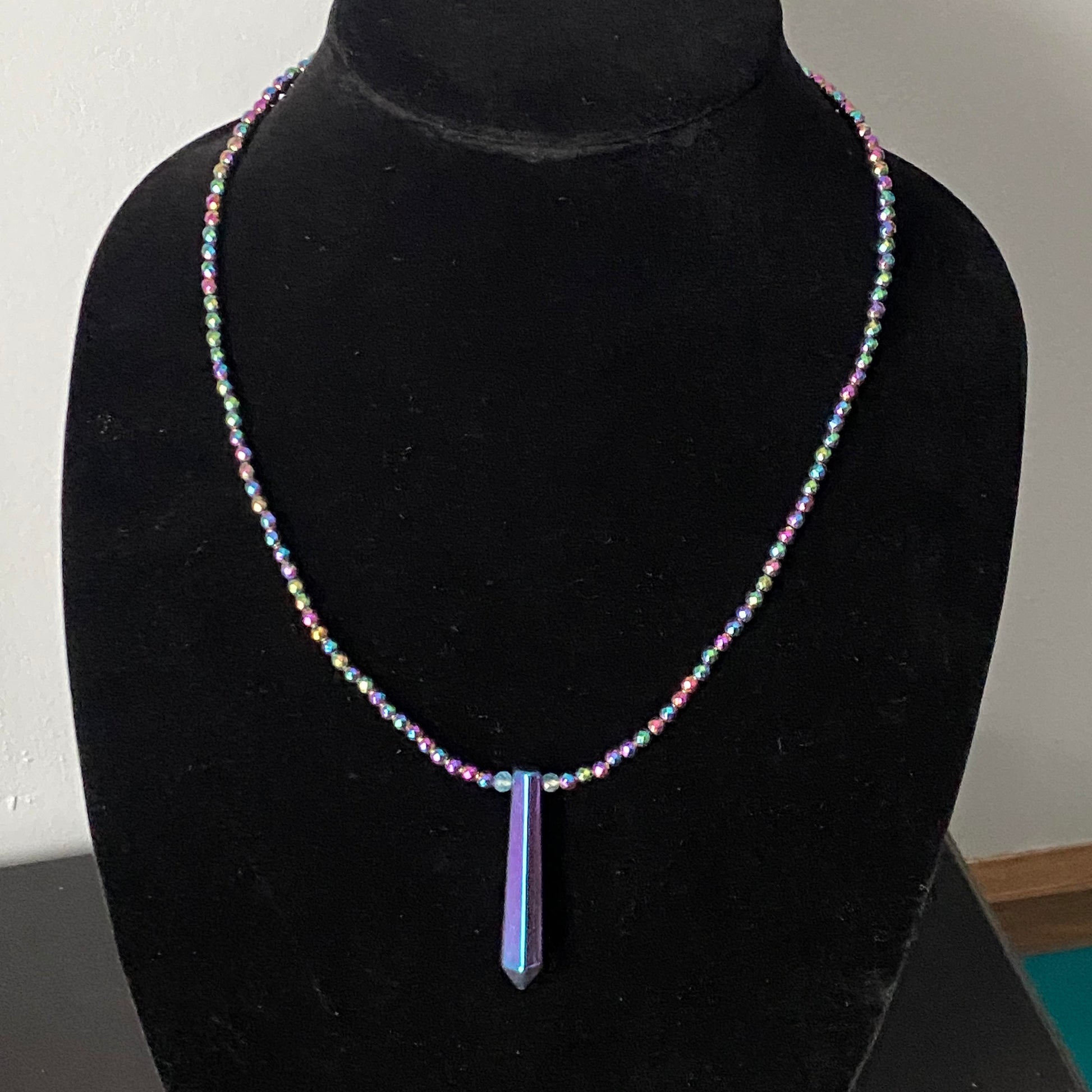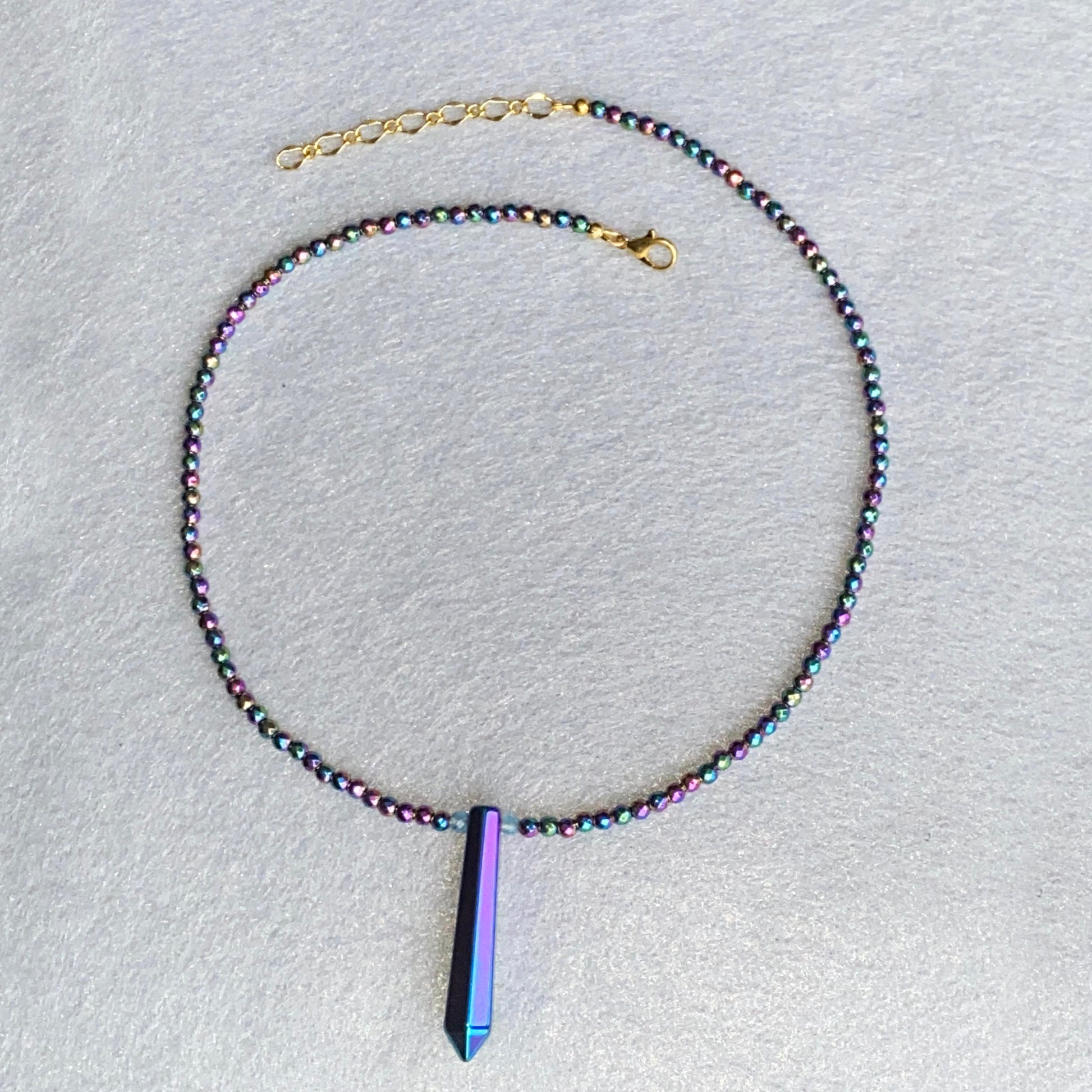 Rainbow Hematite and Blue Topaz Necklace