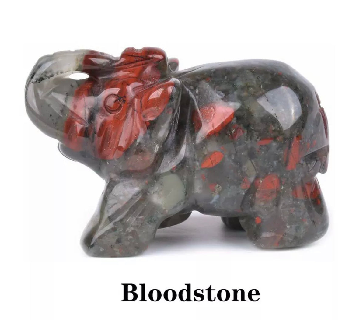 Semiprecious African Bloodstone lucky Elephant gemstone crystal figurine