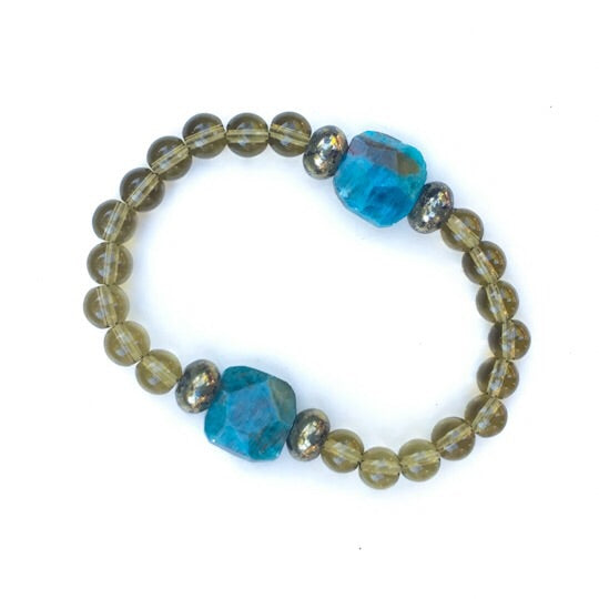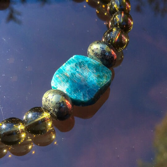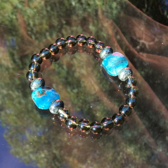 Men’s smokey Quartz, Apatite and Pyrite gemstone bracelet