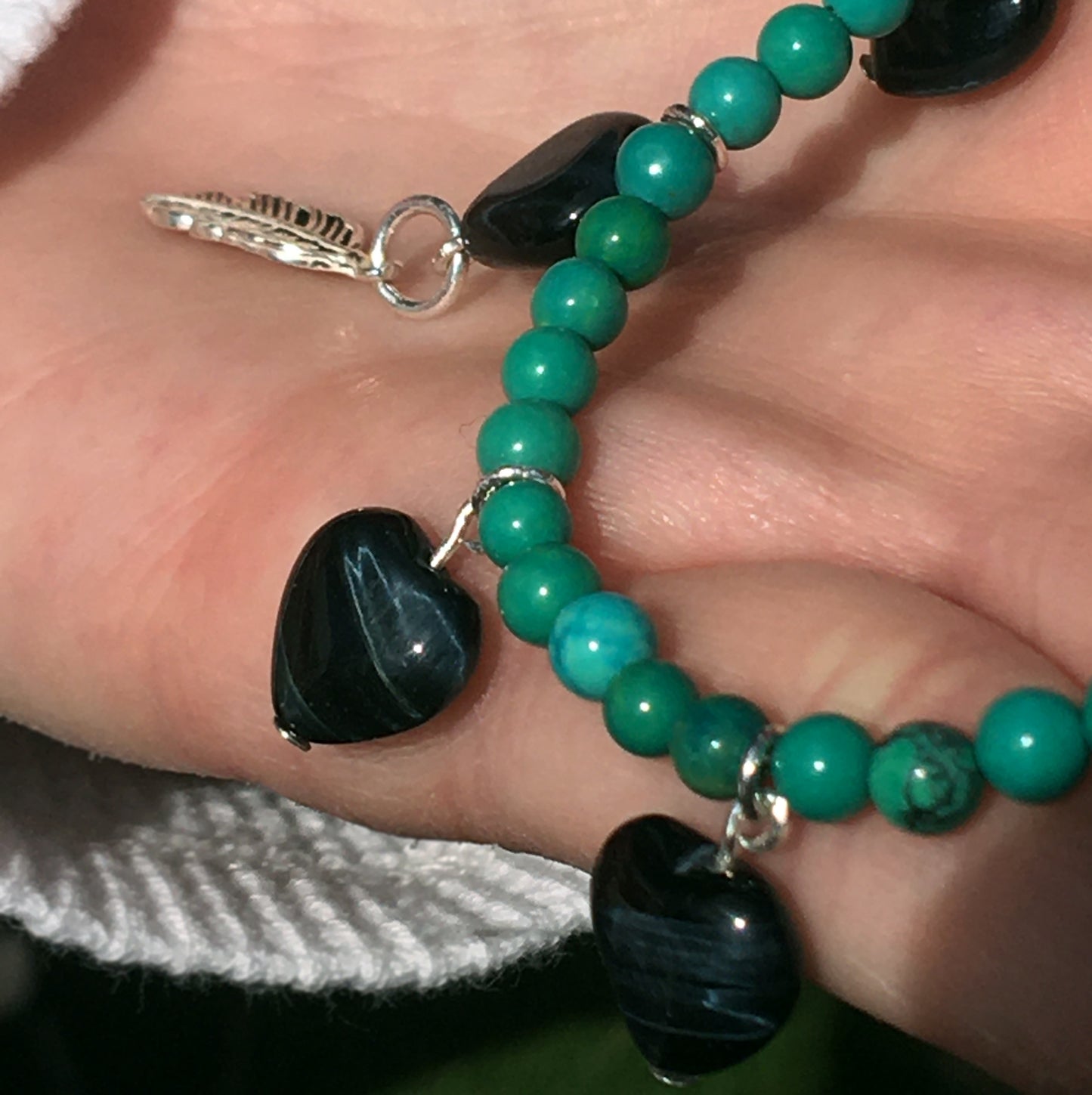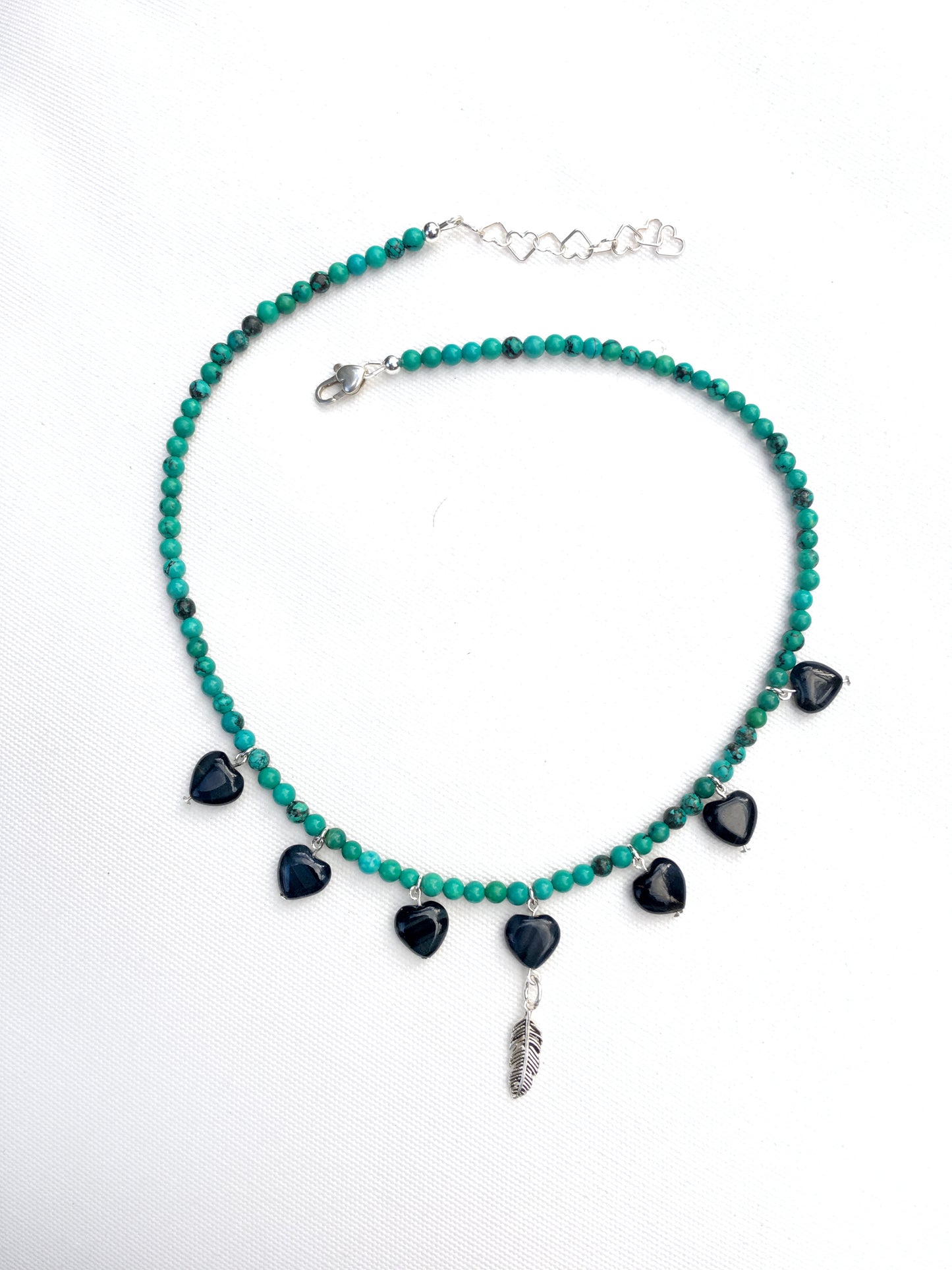 Tiger Eye heart Sterling silver Feather genuine Turquoise Necklace