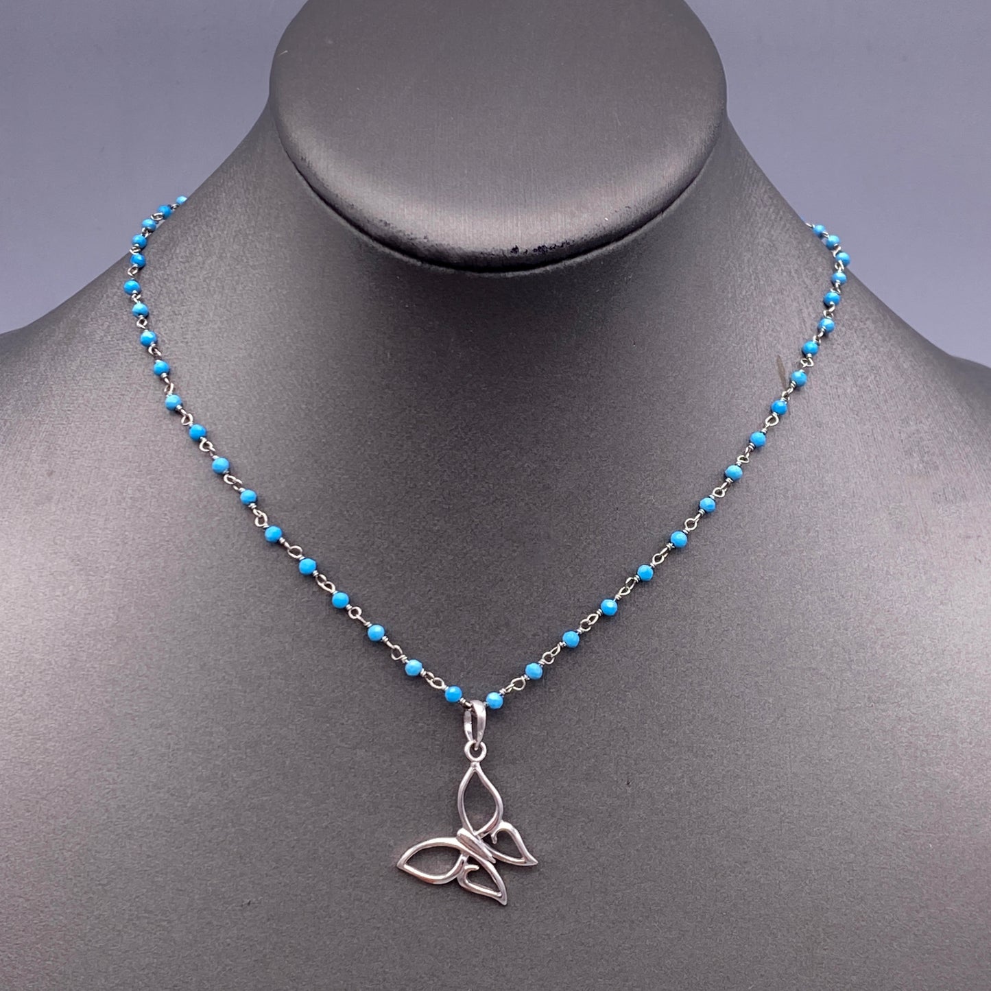 Turquoise and Sterling Silver Butterfly Beaded Necklace