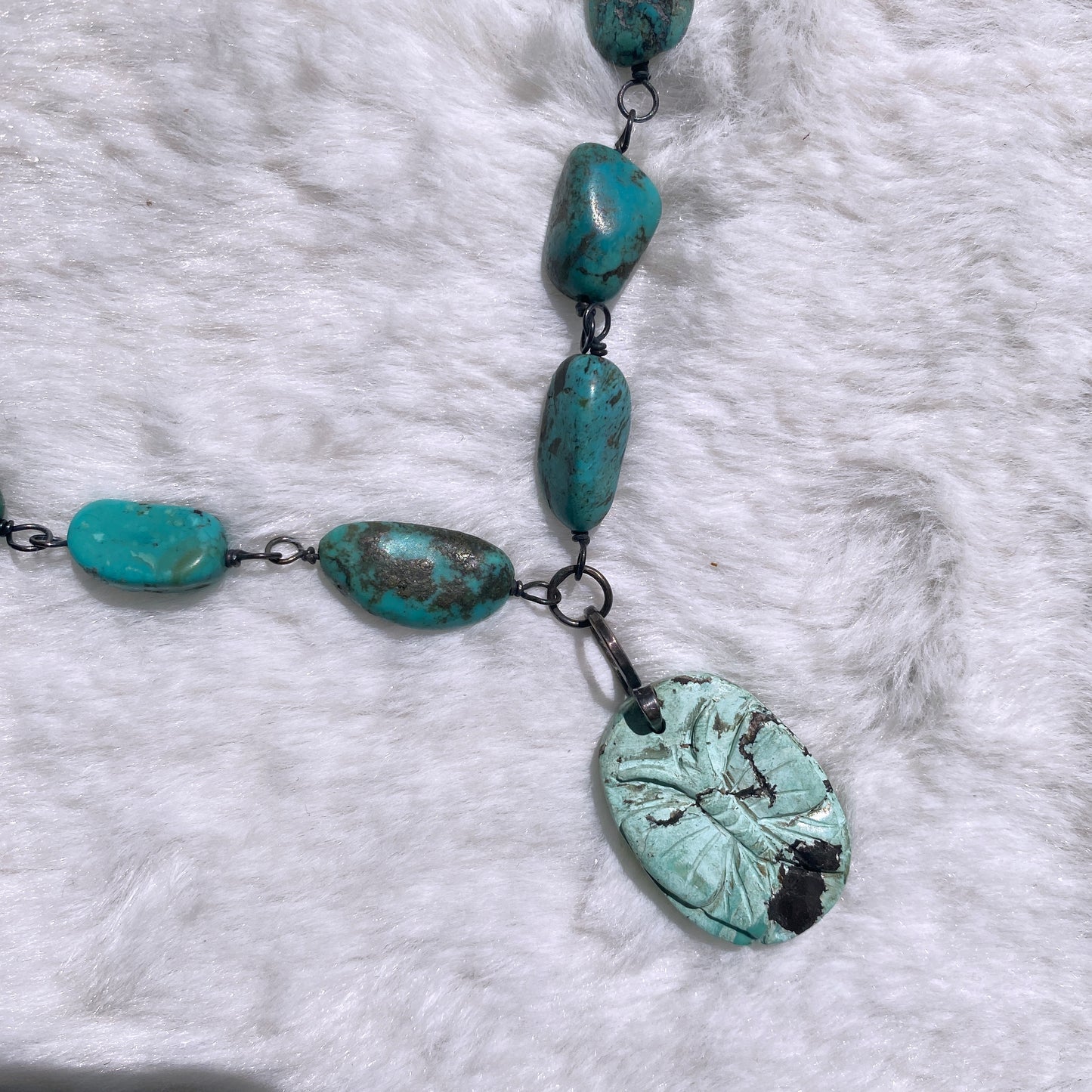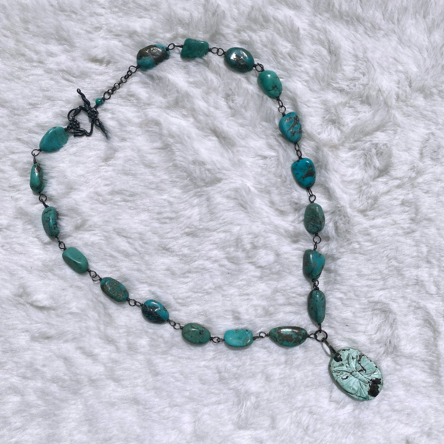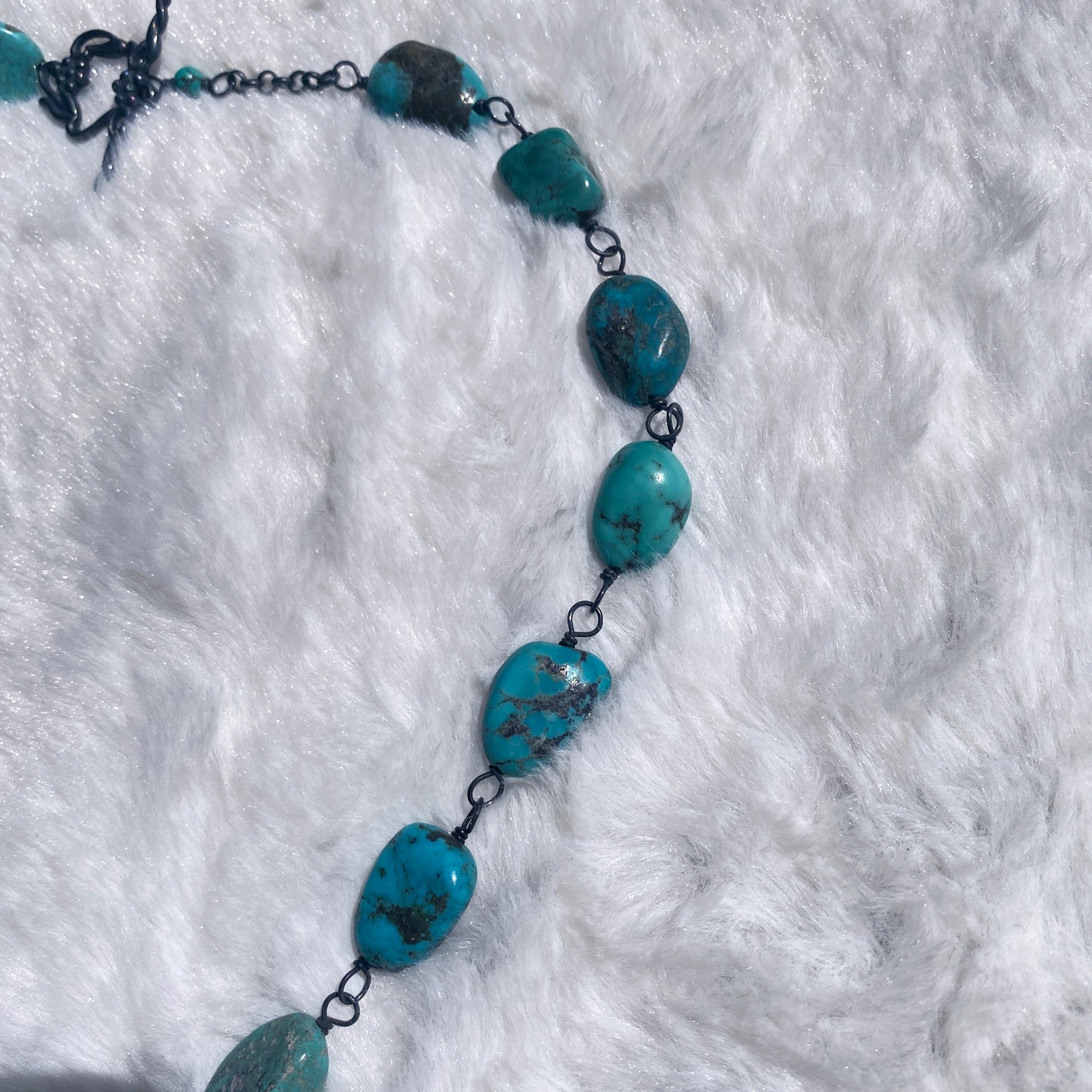 Natural turquoise gemstones and Oxidized Sterling silver 20 inches Total Length