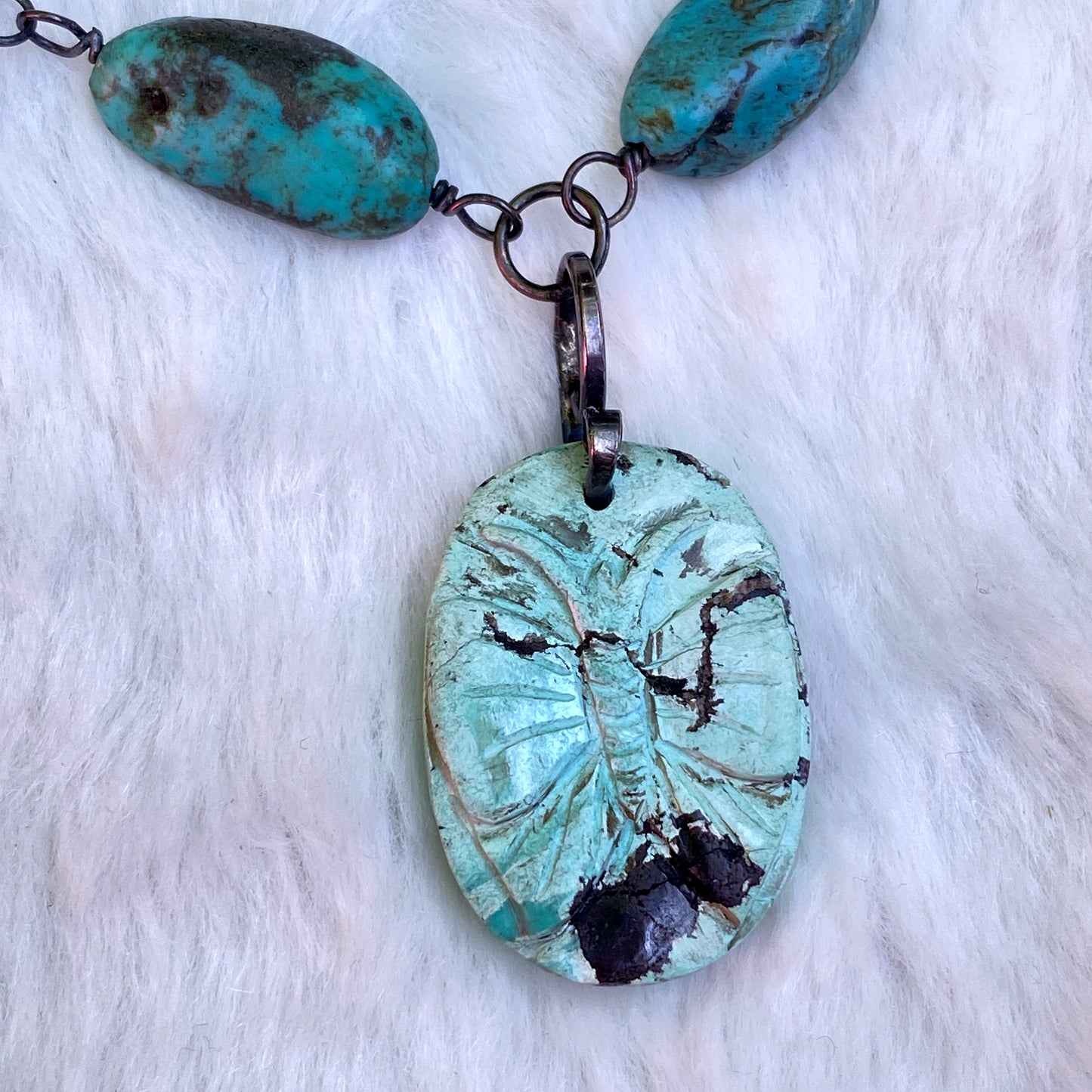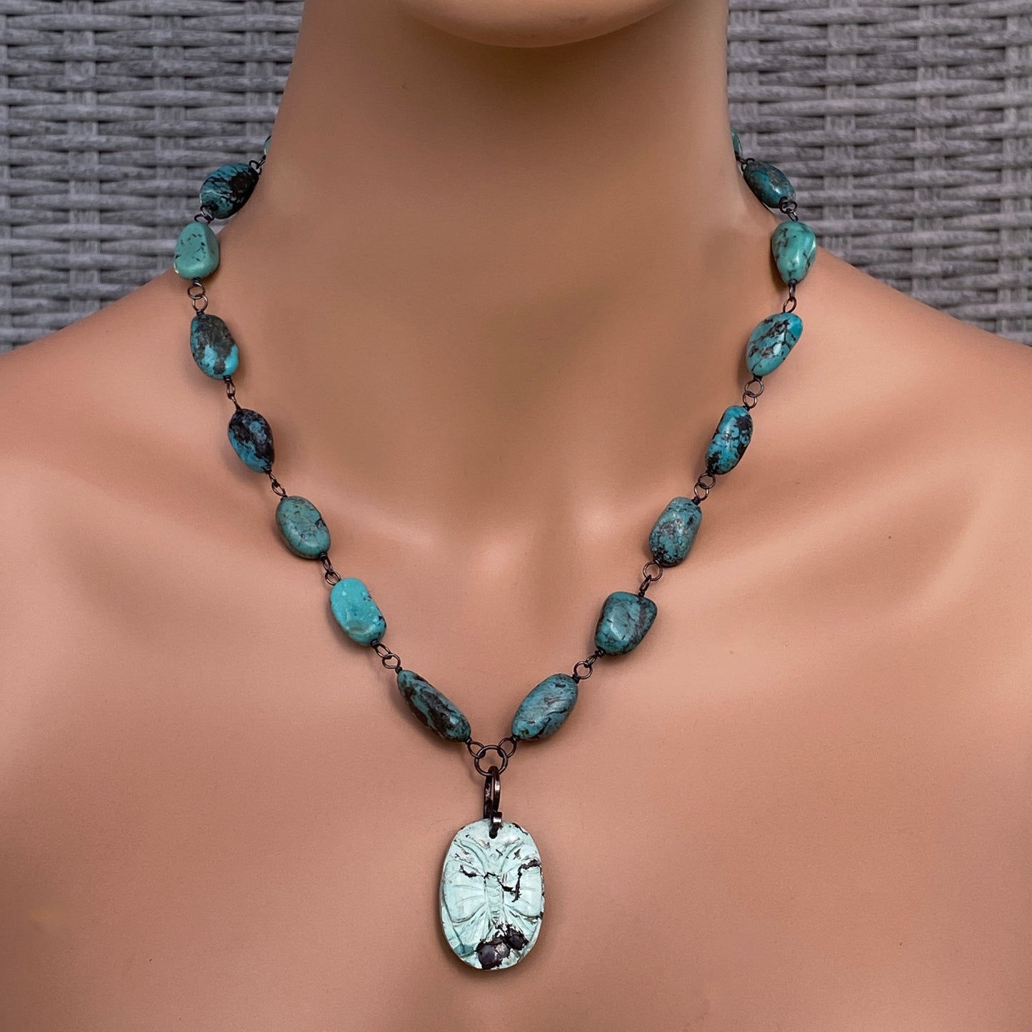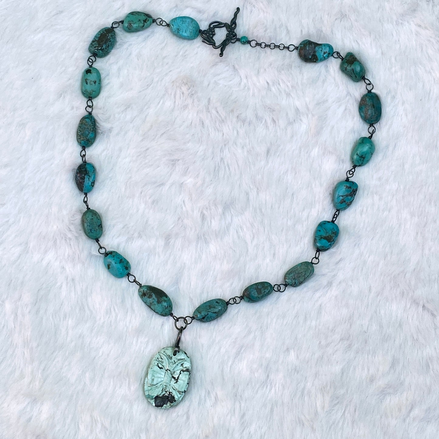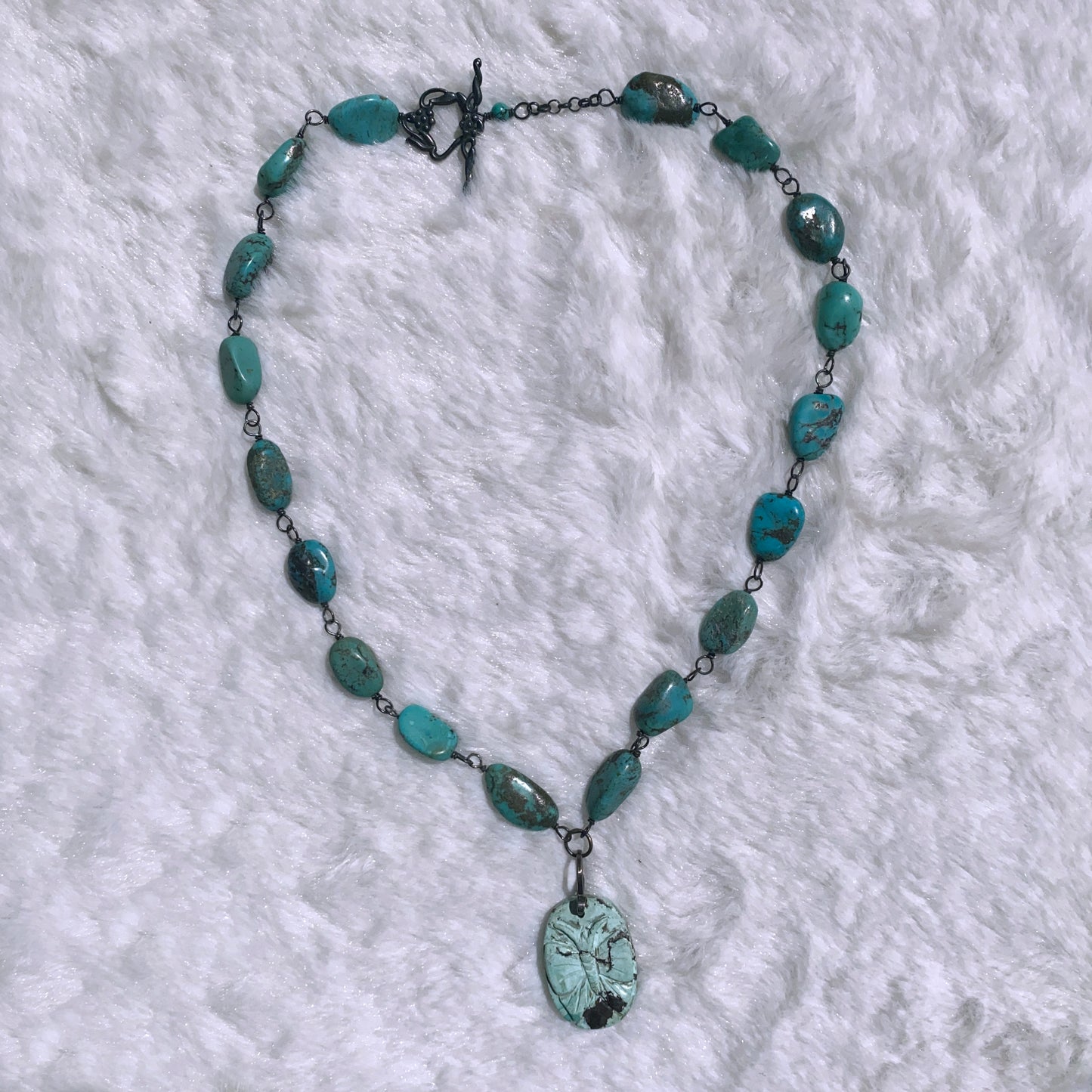 Natural turquoise gemstones and Oxidized Sterling silver 20 inches Total Length