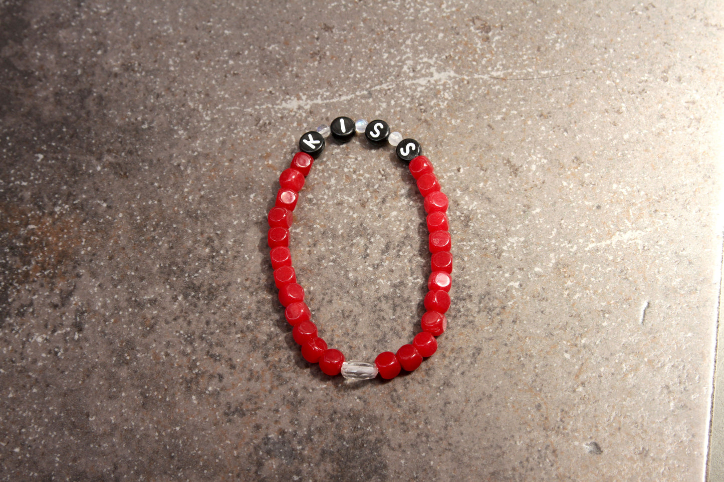 Red is the New Black..... Features Red Chalcedony beads with a White Topaz and Moonstone accents through the “Kiss”.