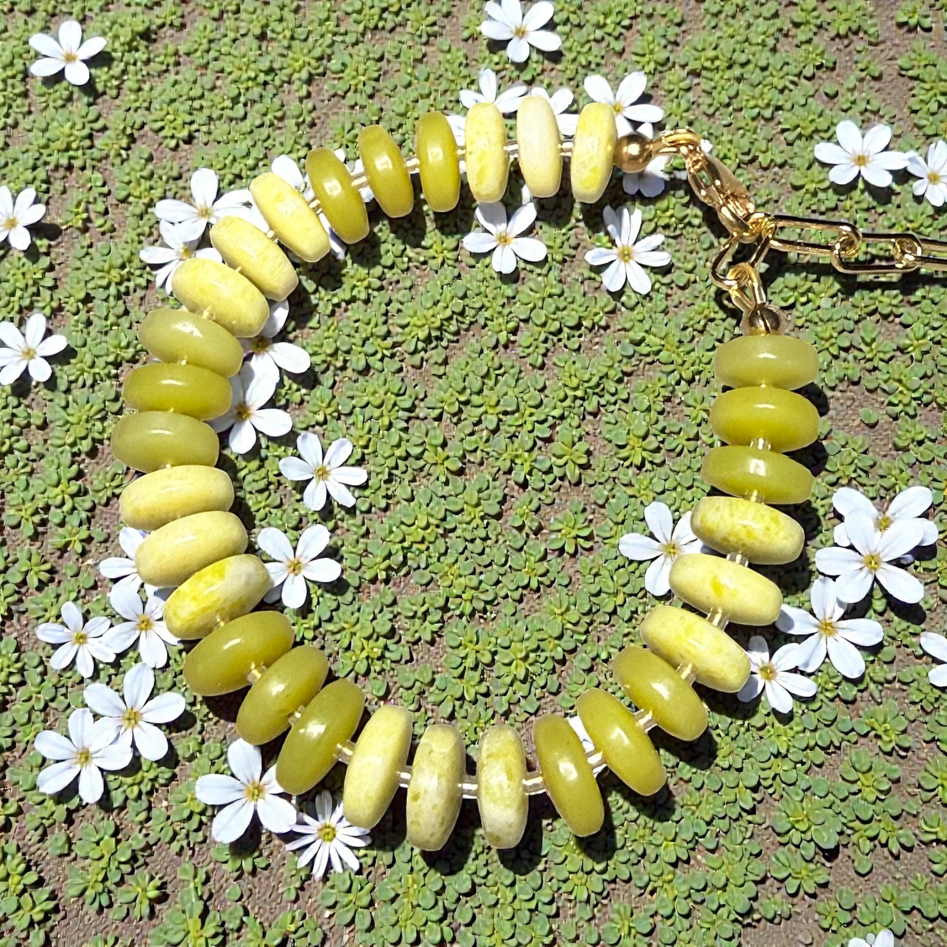 Yellow Jade Gemstone Candy Style Gold Fill Clasp Bracelet